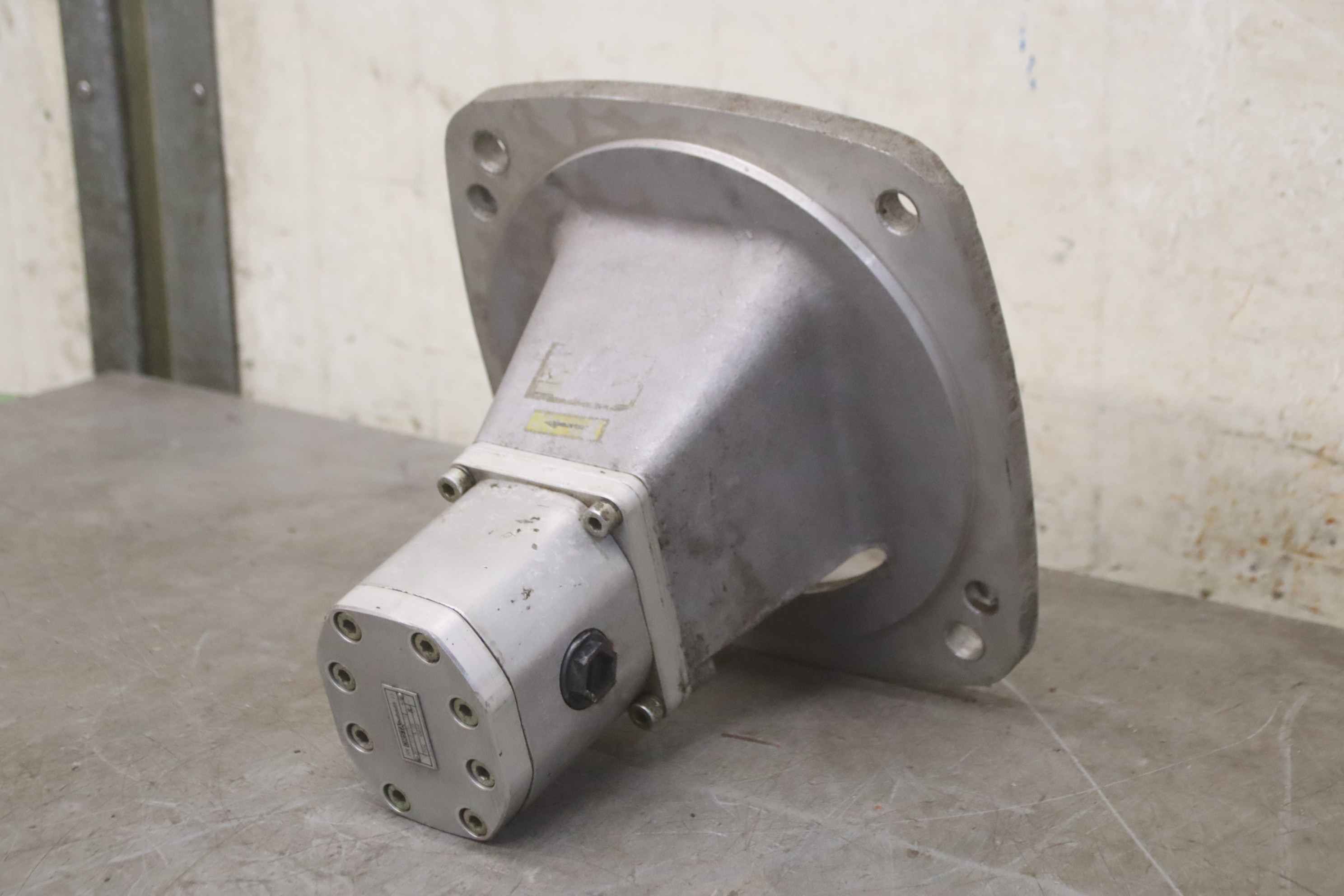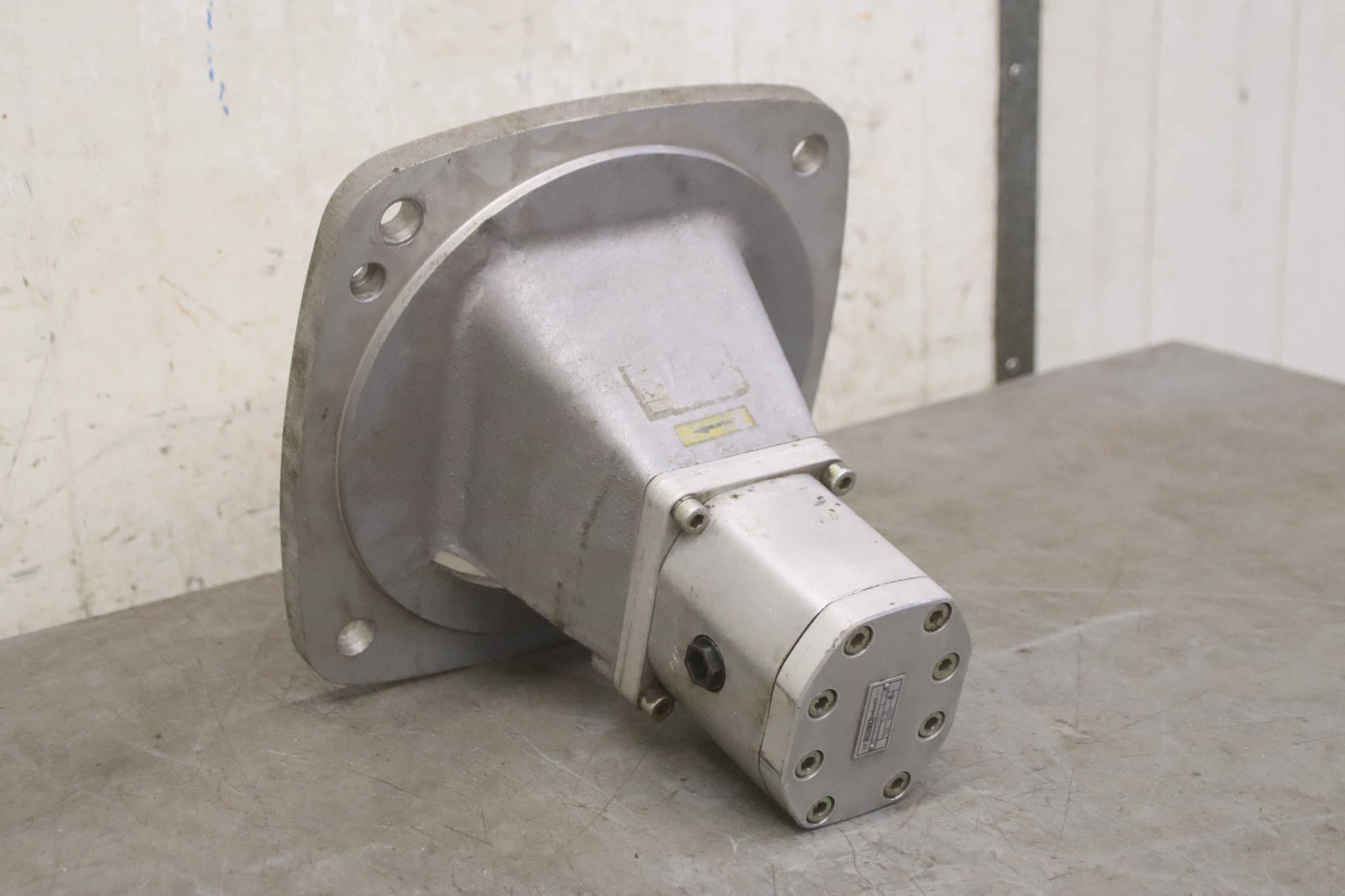 Hydraulic pump, oil pump, gear pump, hydraulic unit-Manufacturer: ORSTA, hydraulic pump with clutch bell-Pump Type: A25R-Clutch bell: IWK 8420523-Shaft: Ø 22 x 25 mm Recess: Ø 250 mm-Hole circle: Ø 300 x 18 mm-Dimensions: 285/285/H245 mm-Weight: 7.1kg