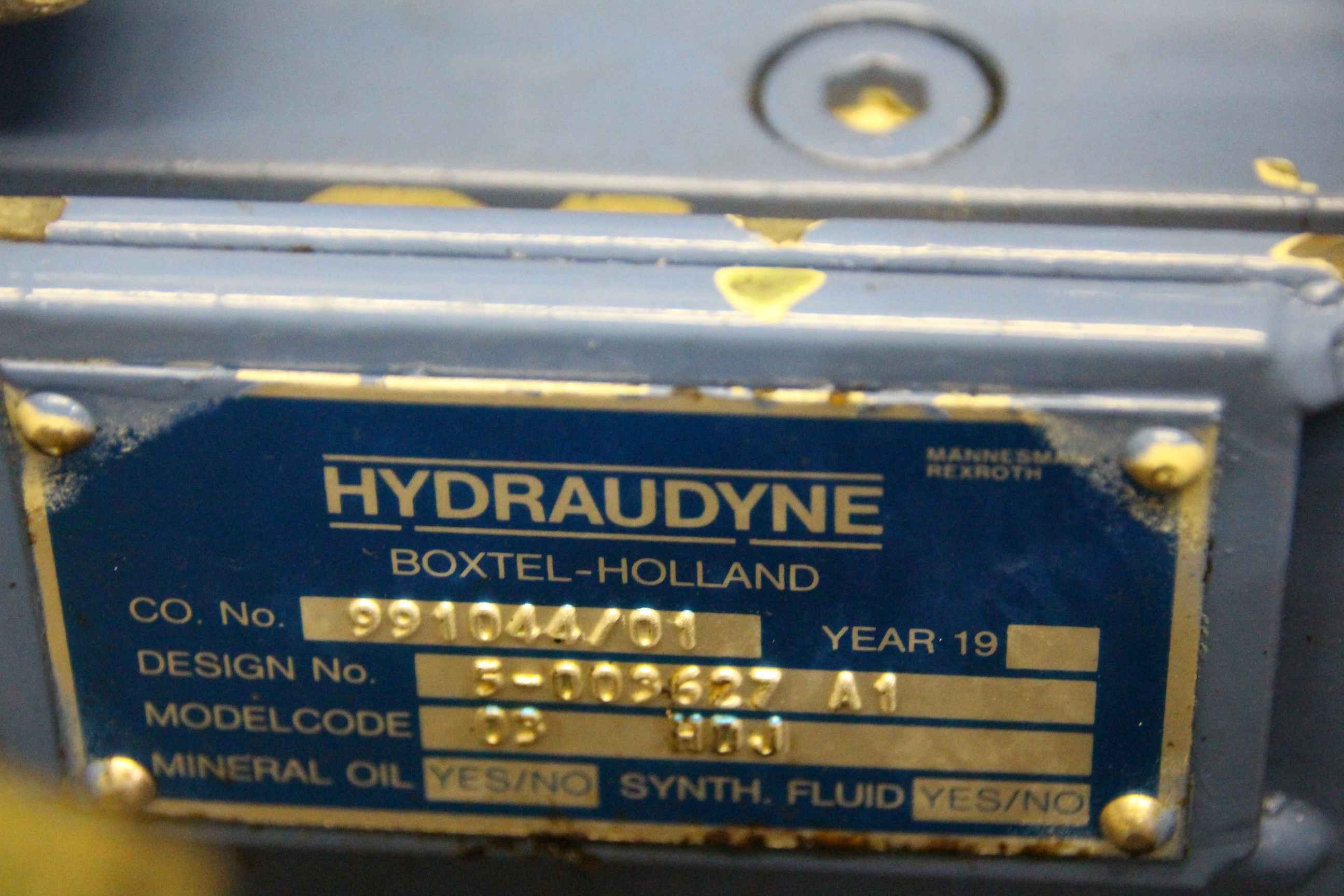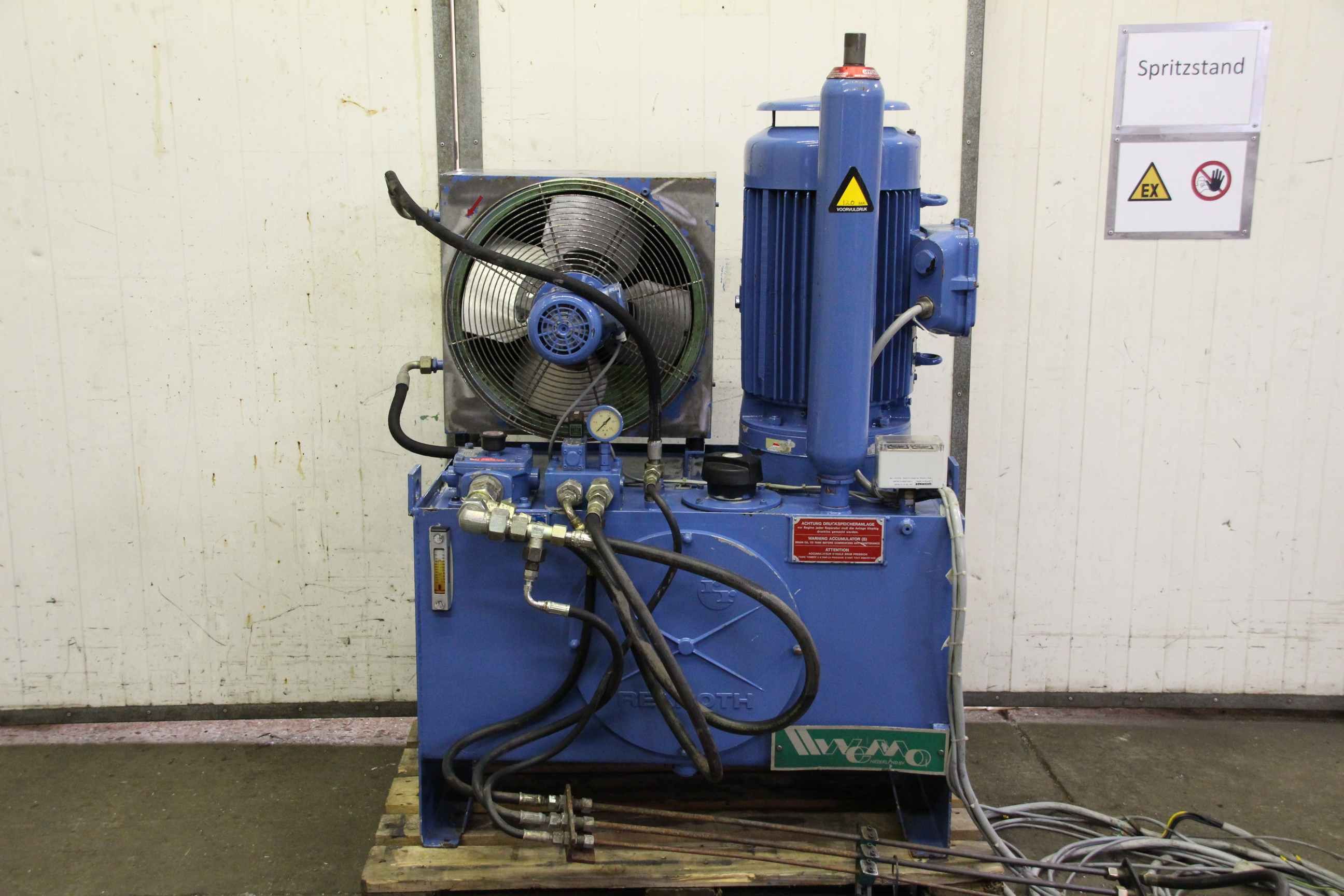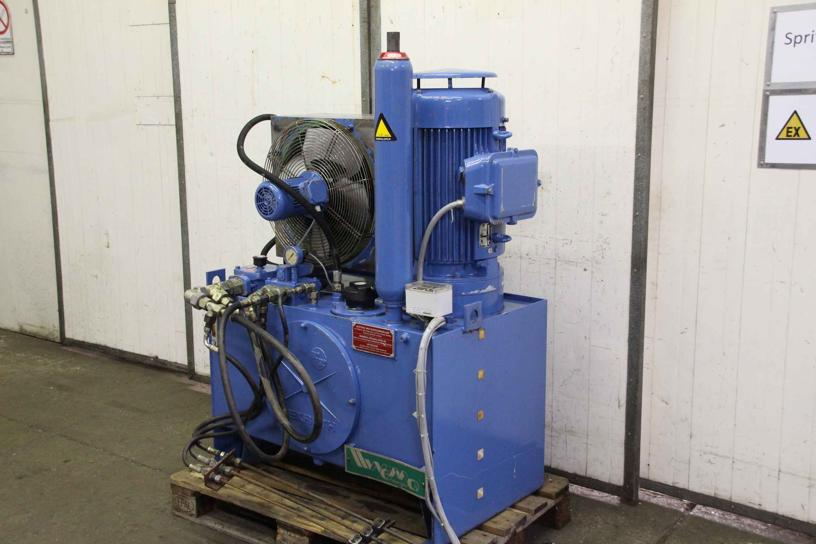 hydraulic unit, hydraulic pump, hydraulic pump, universal unit, hydraulic station -Manufacturer: Rexroth/Hydraudyne, hydraulic station with oil cooler / pressure accumulator / filter ... -Type: 03 HDJ -Engine power: 22 kW/1460 rpm -Tank capacity: approx. 240 liters -Pressure display: up to 250 bar -Individual components: pressure accumulator/hydraulic tank/filter/valves see pictures -Number: 2 units available -Price: per piece -Dimensions: 1060/820/H1530 mm -Weight: 738 kg