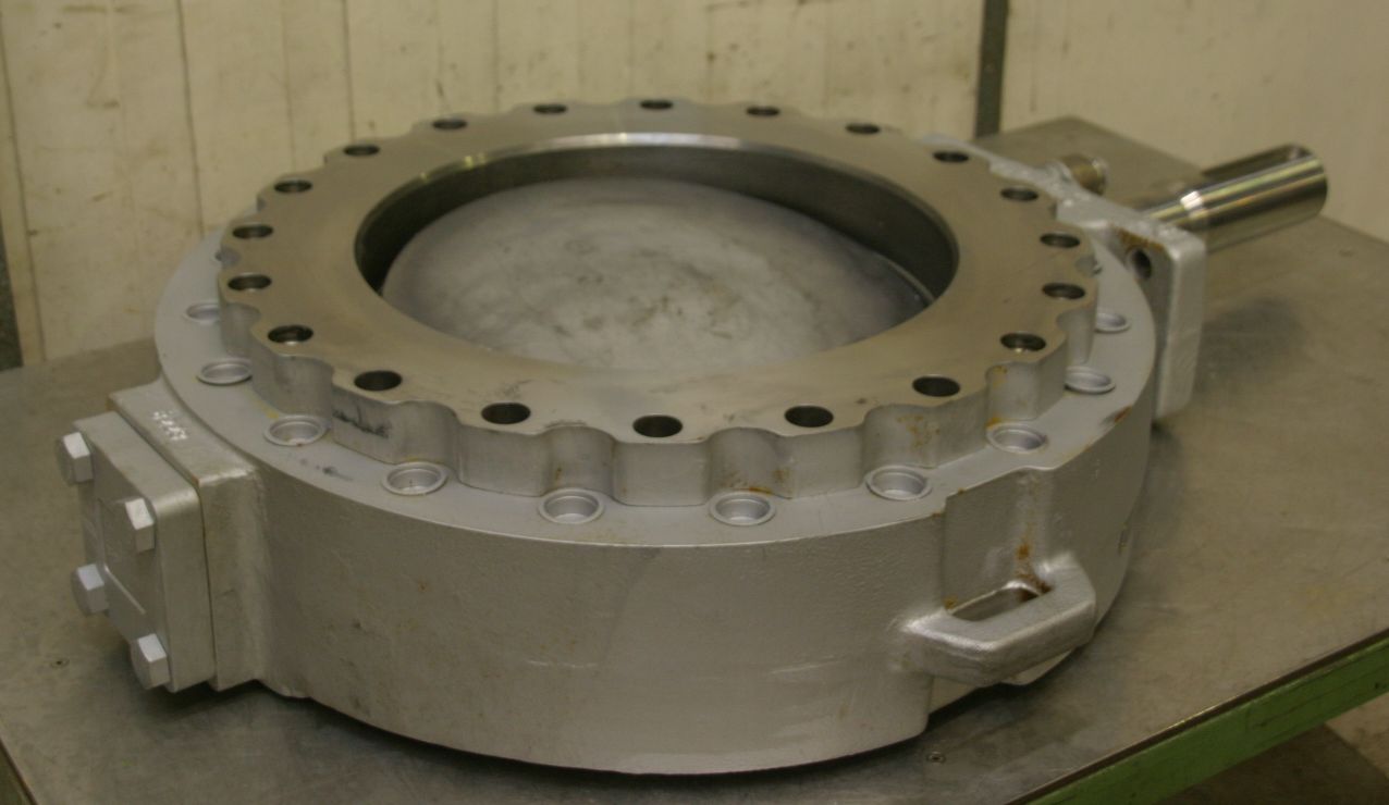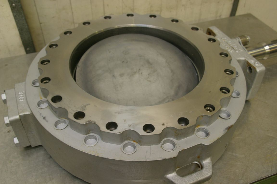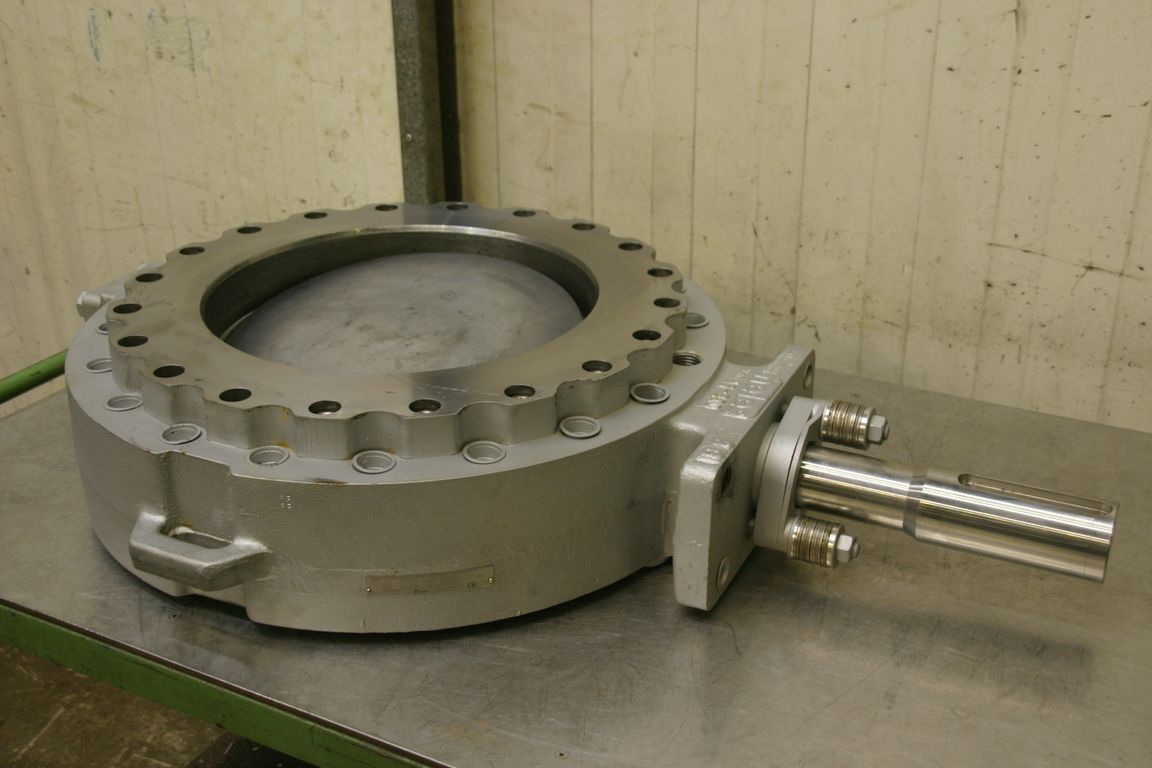 Disc valve, butterfly valve, ball valve, butterfly valve, shut-off valve, gate valve -Manufacturer: Neles Metso, Butterfly Valve type L2DMH16PACAG -Inner diameter: 370 mm -Bolt circle: Ø 520 / 570 mm -Shaft: Ø 70 x 155 mm -Nominal pressure: 51 bar -Technical data: see photos, nameplates -Number: 7x shut-off valves available -Price: per piece -Dimensions: 710/192/H1060 mm -Weight: 340 kg