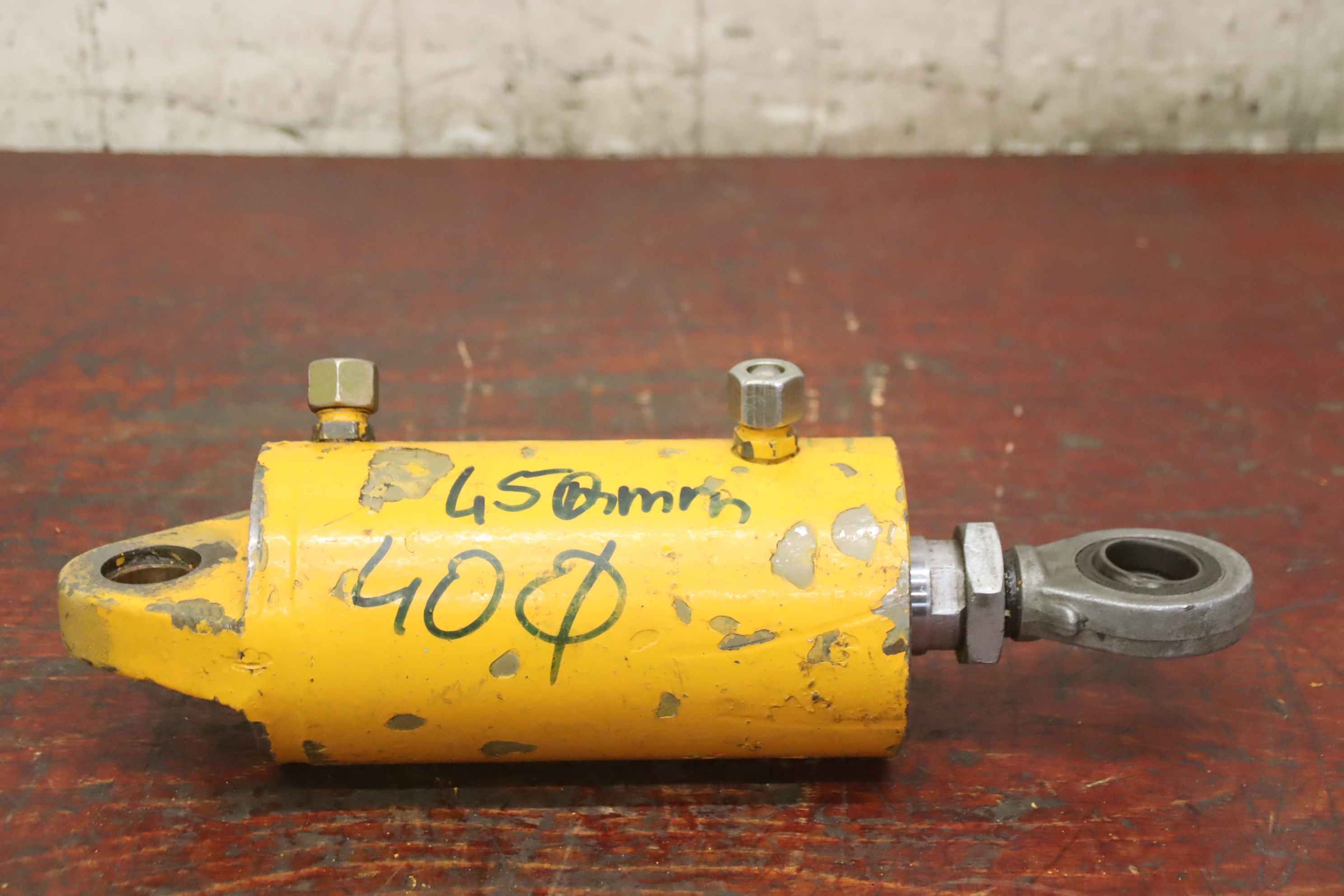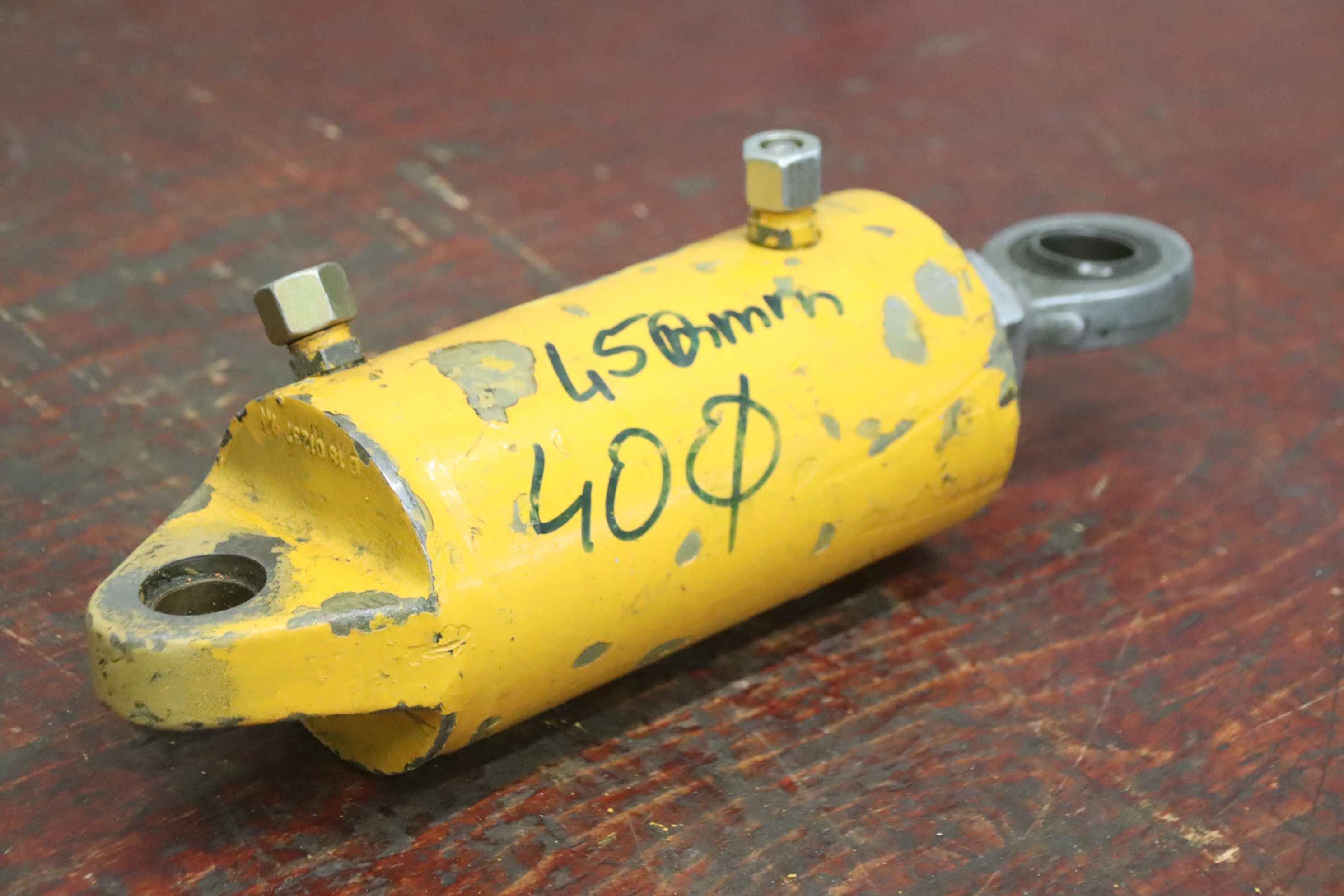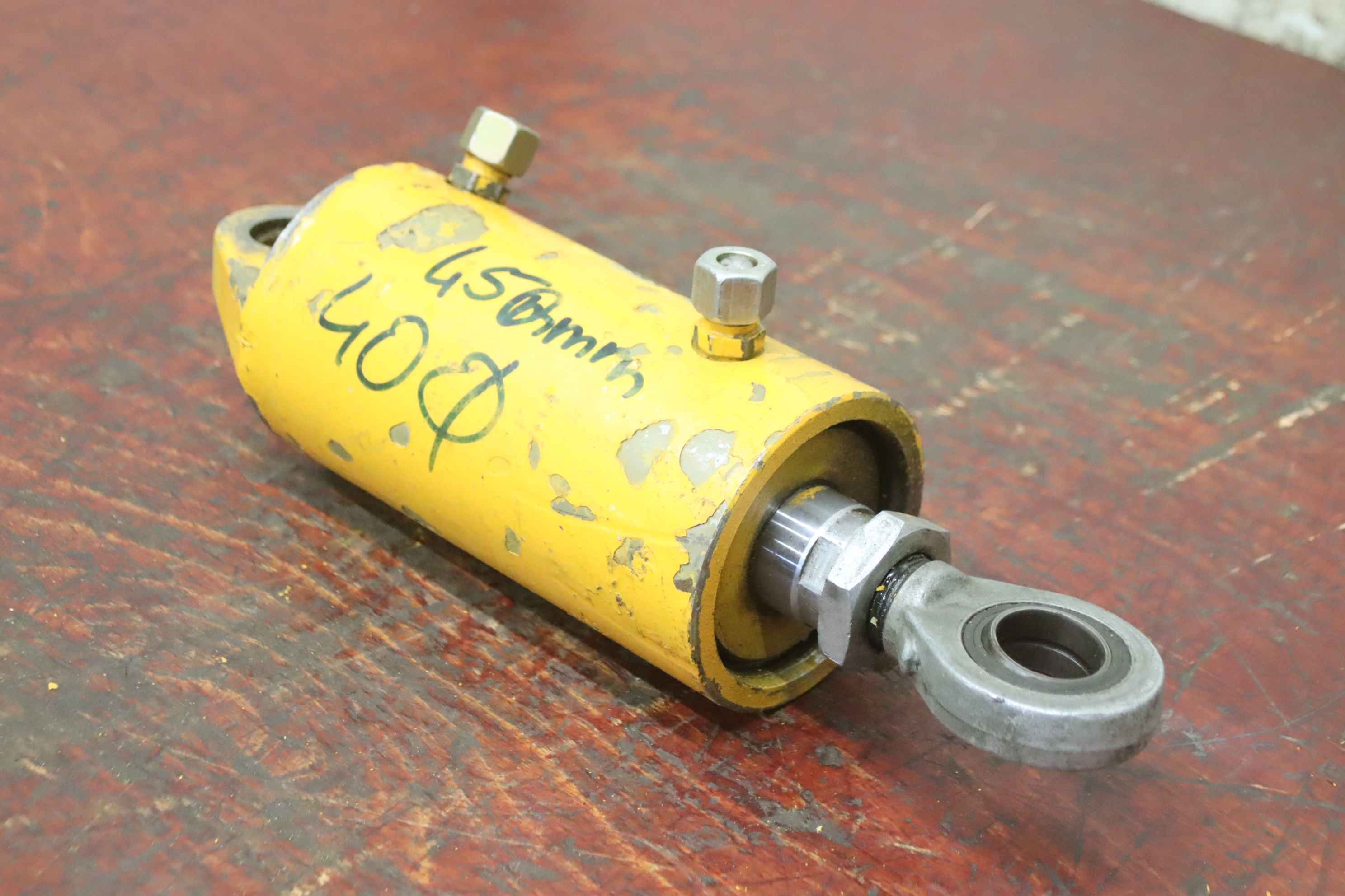 Hydraulic cylinders, support cylinders, hydraulic rams, pressure rams-Hydraulic cylinder: double-acting, stroke 45 mm-Piston rod: Ø 40 mm / thread M35-Mounting: Ø30/Ø25 mm / distance 330 mm-Dimensions: Ø 105 x 390 mm-Weight: 11.4 kg