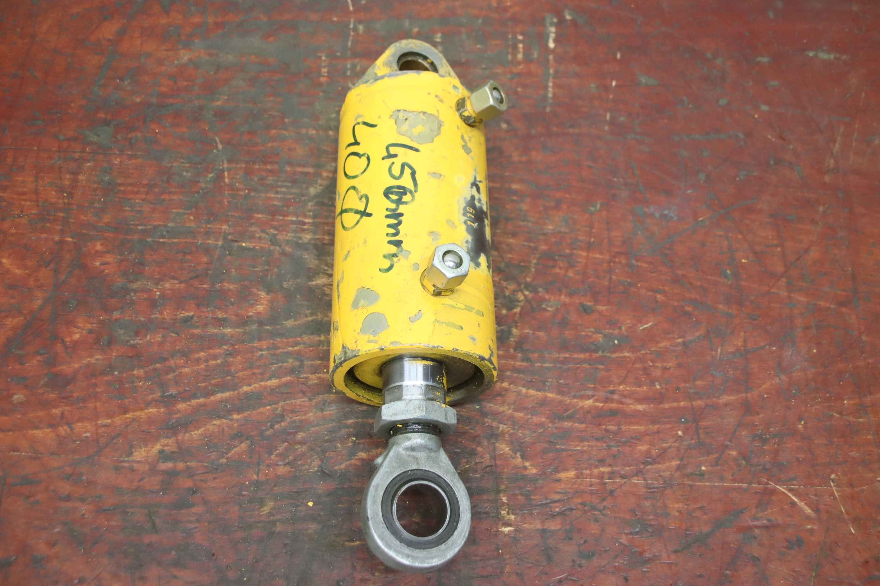 Hydraulic cylinder, support cylinder, hydraulic piston, pressure piston Quantity: 1 piece still available -Piston diameter: approx. 125 mm -Piston rod: Ø 85 mm -Stroke: 1000 mm -Total length retracted, center to center of hole: 1525 mm -Piston rod mounting: Ø 62 mm -Cylinder mounting: Ø 70 mm -Usable: universal -Dimensions: 1650/220/H150 mm -Weight: 140 kg