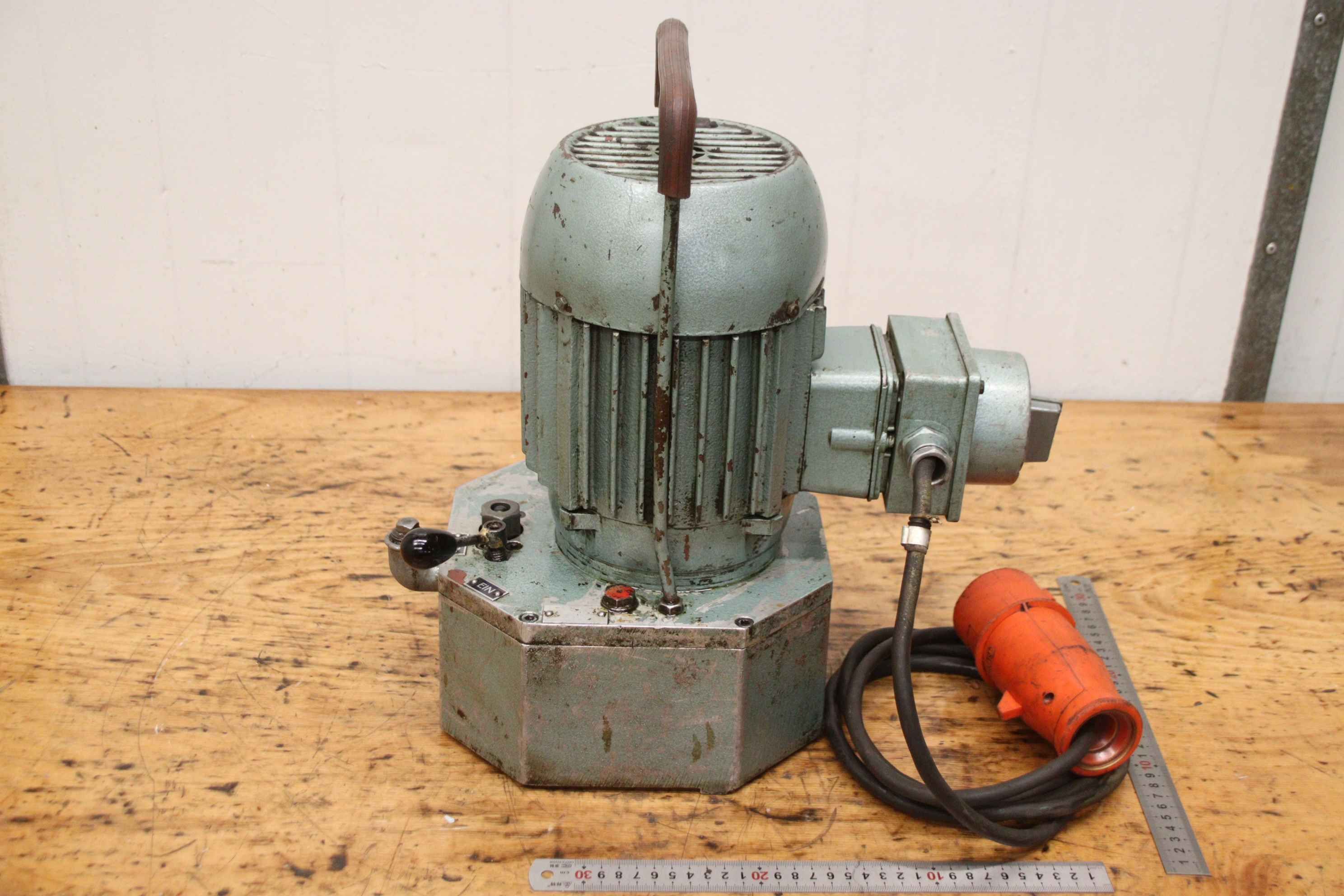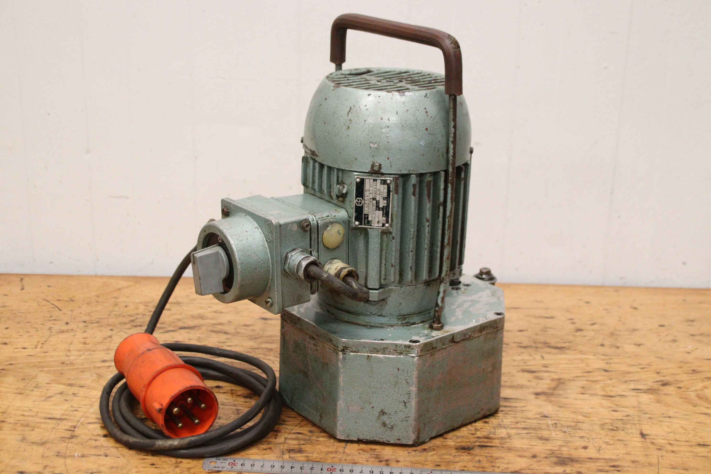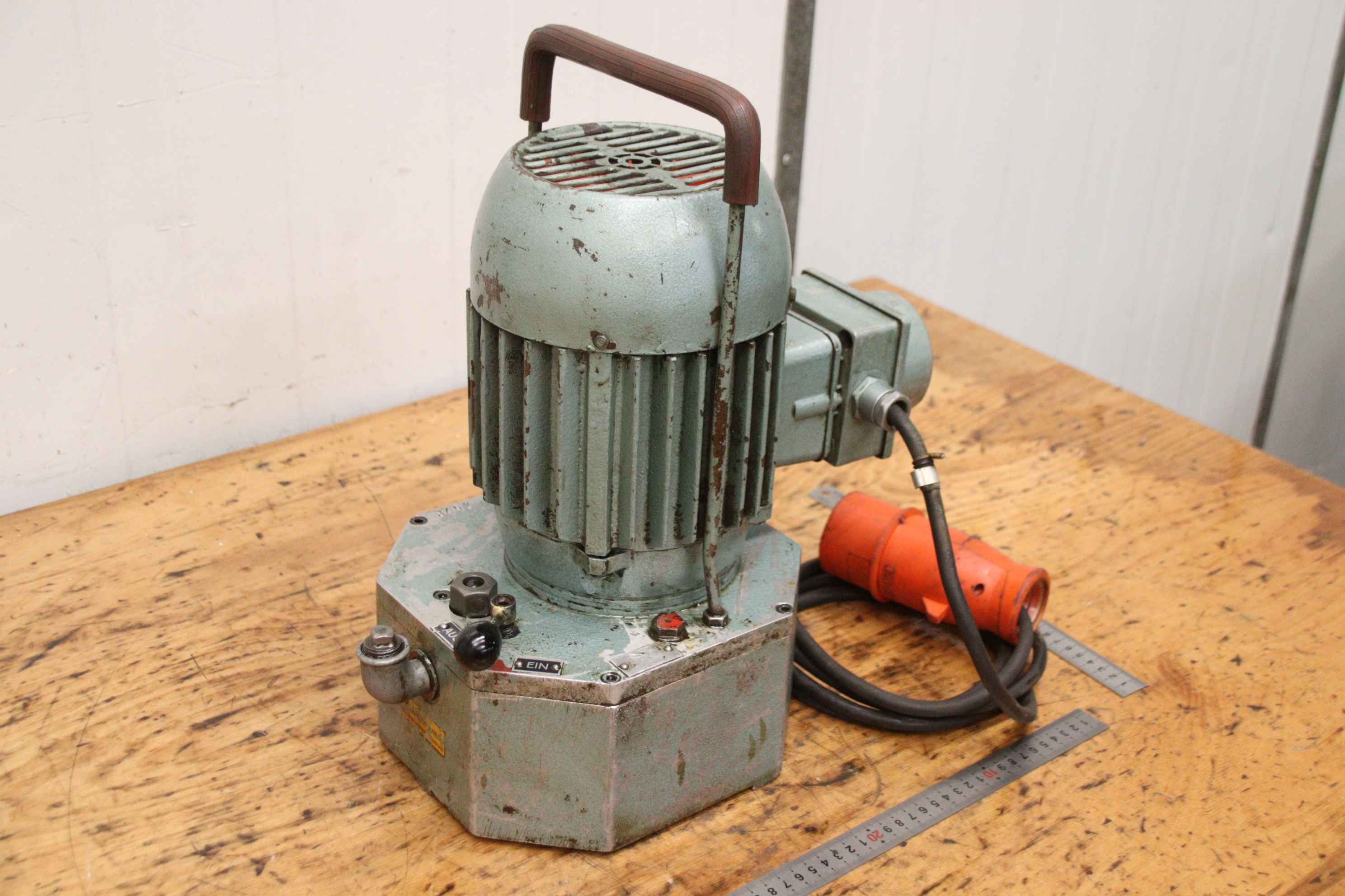 Hydraulic unit, hydraulic pump, hydraulic pump, universal unit, hydraulic station, -Hydraulic unit: with hydraulic tank, portable -Hydraulic pump: pressure up to 200 bar, unfortunately without type designation -Flow rate: 1.2 l/min -Motor: EP 1.1 kW / 1410 rpm -Hydraulic tank: with shut-off valve -Individual components: see photos -Dimensions: 400/220/H430 mm -Weight: 30.5 kg