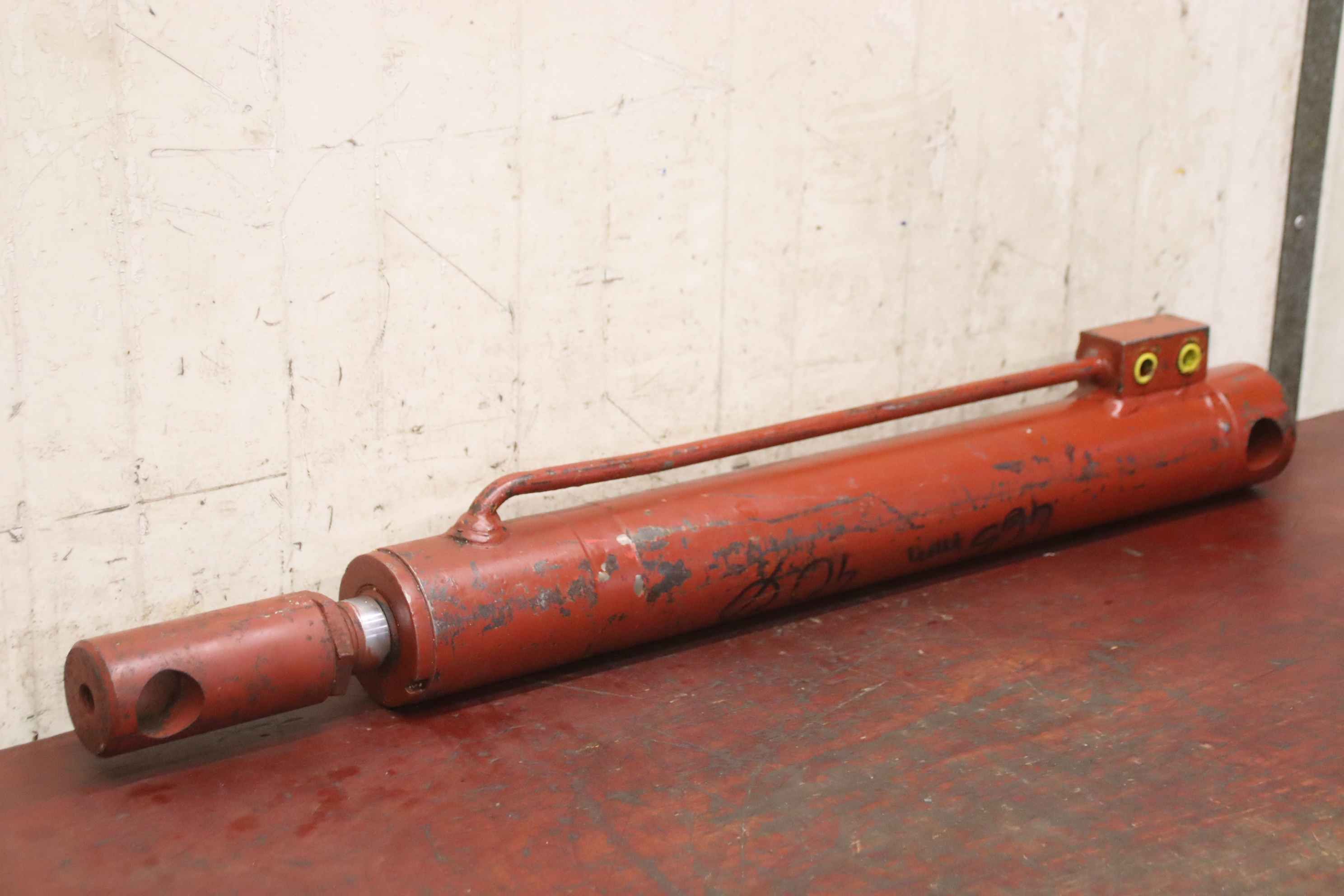 Hydraulic cylinders, support cylinders, hydraulic rams, pressure rams, swivel cylinders-Hydraulic cylinder: double-acting stroke 678 mm-Piston rod: Ø 30 mm-Holes: Ø 20 mm / distance retracted 810 mm-Dimensions: Ø 60 x 870 mm-Weight: 11.3 kg