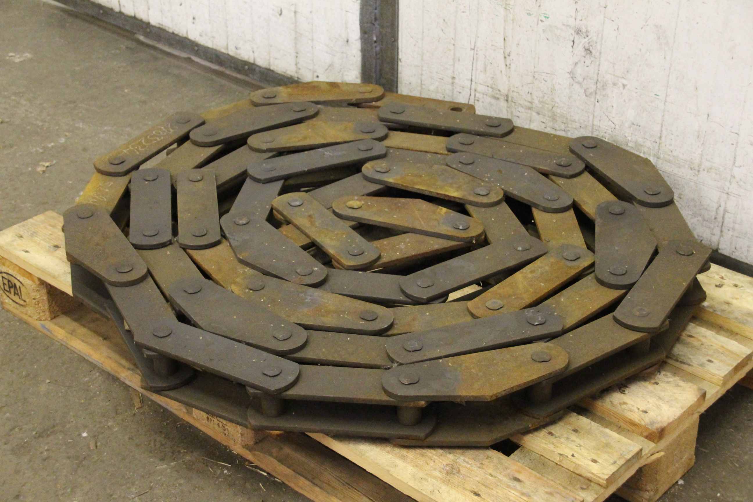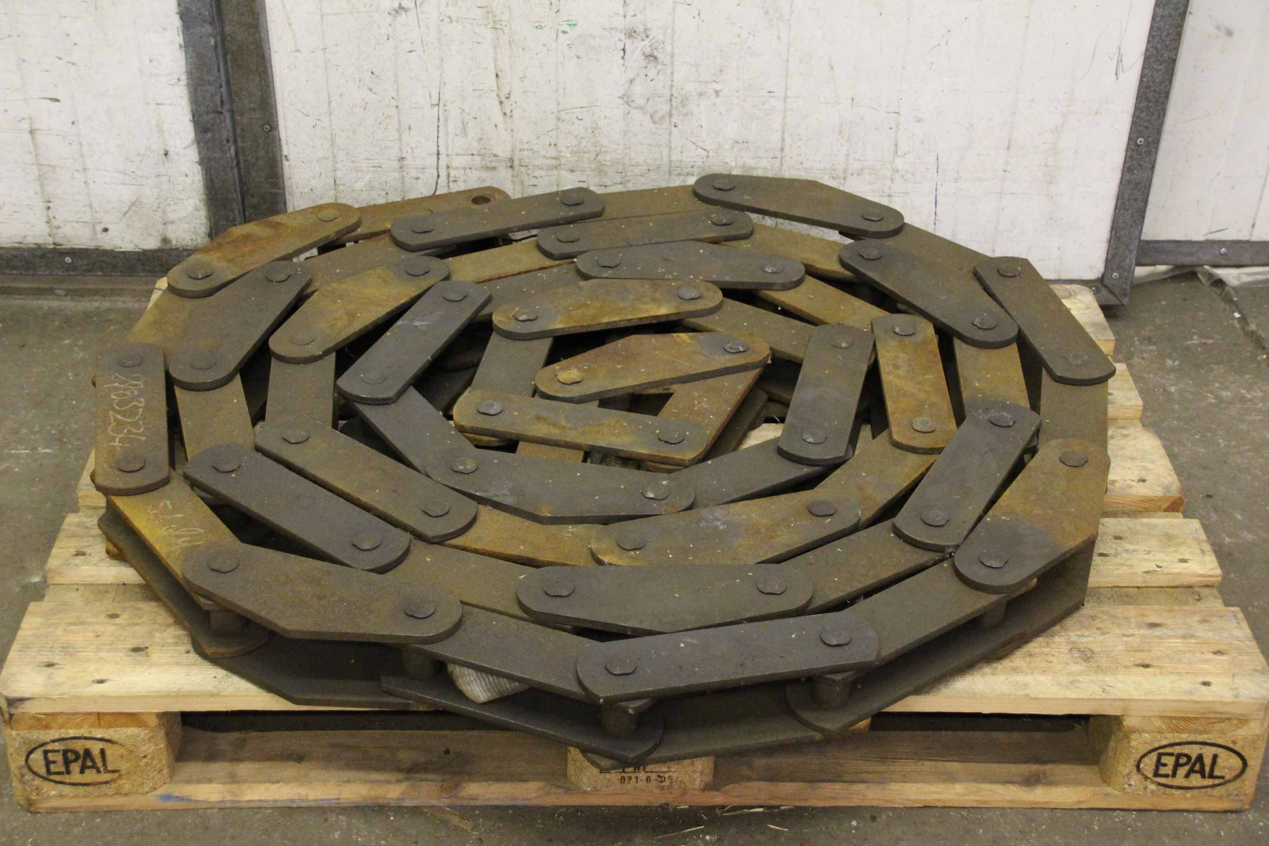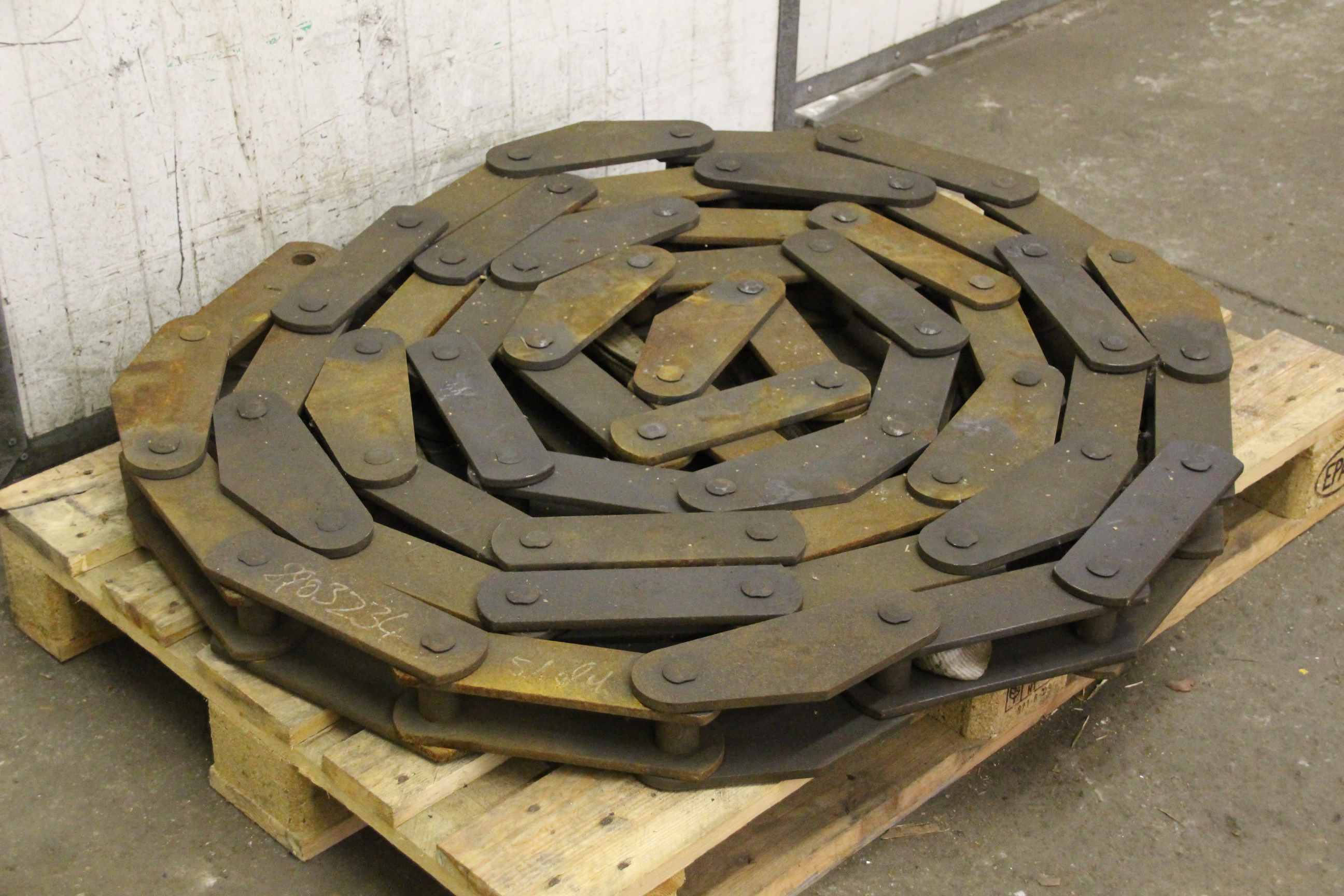 Long link roller chains, transport chain, roller chain, drive chain-Chain length: 10 m-Pitch: 200 mm-Intermediate dimension: 48 mm-Dimensions 1200/1000/100 mm-Weight: 176.5 kg