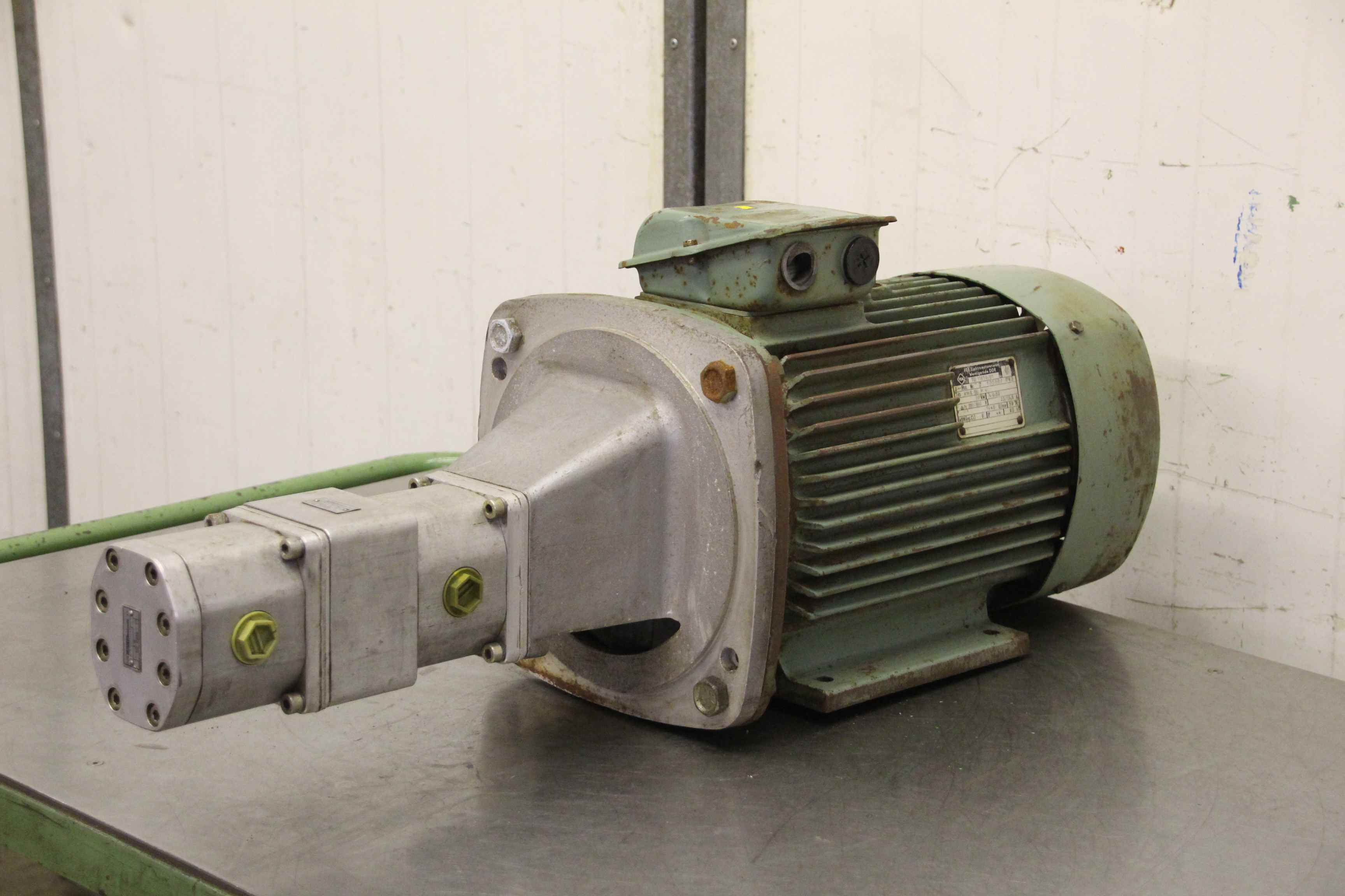 Hydraulic Pump, Oil Pump, Gear Pump, Injection Molding Machine, Injection Molding Machine, Plastic Injection Molding Machine, Plastic Injection Molding Machine, Plastic Injection Molding Press-Manufacturer: ORSTA-double pump-Pump 1: type A16R-Pump 2: type C16-3R-Drive: VEM type KMR132M4-Power: 11 kW 1440 rpm-with clutch bell-Number: 3x hydraulic pumps available-Price: per piece-Dimensions: 830/285/H335 mm-Weight: 105 kg