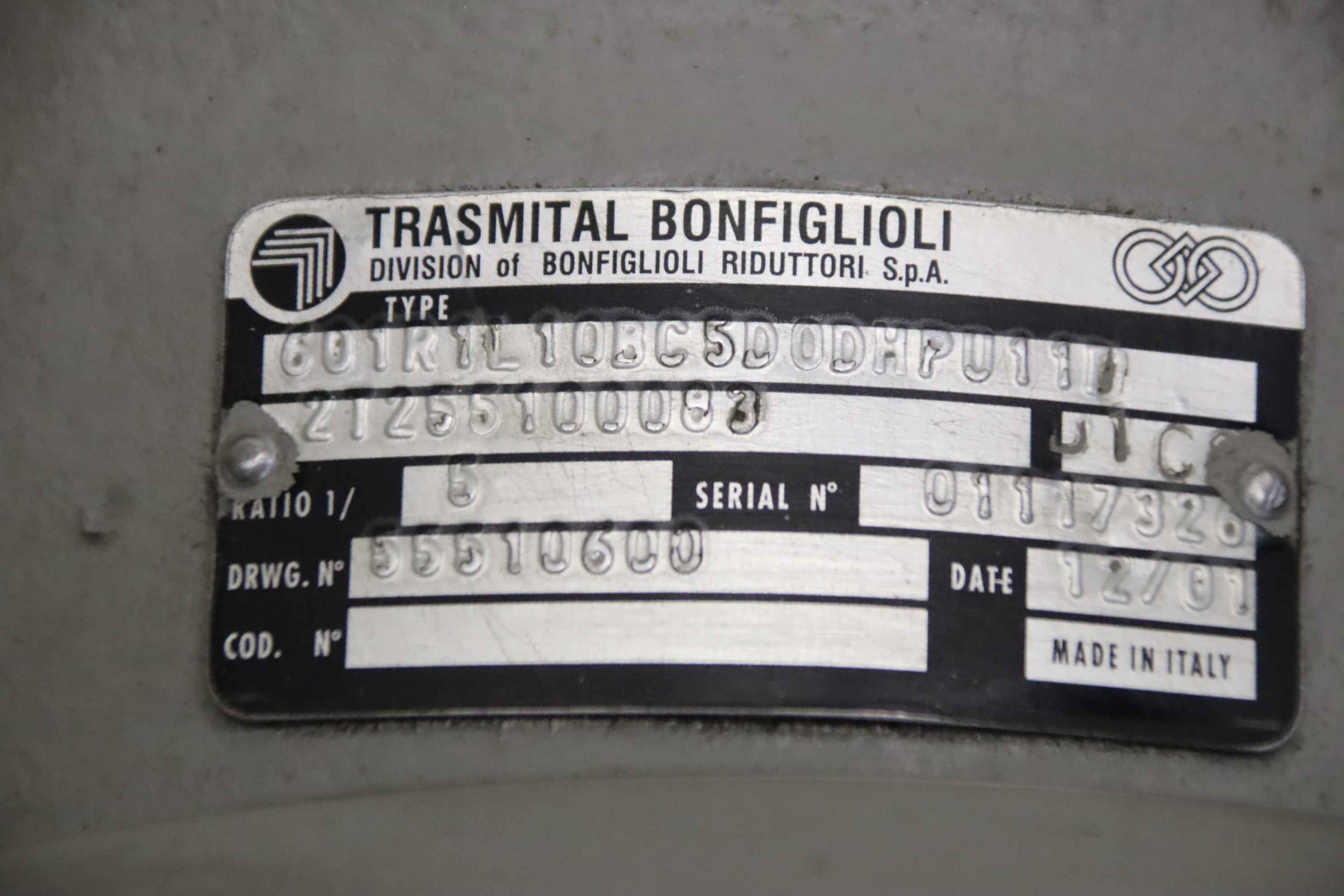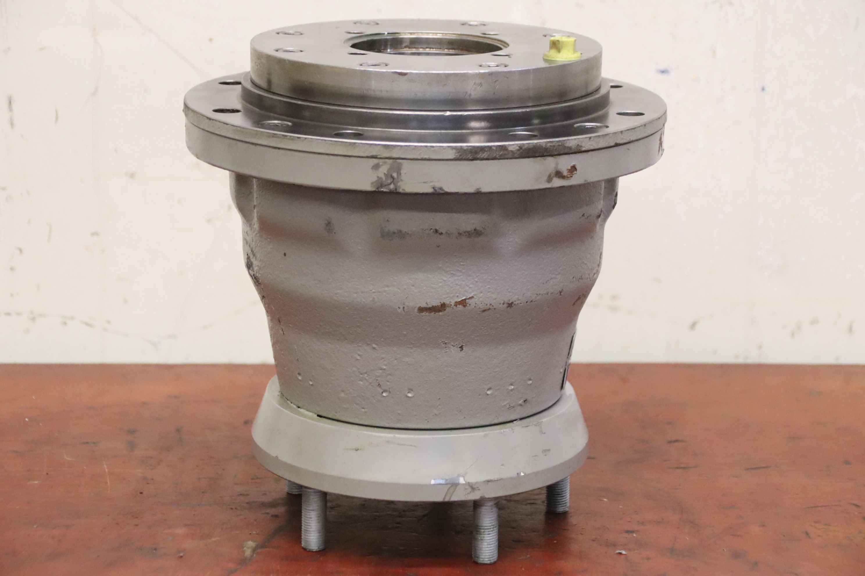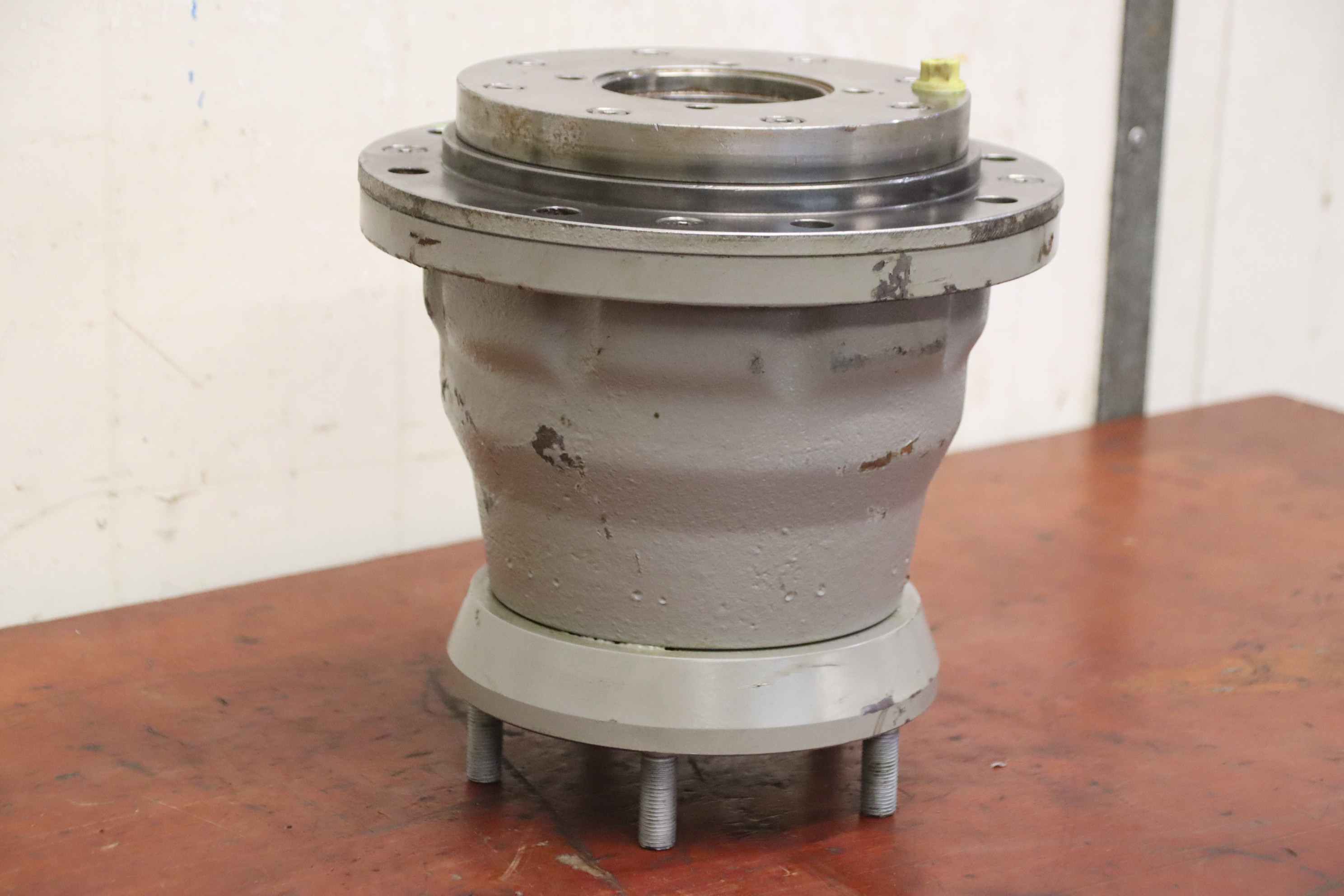 Gearbox, planetary gear for hydraulic motor, axle drive, gear axle drive, wheel drive, double planetary gear -Manufacturer: Trasmital Bonfiglioli, wheel drive -Type: 601R1L10BC5DODHP011 -Translation: 1 : 5 -Torque: 3000 Nm -Drive side mount: KW-21 splined shaft -Dimensions: see photos / technical drawing -Number: 20x gearbox available -Price: per piece -Dimensions: Ø 262 x 270 mm -Weight: 42 kg/piece