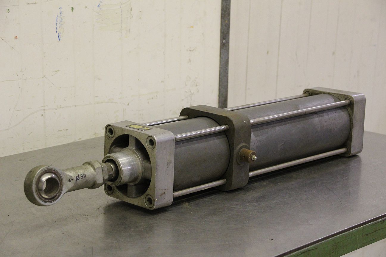 Pneumatic cylinders, air cylinders, pneumatic rams, air rams-Manufacturer: Martonair type RM/8125 B-Stroke: 500 mm-Piston: Ø 125 mm-Piston rod: Ø 32 mm-Pressure: max. 16 bar-Dimensions: 880/140/140 mm-Weight: 23 kg