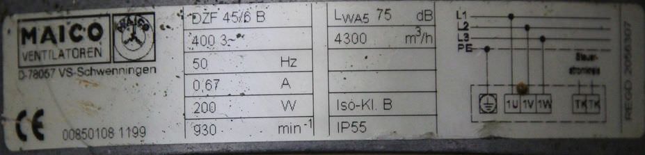 Fan, fan, electric motor, blower-Speed: 930 rpm-Fan diameter: 455 mm-Dimensions: 455/455/H275 mm-Weight: 8 kg
