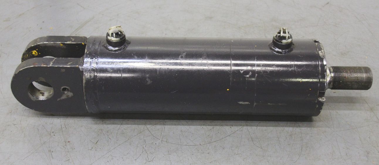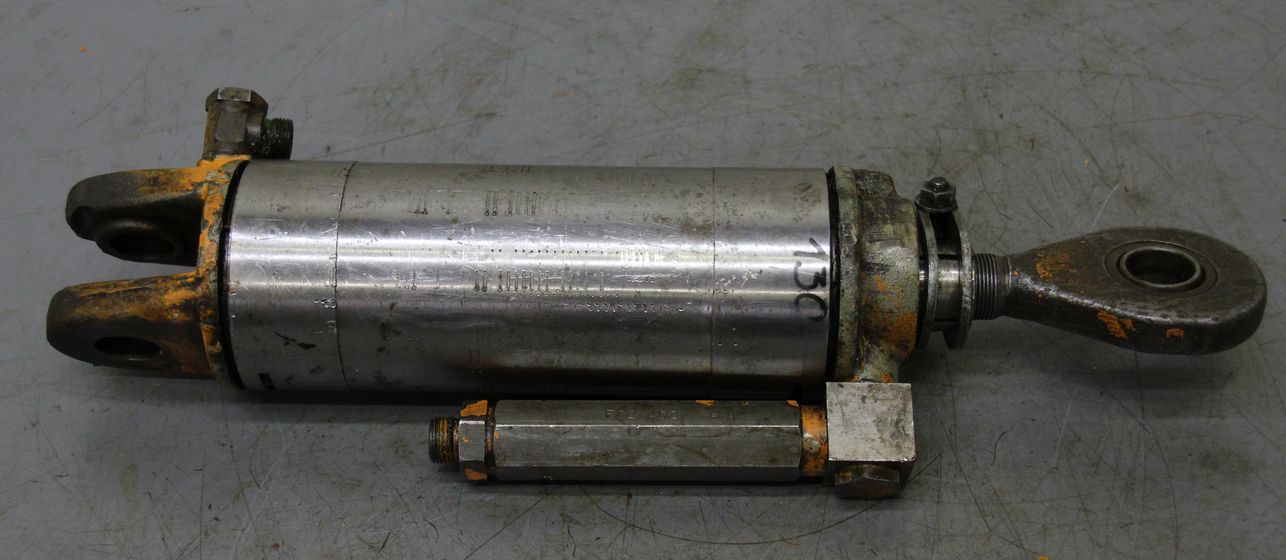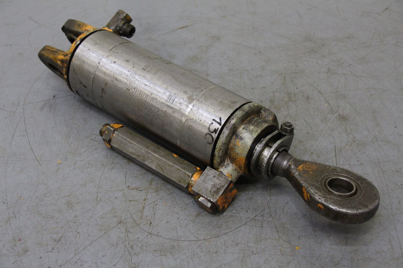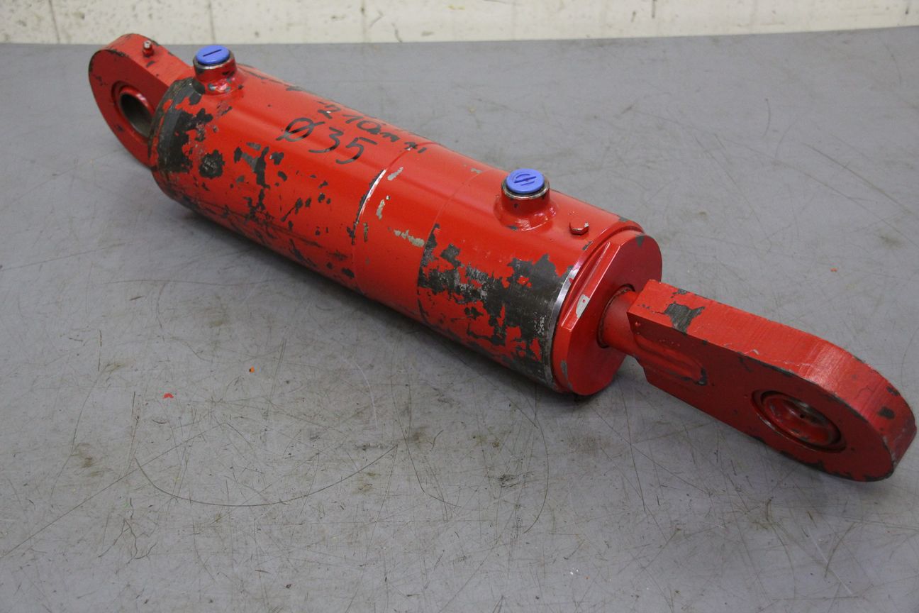 Hydraulic cylinder, support cylinder, hydraulic piston, pressure piston -Hydraulic cylinder: stroke 210 mm -Piston rod: Ø 40 mm -Mounting holes: Ø35 x 25 mm -Cylinder: outer Ø 110 mm -Number: 4 cylinders available -Price: per piece -Dimensions: 640/130/H110 mm -Weight: 22 kg/pc.