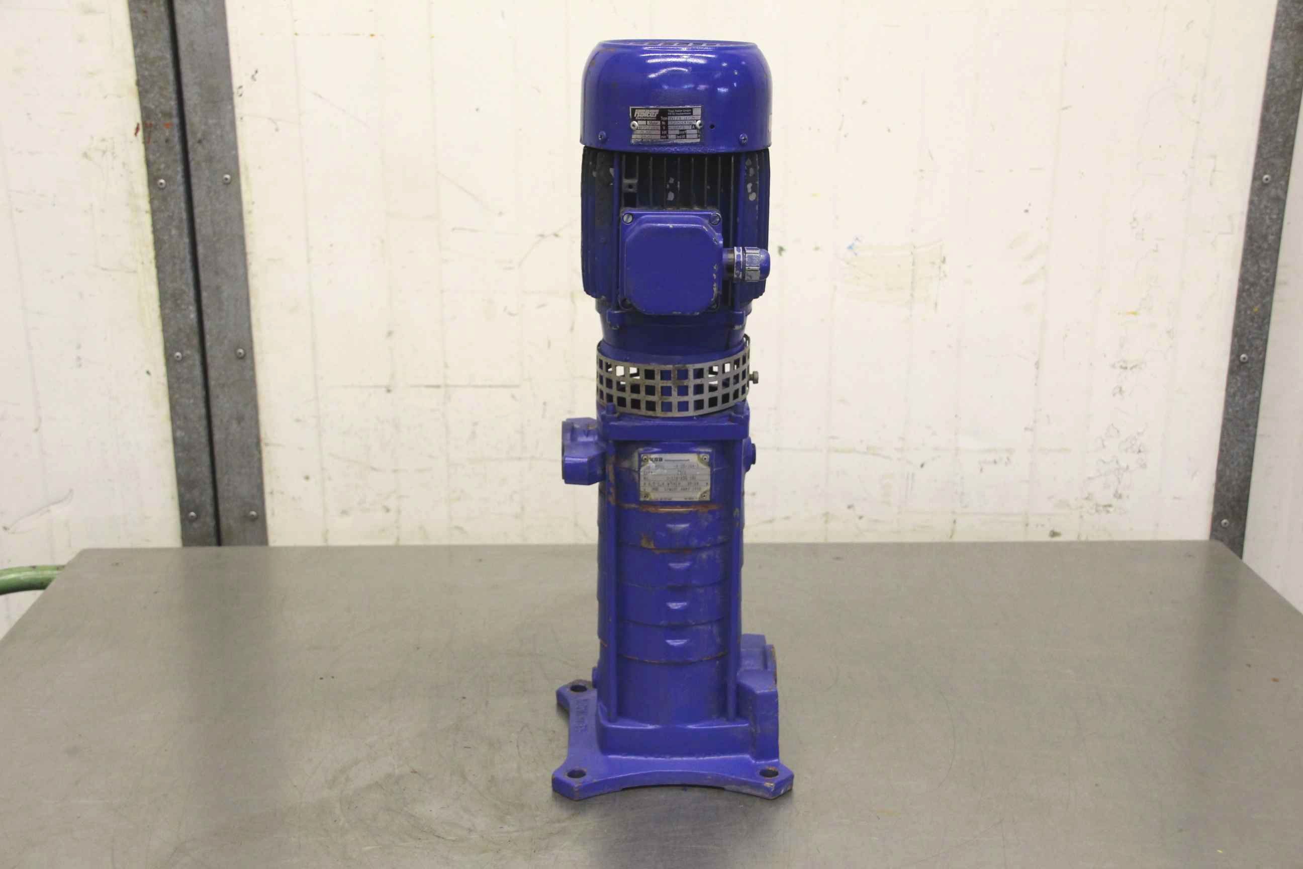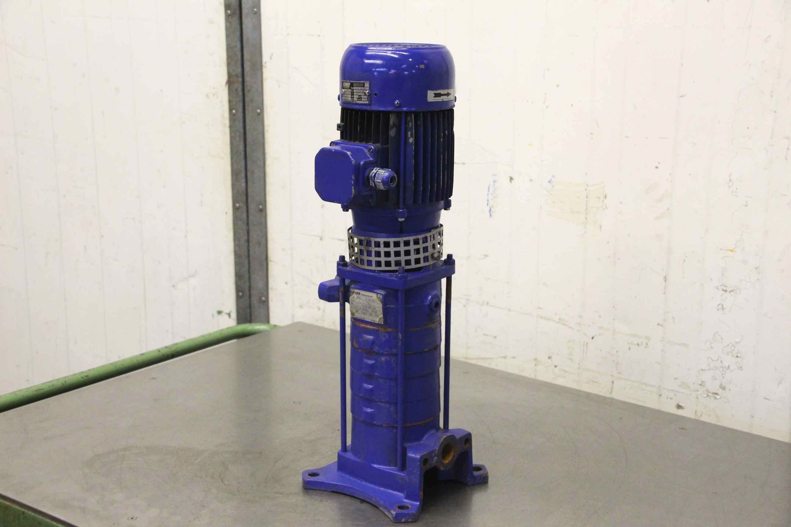 Centrifugal pump, high pressure pump, water pump, multistage vertical centrifugal pump, booster pump, booster pump-Manufacturer: KSB, inline pump MOVI -V 25/104-3-Drive: 0.55 kW-Speed: 2840 rpm-max. delivery rate: 0.5-2.4 m³/h-max. head: 39-24 m-Dimensions: 185/185/H555 mm-Weight: 22 kg