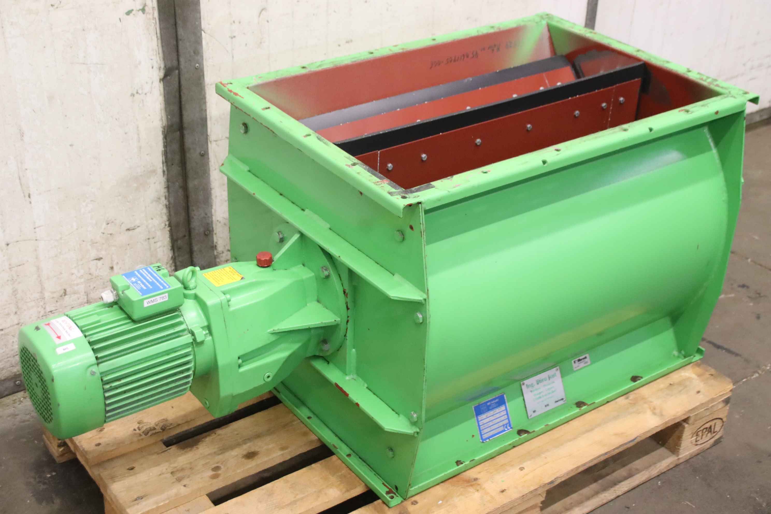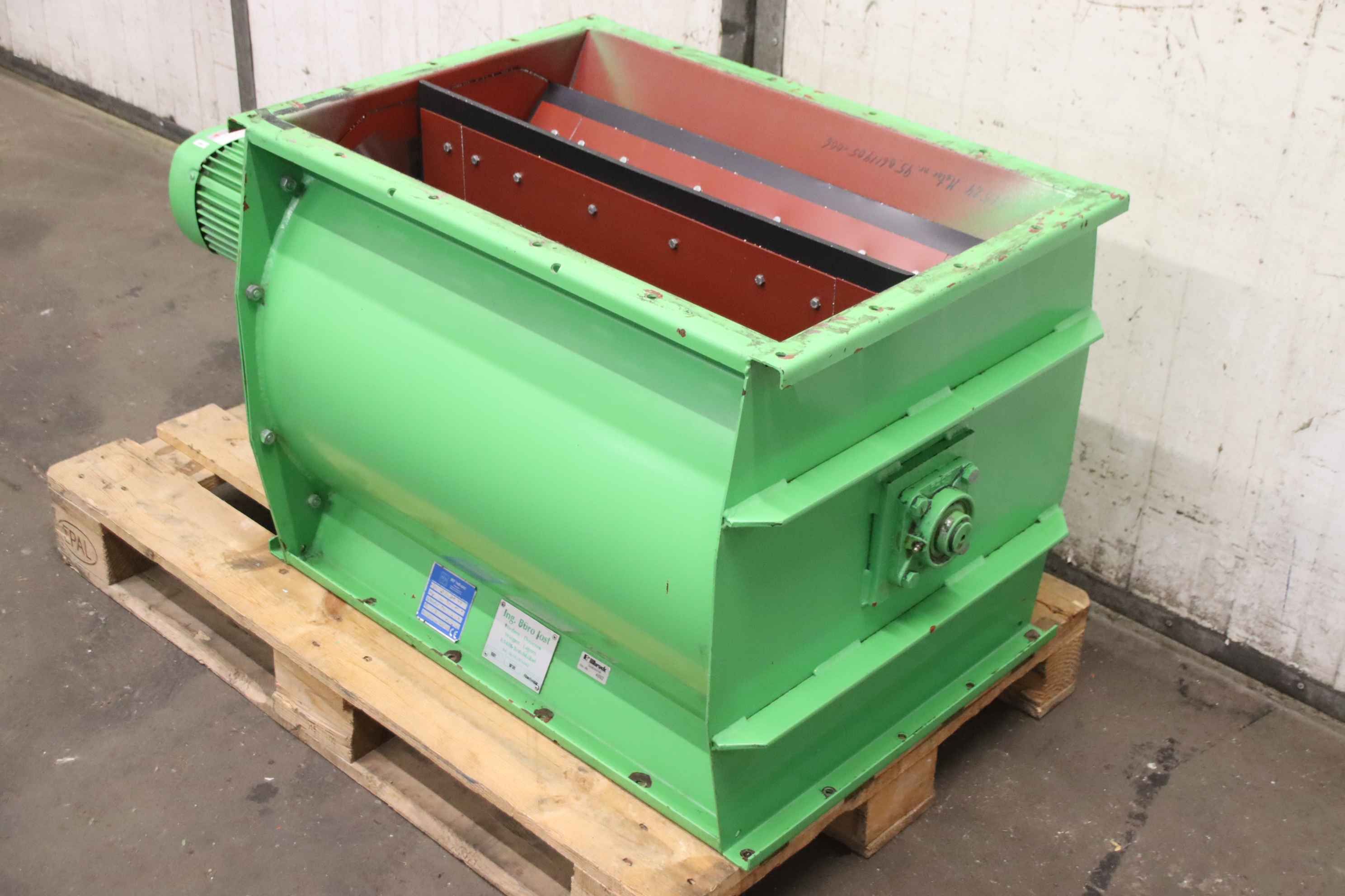 Dosing rotary valve, rotary valve, dosing valve, rotary valve for screw conveyor, transport screw, screw conveyor, conveyor technology, tubular screw conveyor -Cell wheel lock. 8 blades, with drive -Speed: 16 rpm -Drive motor: 0.75 kW -Inlet/outlet: 500 x 750 mm -Number: 2x rotary valves available -Price: per piece -Dimensions: 650/1340/H600 mm -Weight: 208 kg