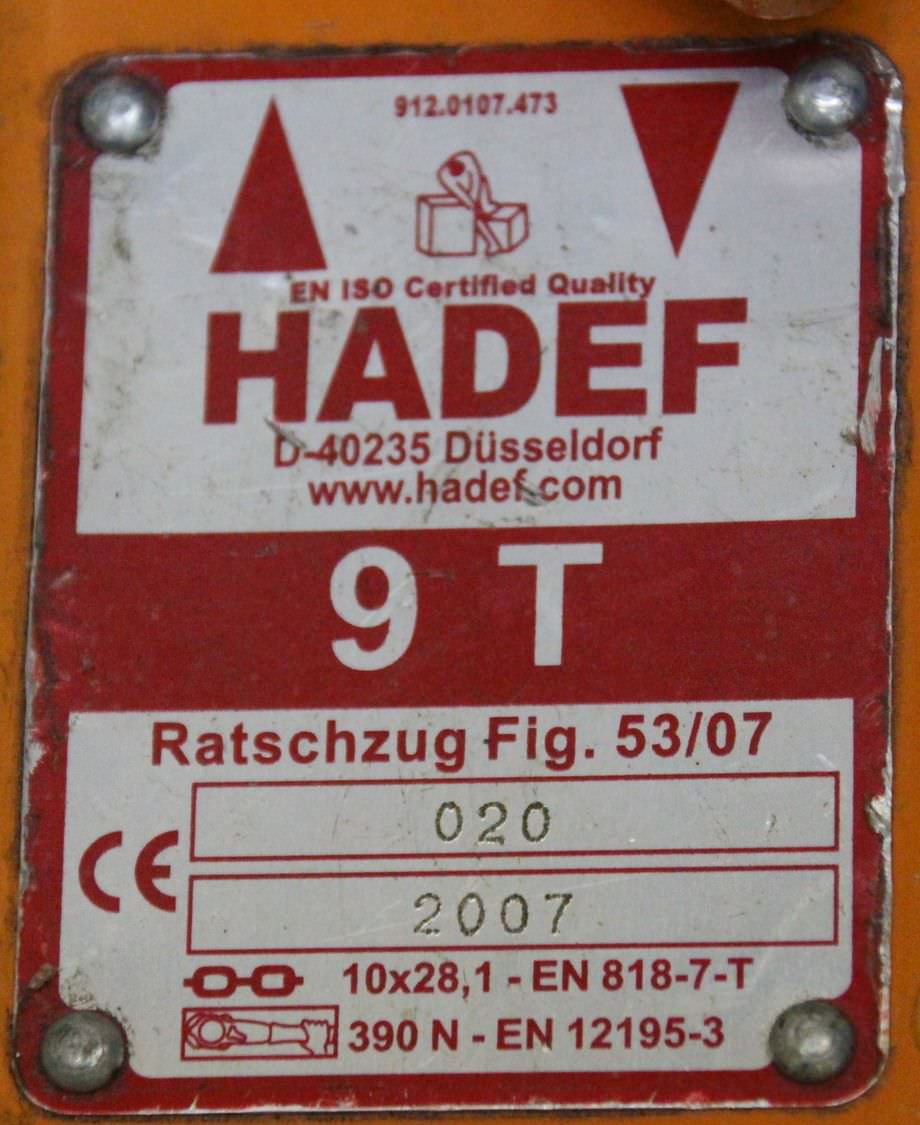 Lever hoist, chain hoist, crane, assembly hoist, assembly chain hoist -Load capacity: 9000 kg -Chain length: 1.5 m -Weight: 40 kg