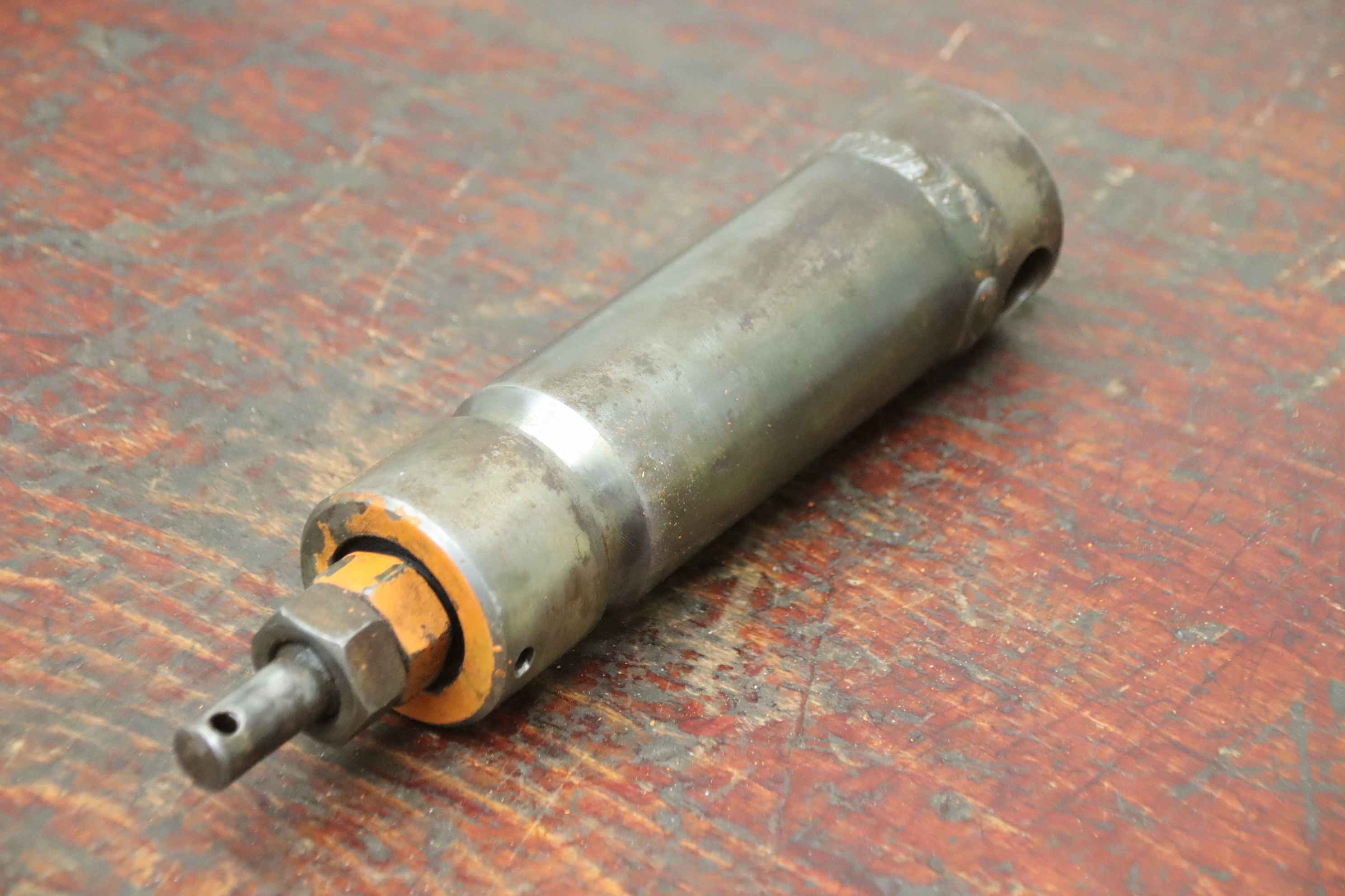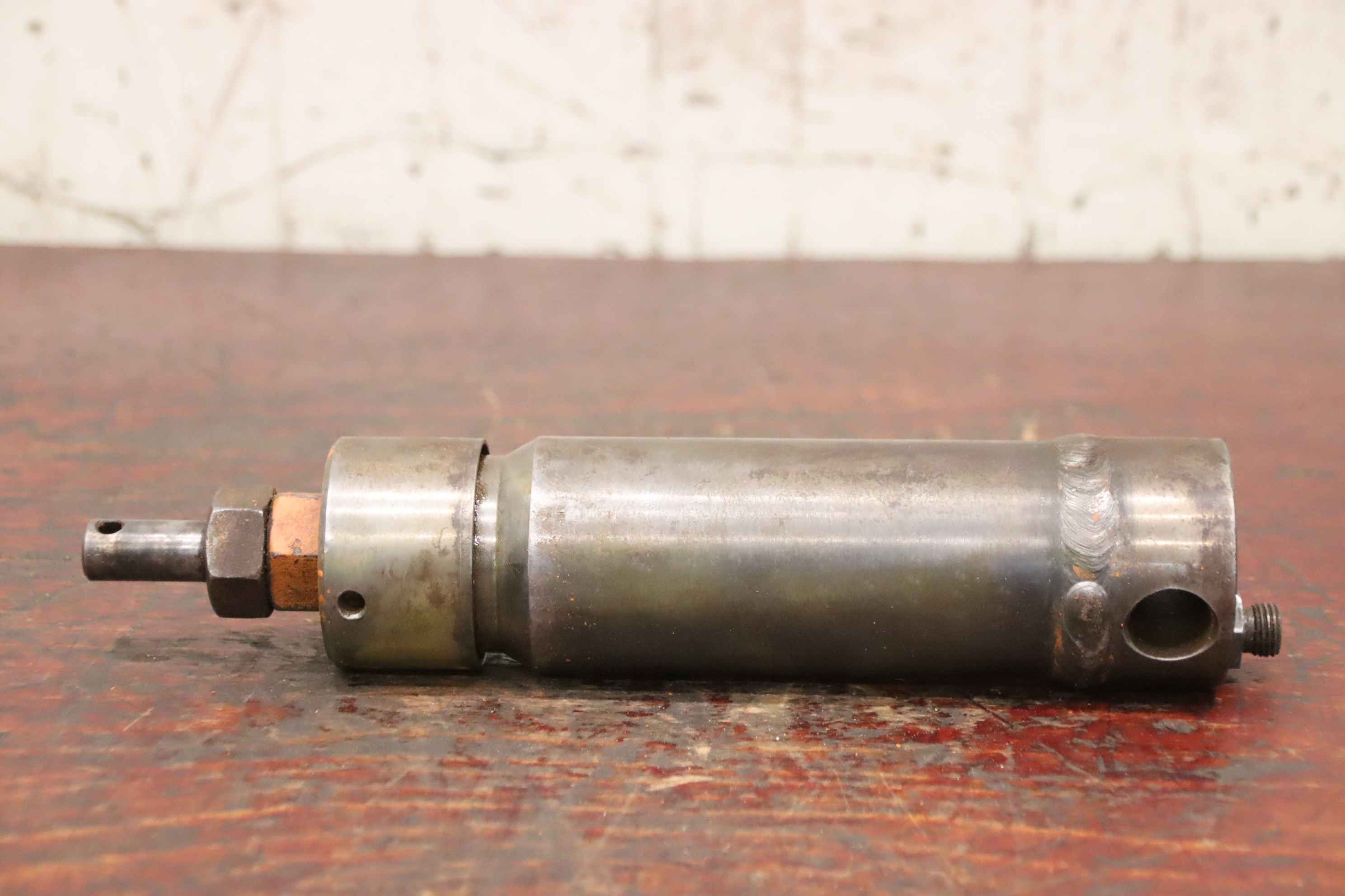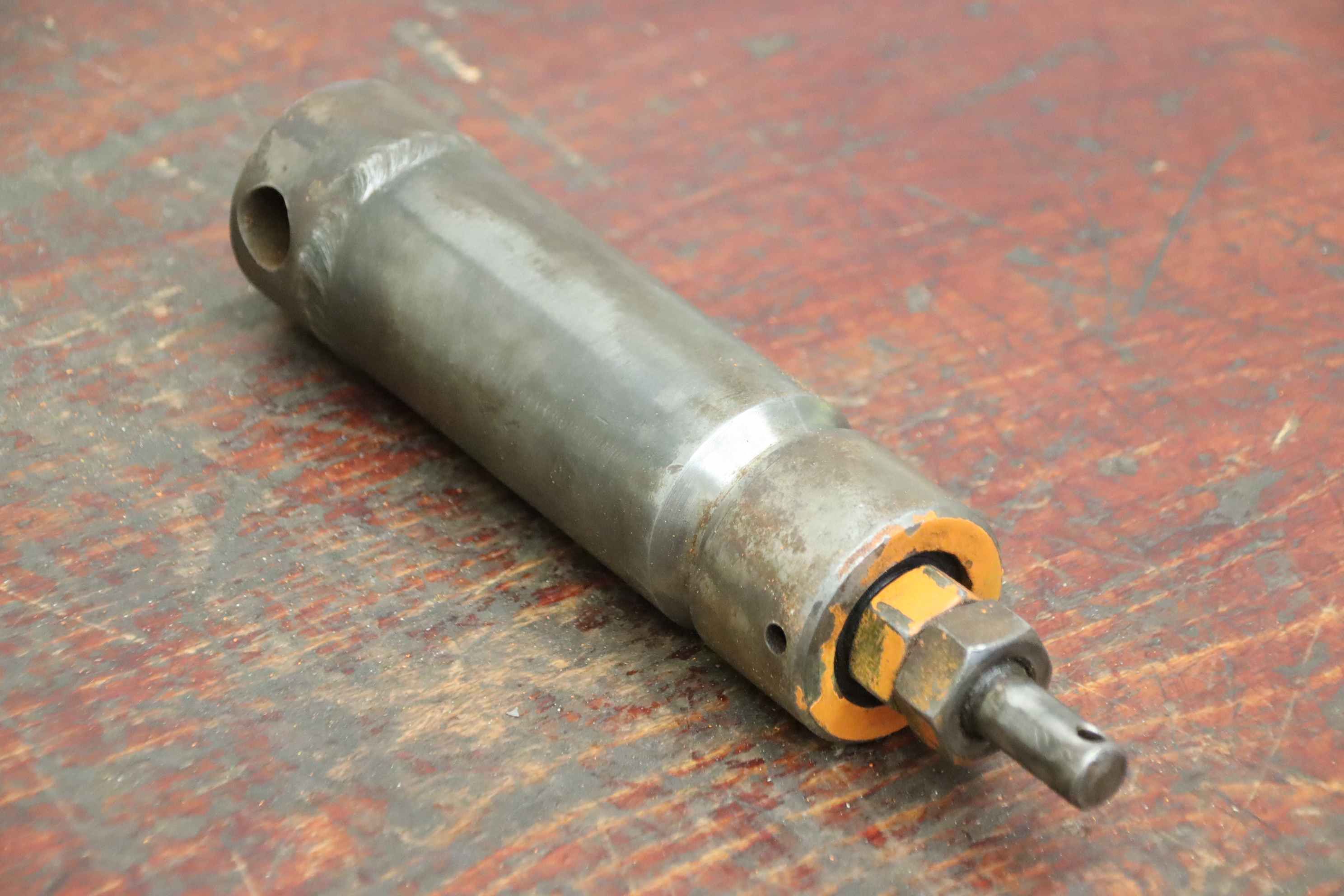 Hydraulic cylinders, support cylinders, hydraulic rams, pressure rams-Hydraulic cylinder: single-acting stroke 120 mm-Type: unfortunately without type designation-Piston rod: Ø 25 mm-Hole: Ø 20 mm-Number: 2x cylinders available-Price: per piece-Dimensions: Ø 60 x 300 mm-Weight: 4.0 kg/piece