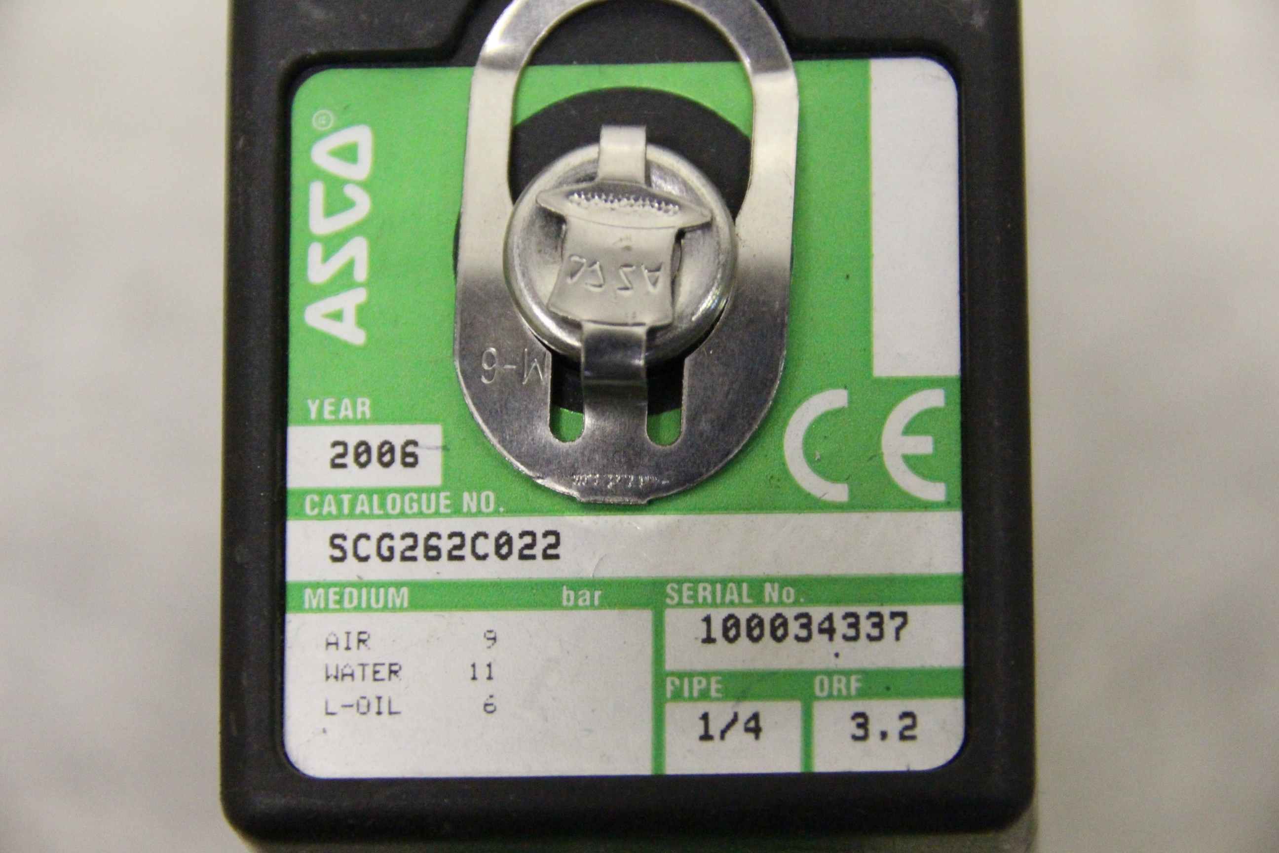 Butterfly valve, flap valve, solenoid valve, solenoid valve-Manufacturer: Asco, two-way solenoid valve-Type: SCG262C022-Connection: 1/4 -Number: 1x valve available-Dimensions: 70/40/H60 mm-Weight: 0.4 kg