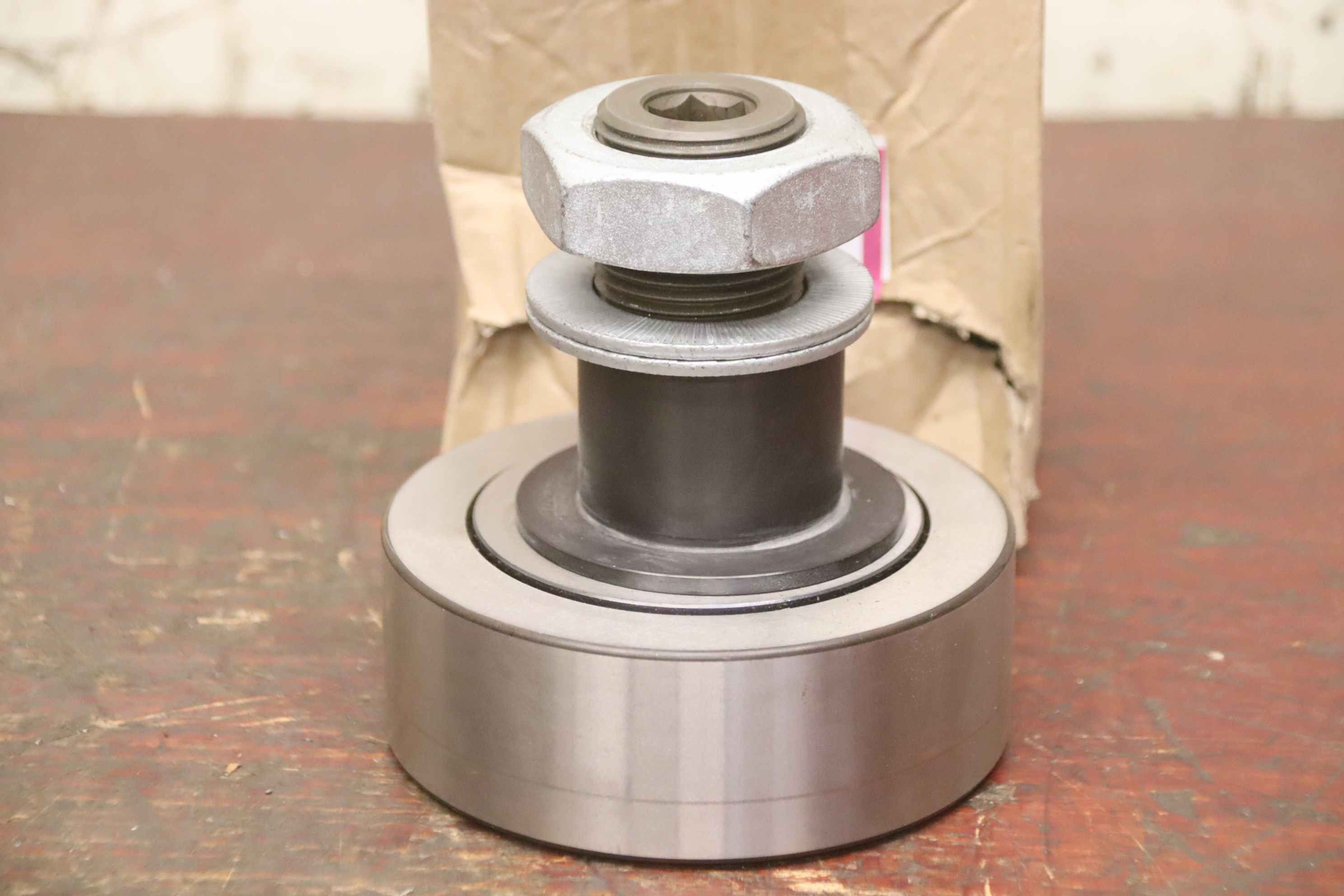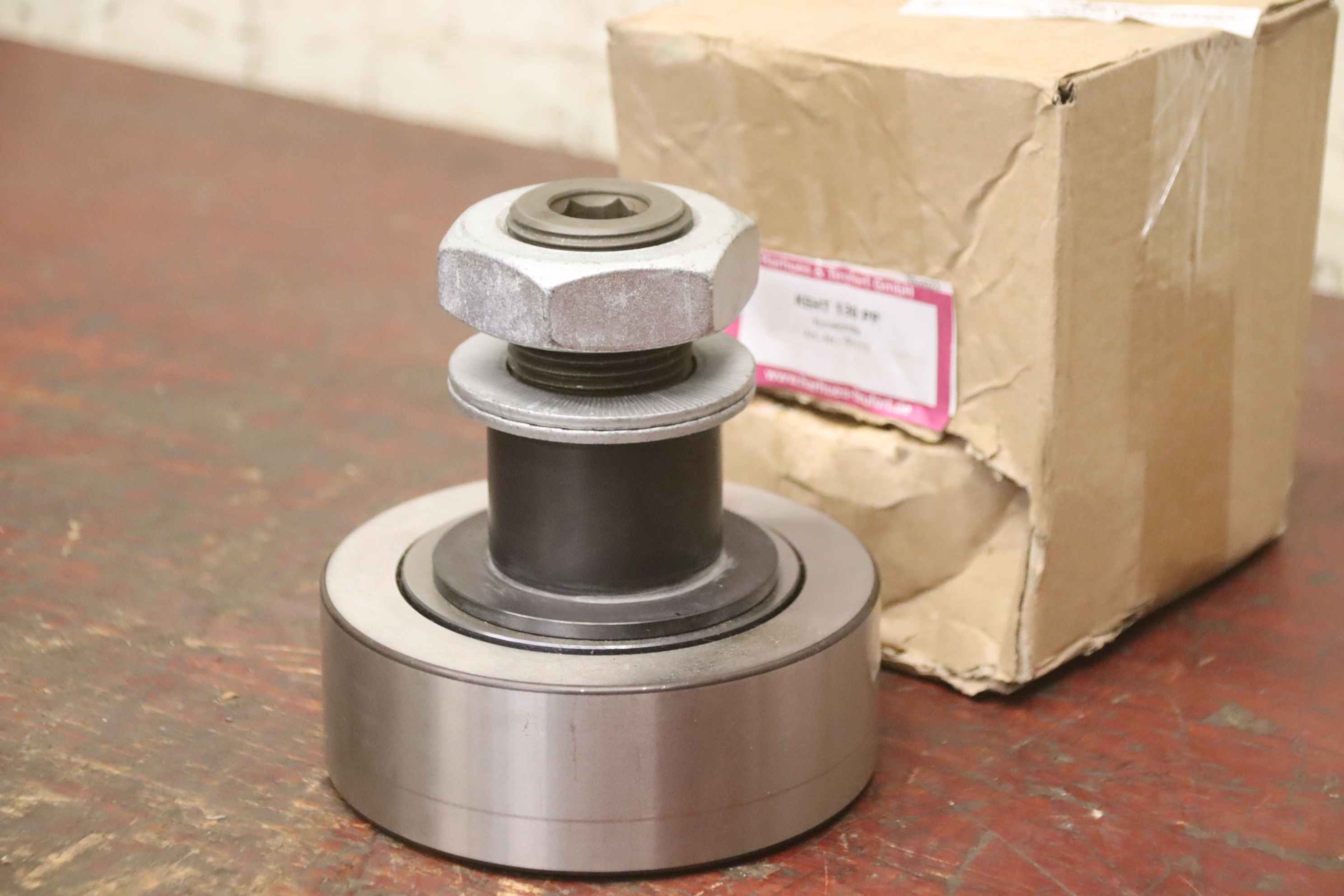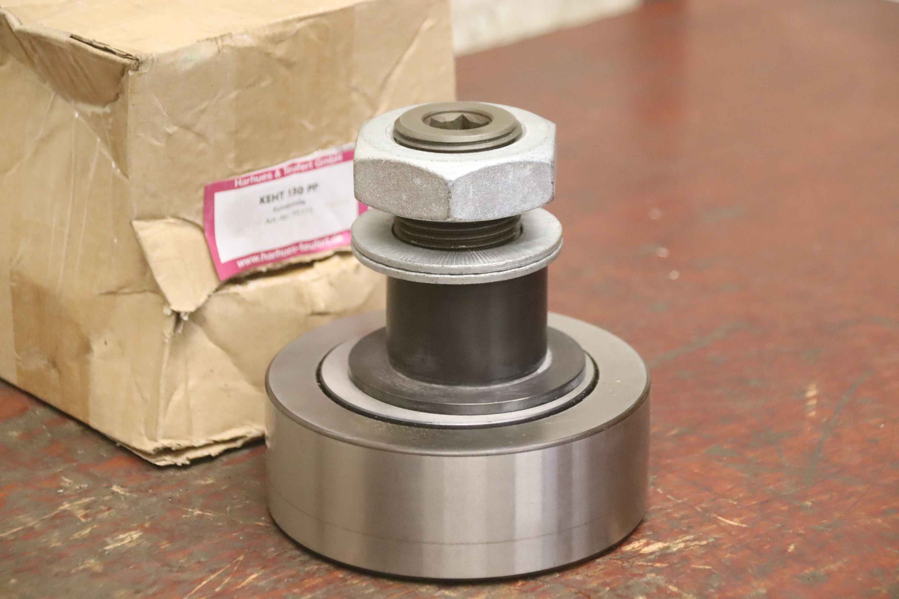 Track roller, steel roller, guide roller, support roller, cam roller-Manufacturer: Harhues & Teufert, cam roller type KEHT 130PP unused Ovp-Art.No.: 95173 1048 1462-Mounting: Ø54 mm / M42x3-Number: 4x cam roller available-Price: per piece-Total dimensions: Ø 130 x 135 mm-Weight: 6.3 kg/piece