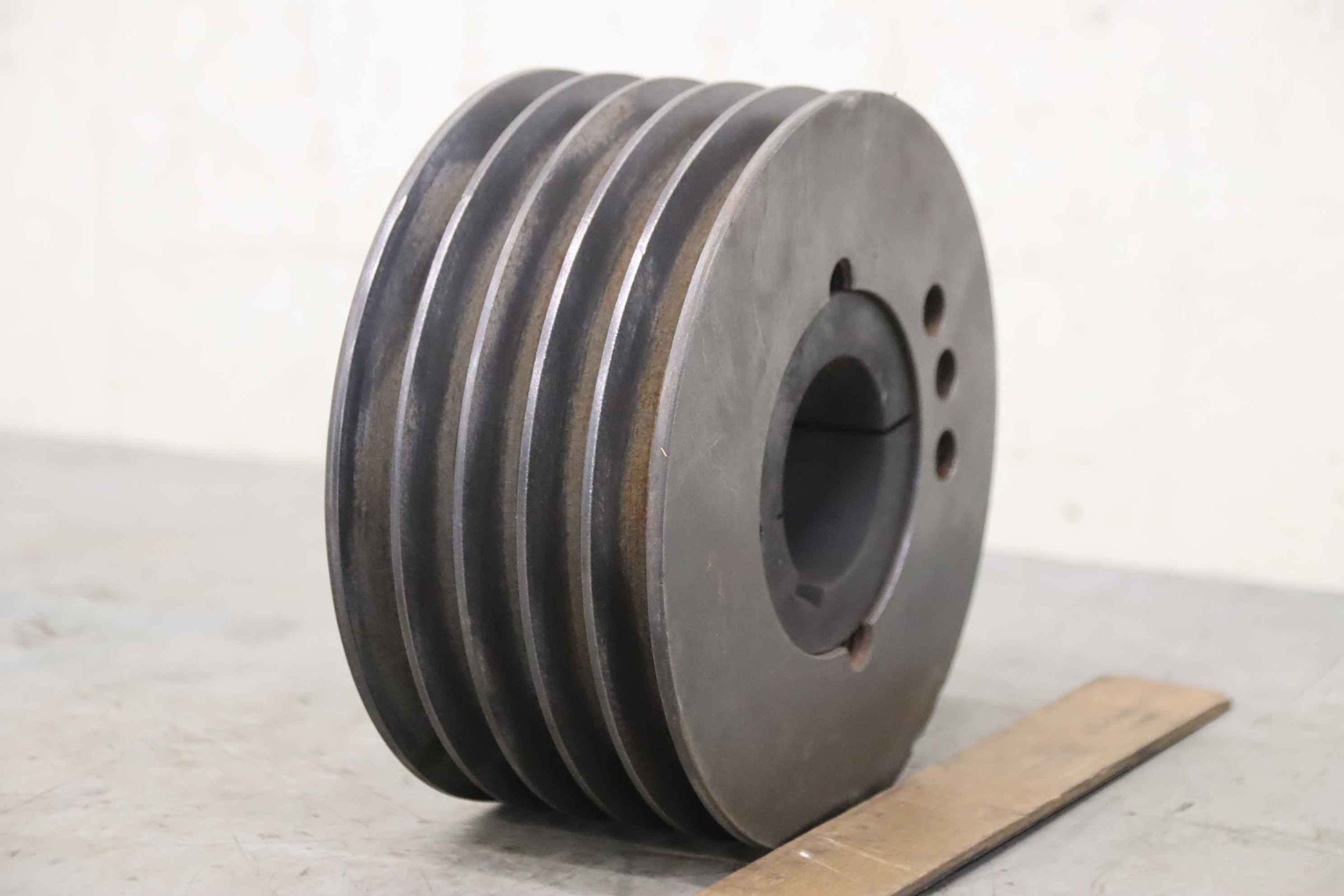 V-belt pulley, pulley with taper bushing, taper tensioning bushing, taperlock tensioning bushing -Manufacturer: Desch, V-belt pulley pulley 5 grooves SPA 160x5 2517 -V-belt width: 13 mm -Receptacle: Ø 50 x 45 mm taper bushing 2517-50 (can be changed) -Quantity: 1x pulley available -Dimensions: Ø 165 x 80 mm -Weight: 6.4kg