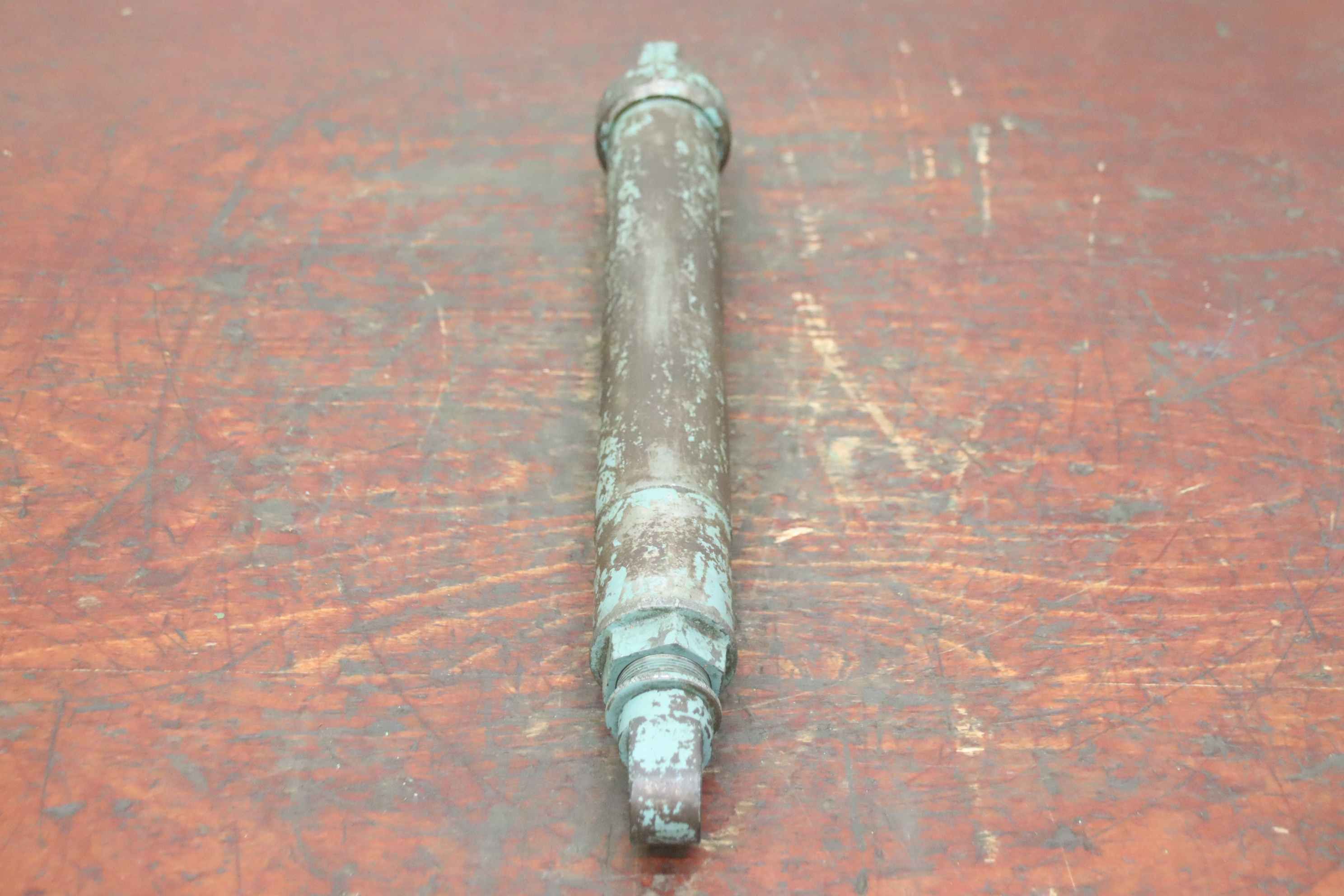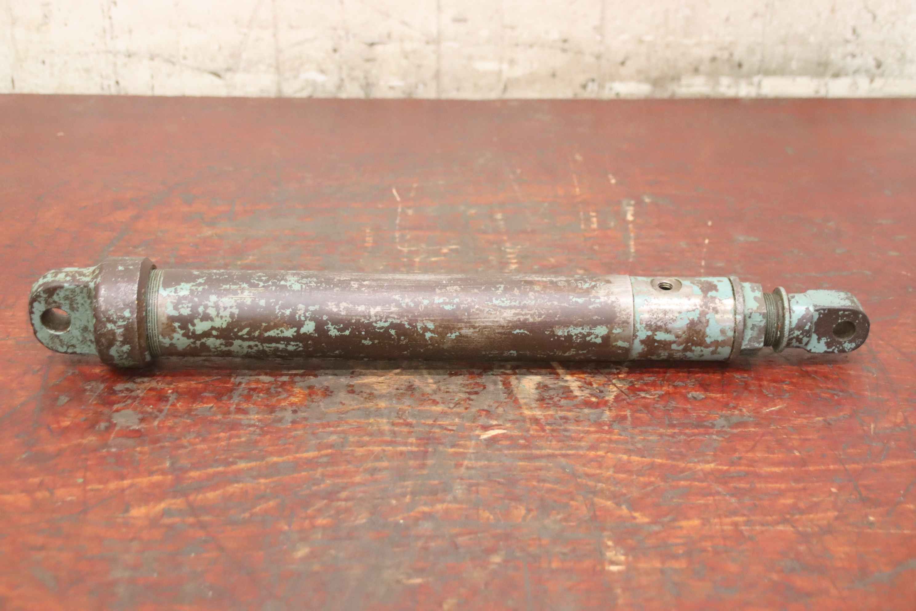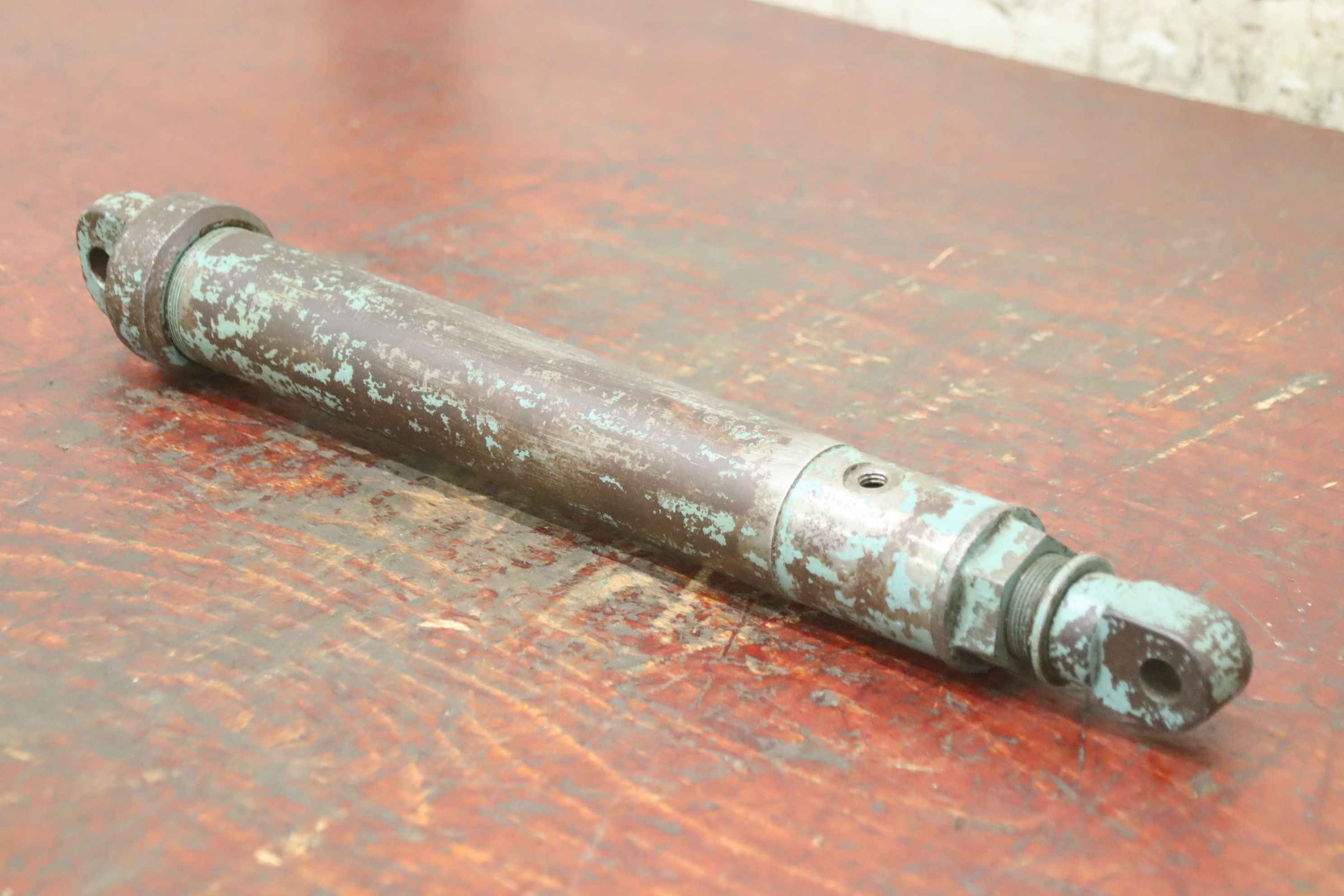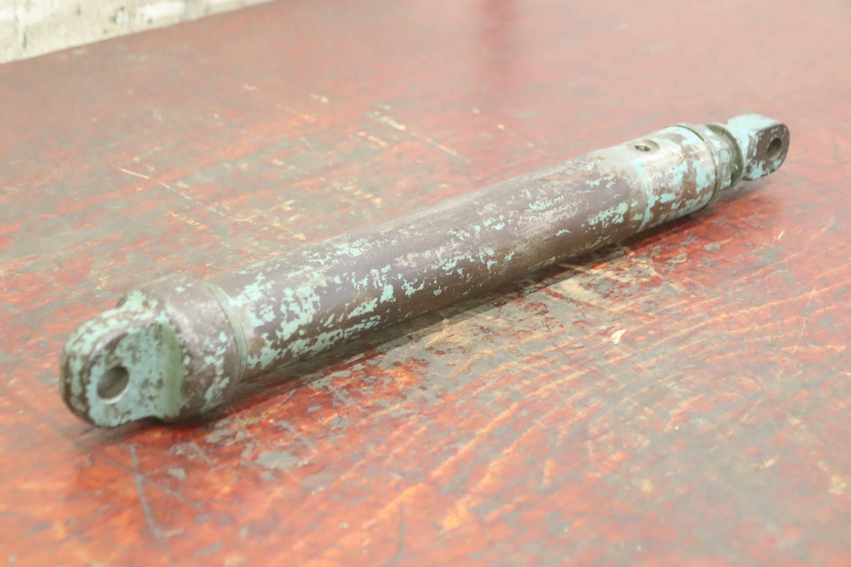 Hydraulic cylinders, support cylinders, hydraulic rams, pressure rams-Hydraulic cylinder: single-acting stroke 110 mm-Type: unfortunately without type designation-Piston rod: Ø 18 mm-Hole: Ø 13/16 mm / Distance: retracted 470 mm-Dimensions: Ø 65 x 500 mm-Weight: 5.1 kg
