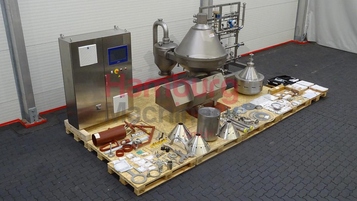 Milk / Whey clarification separator (Clarifier). Self cleaning. Machine comes with the bowl, motor (36 kW - 230 V - 114 A - 1.775 rpm - 60 Hz - 3 Ph), motor cover, base plate with feet and service tools for maintenance. Heavy liquid: 1.0 kg/dm3 and solids: 1.1 kg/dm3., Addtional features:, Excluding:, - Water valves., - Control panel., Type of Machine: Clarifier, Capacity milk: 30.000 liter per hour, Capacity whey: 25.000 liter per hour, Bowl speed: 5.920 rpm, Motor power: 36 kW - 230 V - 114 A - 1.775 rpm - 60 Hz - 3 Ph, Weight: 1.950 kg, Dimensions: 195 x 112 x 170 cm