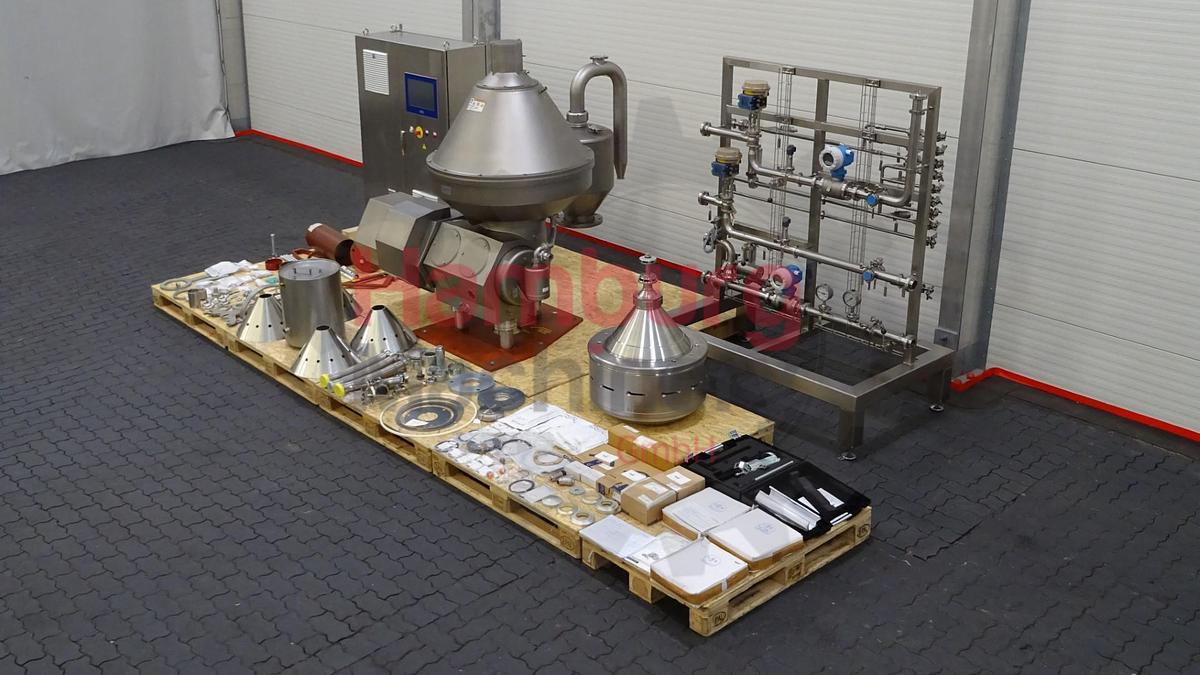 Unused Protein Application Separator. Year: 2023. Self cleaning. The Alfa Laval HBPX range is used to separate animal whole blood into two fractions; red cells haemoglobin and plasma, with the target to recover blood plasma in the best possible quality at maximized yield. Typical separation applications are fish and seafood processing, meat and poultry processing and pet food processing. Machine comes with the bowl, motor (37 kW), motor cover, baseplate / foundation plate with feet, OWMC water valve (Operating Water Module Compact), cyclone, all inlet / outlet pipes with pumps, service tools with pressing tool for maintenance, control panel with Siemens Simatic S7-1500 PLC + Touch Screen user-friendly HMI to monitor and control the separation process parameters, big set of commissioning spares with 4x extra discs and all manuals. Including process & service liquid unit, mounted on a sepa ...
