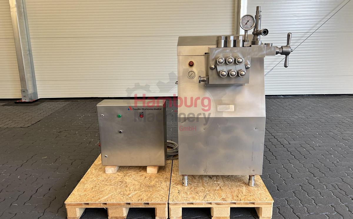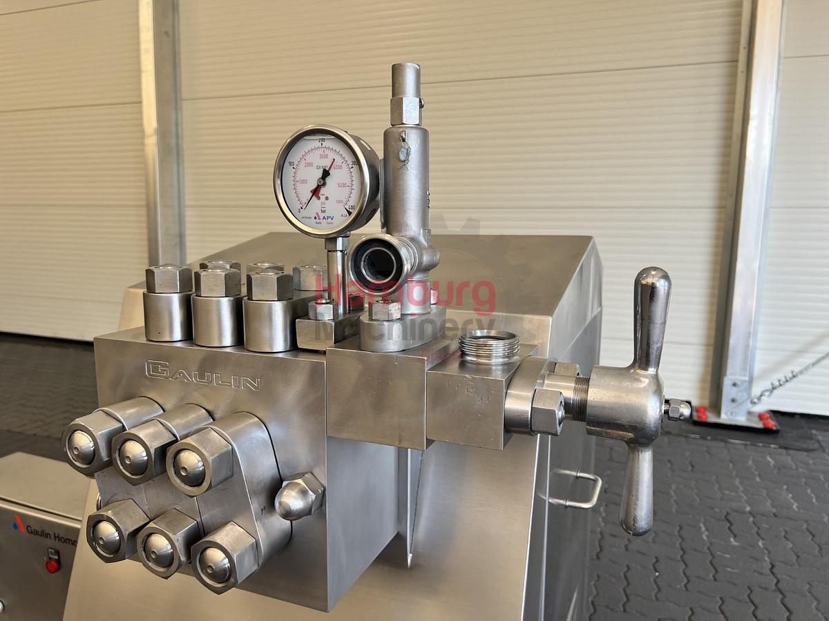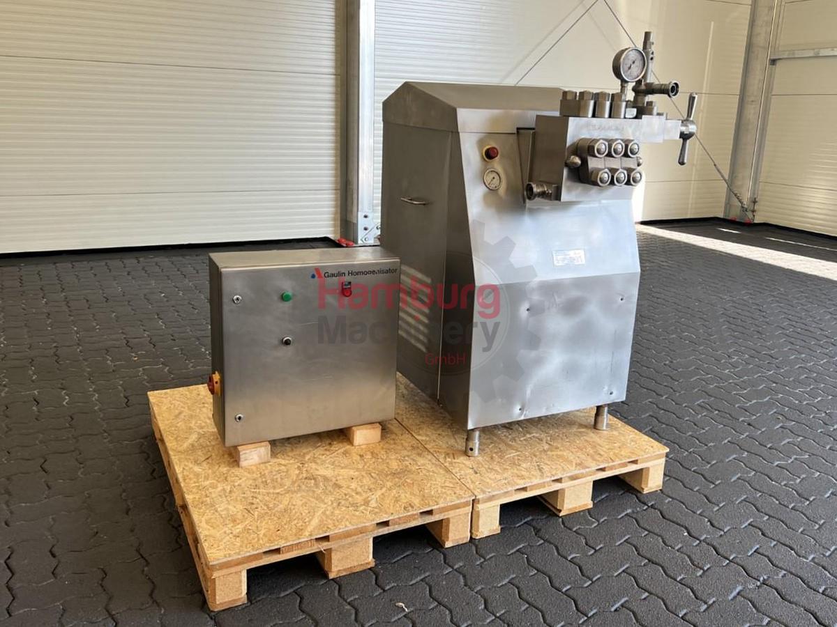 This APV Gaulin 159 MC4-5TBS homogeniser is a 3-cylinder machine which is designed for 300 / 600 liter per hour with a maximum pressure of 250 bar. The homogensier is equipped with 1-stage with ball valve cylinder, manual controlled. Manometer. Overpressure valve. Motor: 7,5 kW - 380 V - 16 Amp - 50 Hz - 1.440 rpm. Oil pumping system inside the machine. Stainless steel cladded. Including simple free standing control panel., Type of Machine: Homogeniser, Capacity: 300 / 600 liter per hour, Stages: 1 Stage, Max. Pressure: 250 bar, Valve cylinder: Ball valves, Product: Cream / Cream cheese, Piston diameter: 24 mm, Motor: 7,5 kW - 380 V - 16 Amp - 50 Hz - 1.440 rpm, Dimensions: 120 x 80 x 165 cm, Weight: 800 kg