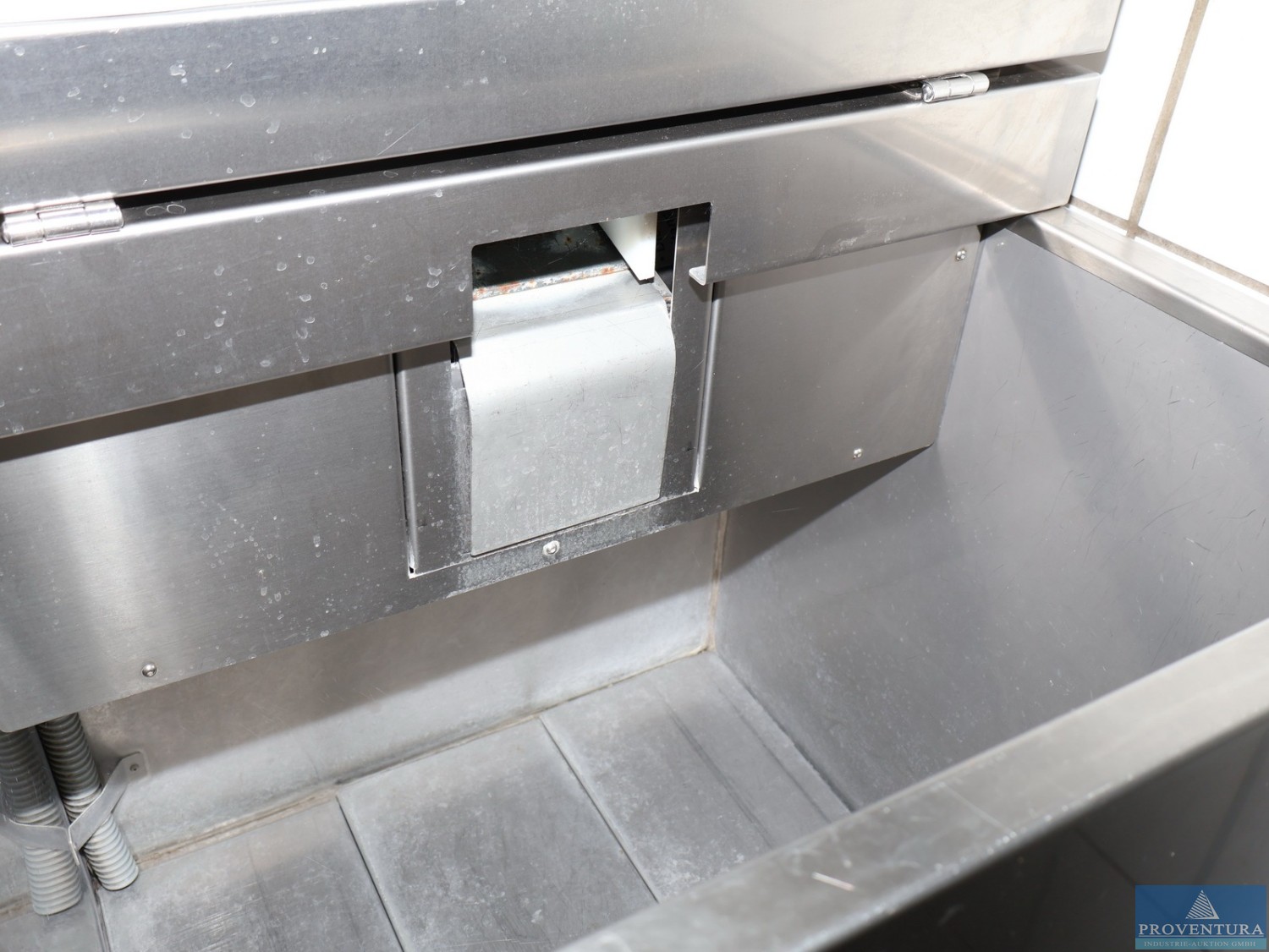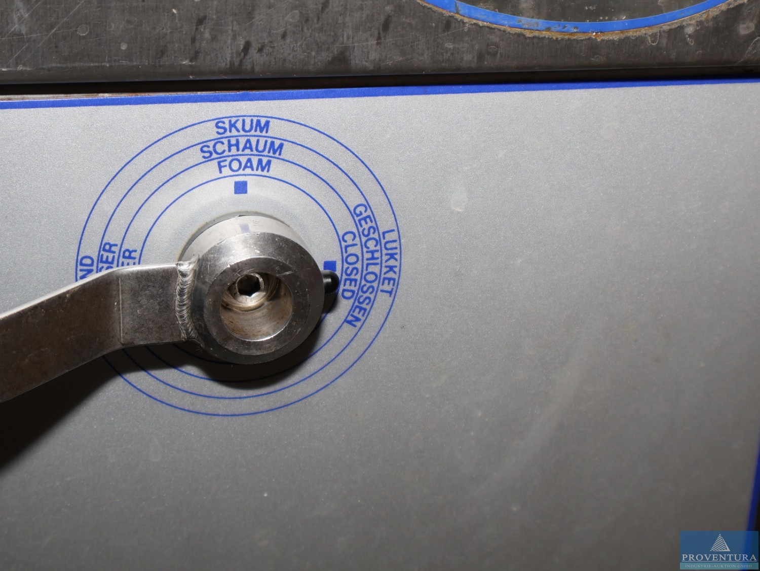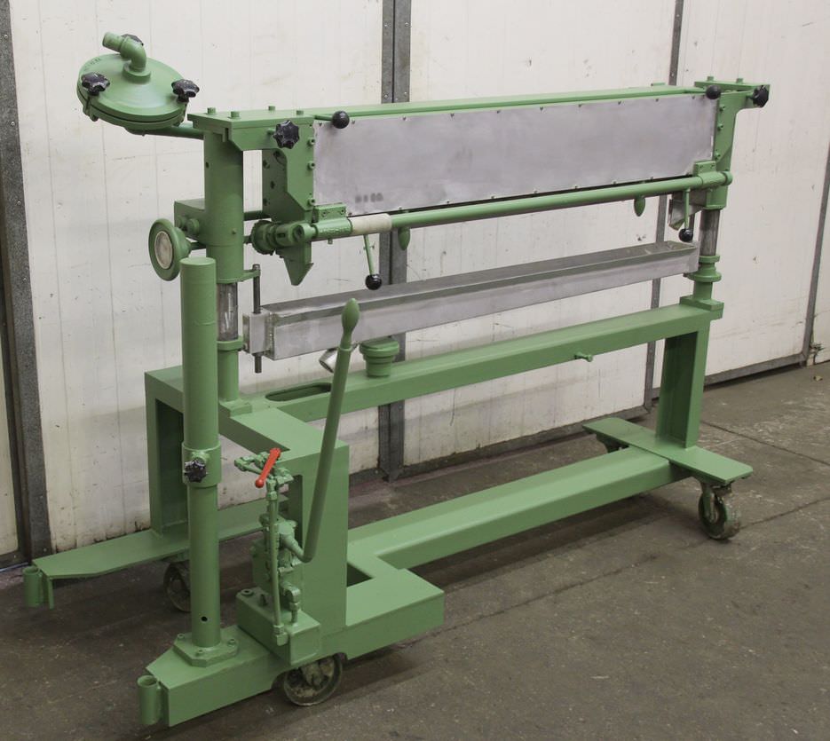 Paint casting machine, paint casting station -Paint casting machine Manufacturer: Bürkle -Max. pouring width: 1290 mm -Adjustable pouring gap: via handwheel with indicator -hydraulically: height adjustable -without: paint pump -Dimensions: 2100/800/H1450 mm -Weight: 386 kg