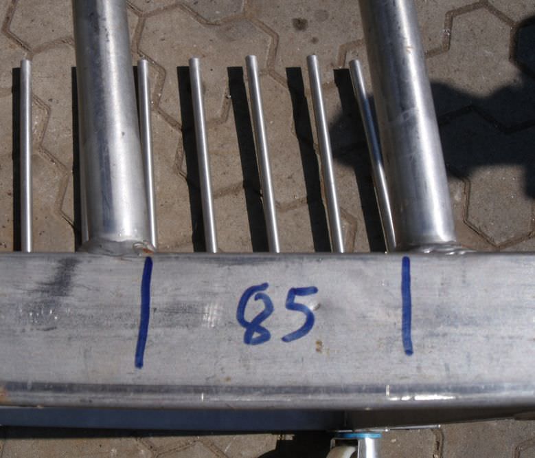 Hoe, transport wagon -Material: entirely made of 4301 stainless steel -Dimensions: 1100/1000/H780 mm -Intermediate dimension: 85 mm -Weight: 41 kg