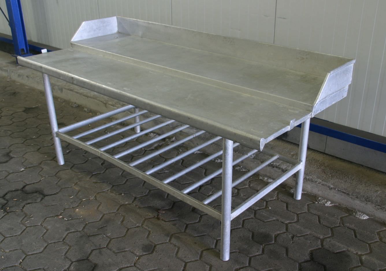 Aluminum table, aluminum work table -made of aluminium -1x ground floor -Border -Feet: adjustable -Dimensions: 2020/900/H960 mm -Weight: 30 kg