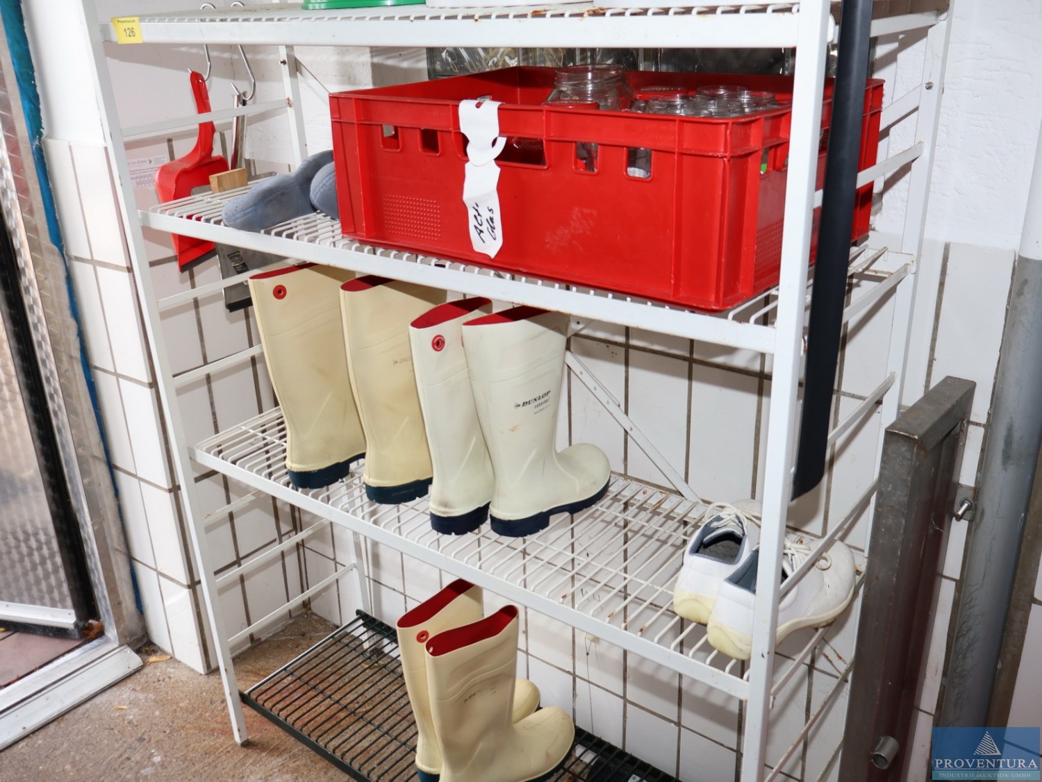 Жестяная полка примерно 120x160x40 см, 3 пары сапог, очк