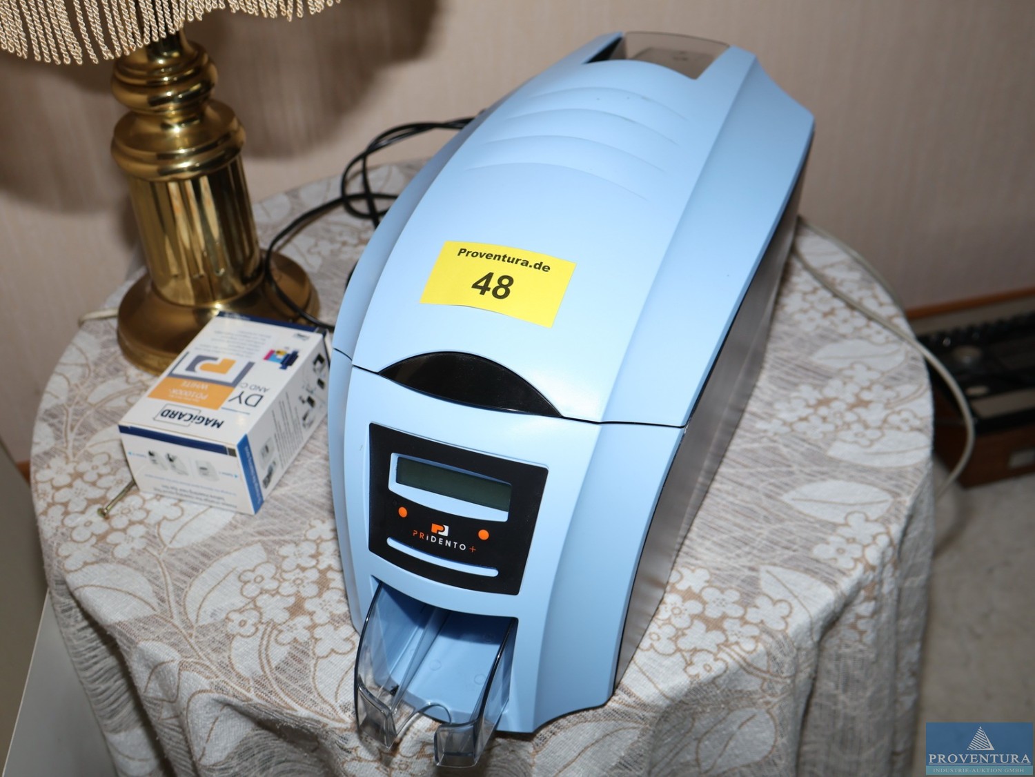 Картонный принтер PRIDENTO Magicard, номерный номер 67F3254, приобретён в 2018 году за 1 199 евро нетто, чёрная жизнь 31.08.25 99 евро нетт