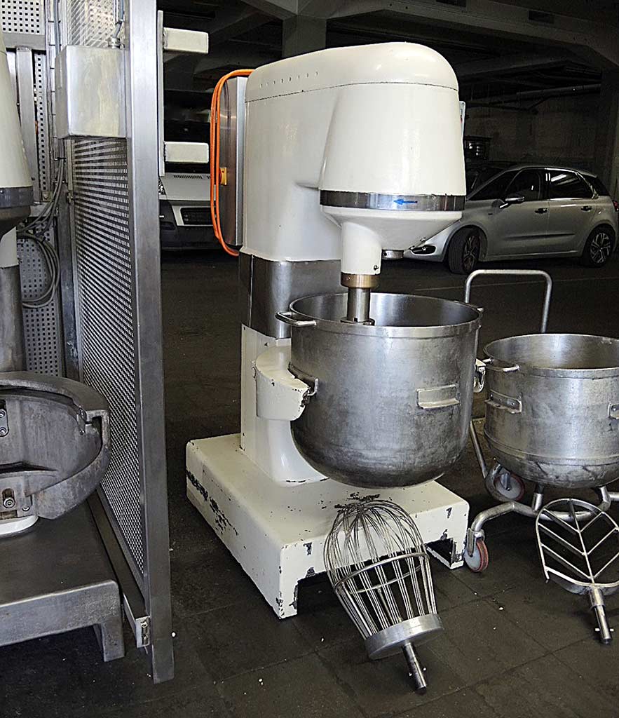 Доступны два одинаковых планетарных миксера Artofex с общим числом 7 чаш для смешивания. Ёмкость помешивания: 100л, объём контейнера: 100л/120л, размеры машины X/Y/Z: примерно 800 мм/1550 мм/2250 мм, вес: примерно 1350 кг. Включая тележки с 6 чашами, массовые венчики, венчики, лезвия для мешителей использовались и новые. Капитальный ремонт машины: электротехника в 2021 году, механика в 2024 и замена масла. Осмотр на месте возможен.