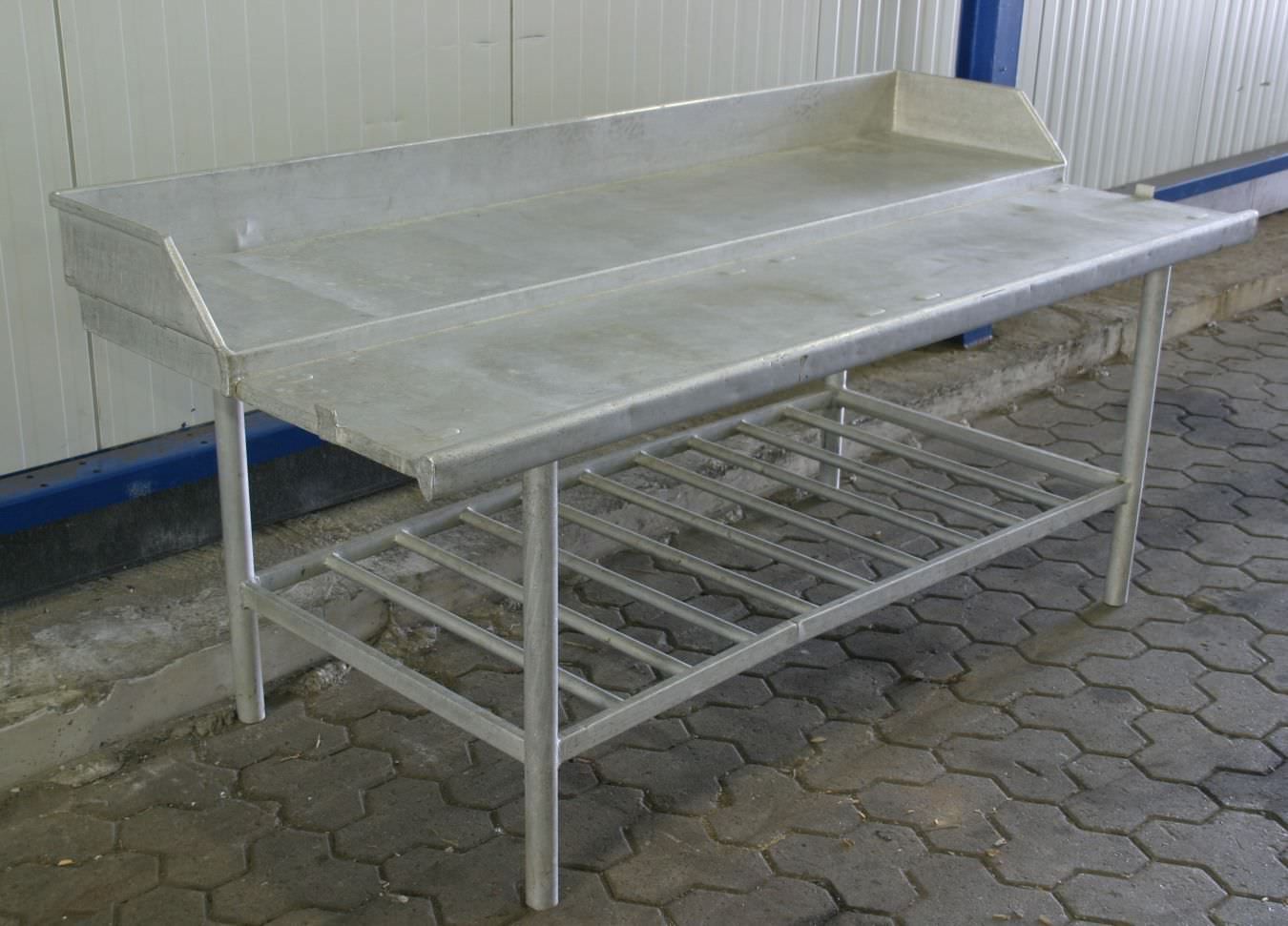 Алюминиевый стол, алюминиевый рабочий стол -изготовлен из: алюминий -1x базовая полка -Бордюр -Ножки: регулируемые -Размеры: 2020/900/H960 мм -Вес: 30 к