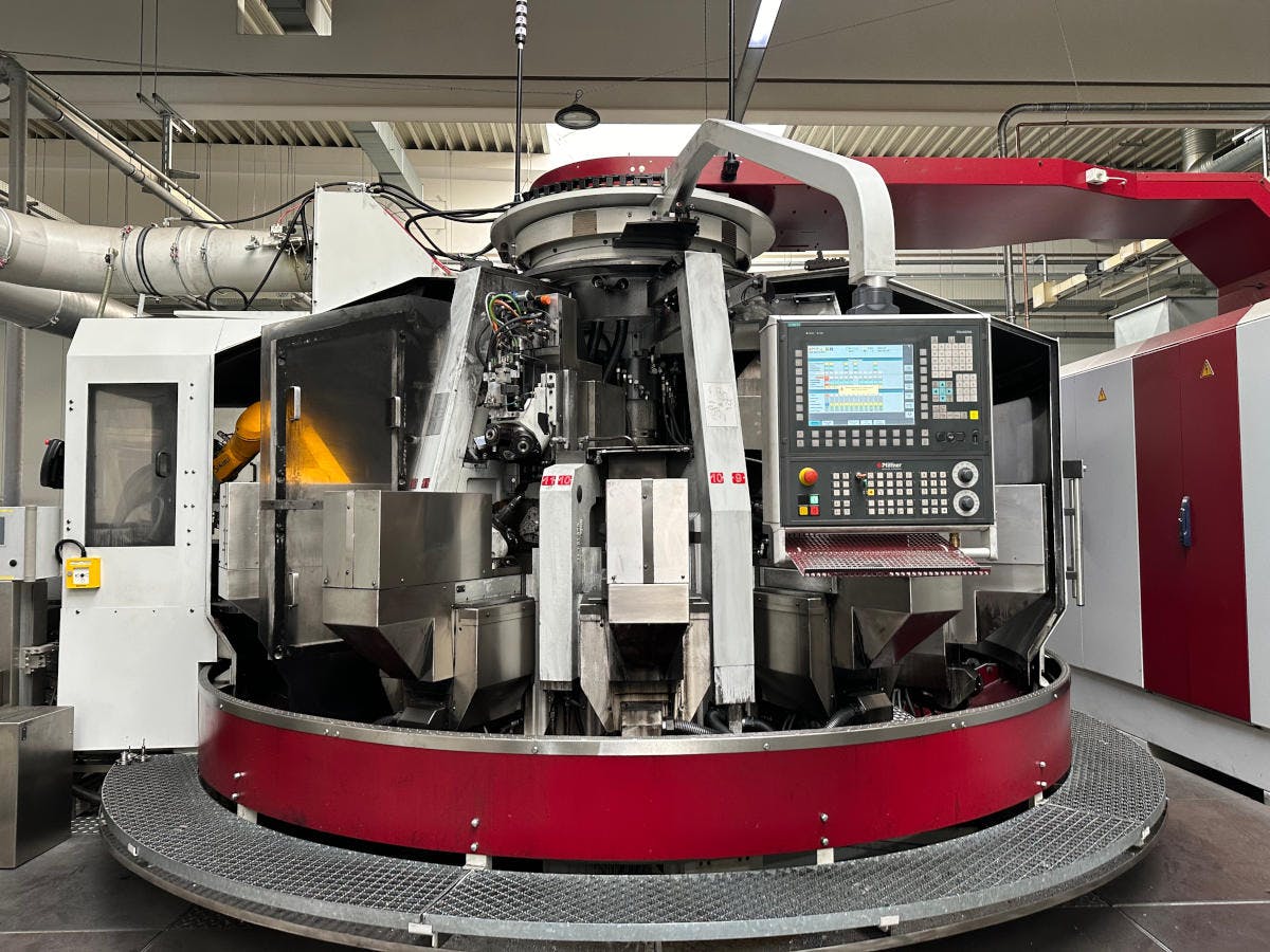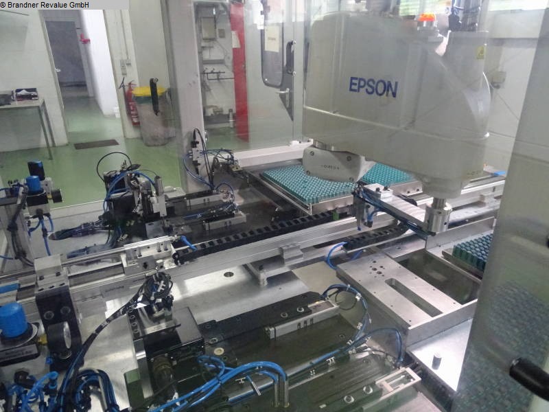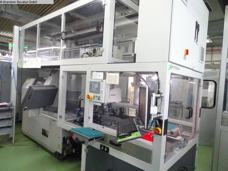 Pfiffner RT 100-12Year of manuf. : 2013 Control : Siemens 840 D ____________Description:Rotary-Indexing-table/Spindle:Clamping stations:12 motorised spindlesDrive:Torque drive, water-cooledPosition measuring system:DirectSwitching time:1.5 secondsSpindles:Water-cooled motor spindlesC-axes:0.001°, hydraulic clampingSpeed:5,500 rpmPower:11 kWClamping device:ChuckBasic modules:Technology:Positioning module, 3-axisX-axis:50 mmY-axis:100 mmZ-axis:100 mmPosition measuring systems:Direct in all axesCoolant supply:Integrated::Workpiece size (max.):100 x 100 x 100 mmStation 1:Horizontal:feeding of raw parts (indexing conveyor + Stäubli robot)Vertical:Measuring raw partStation 2:Horizontal:4-fold turret without driveVertical:Measuring reclamping error (C-axis zeroing)Station 3:Horizontal:4-fold turret without driveVertical:Not usedStation 4:Horizontal:4-fold turret without driveVertical: ...