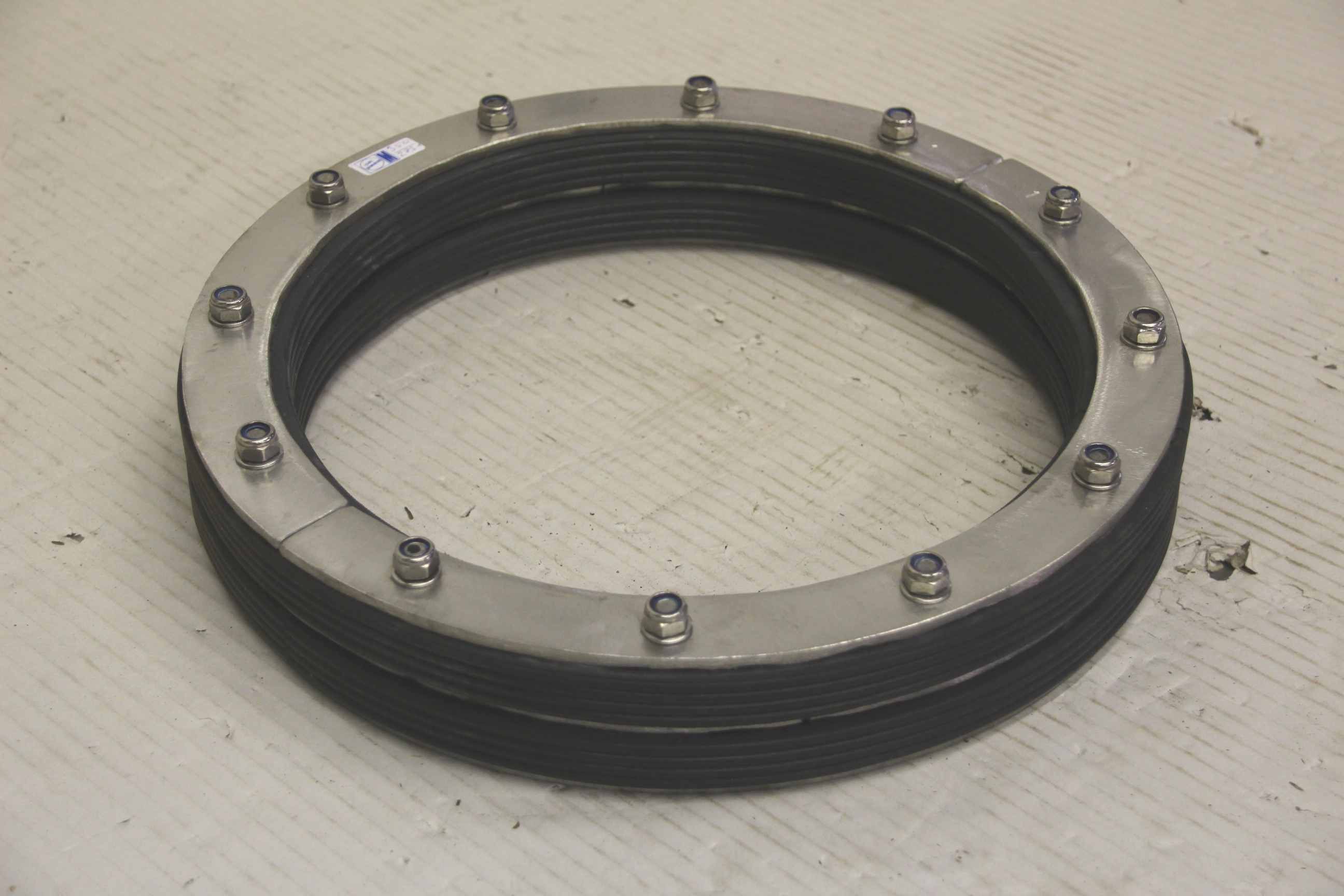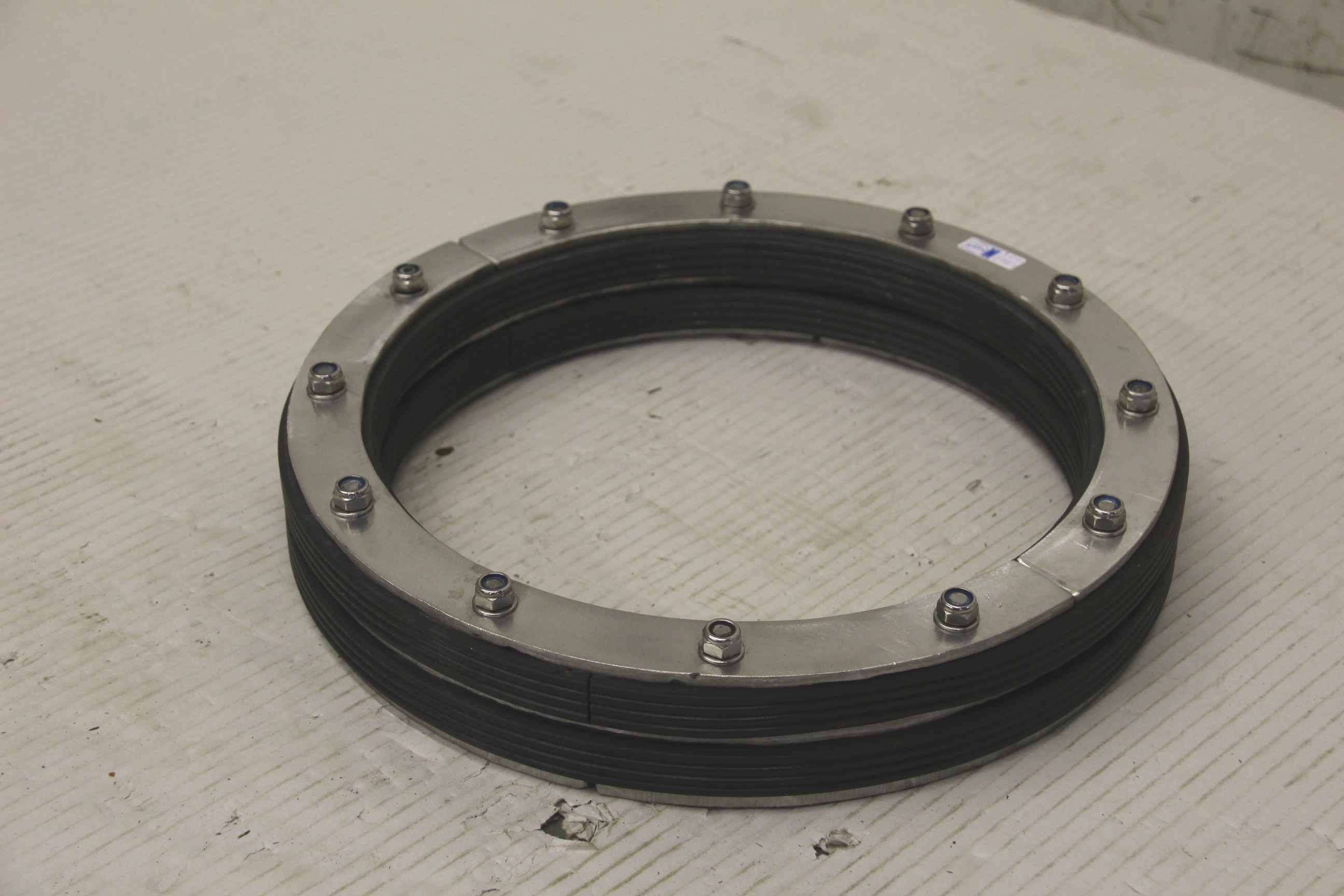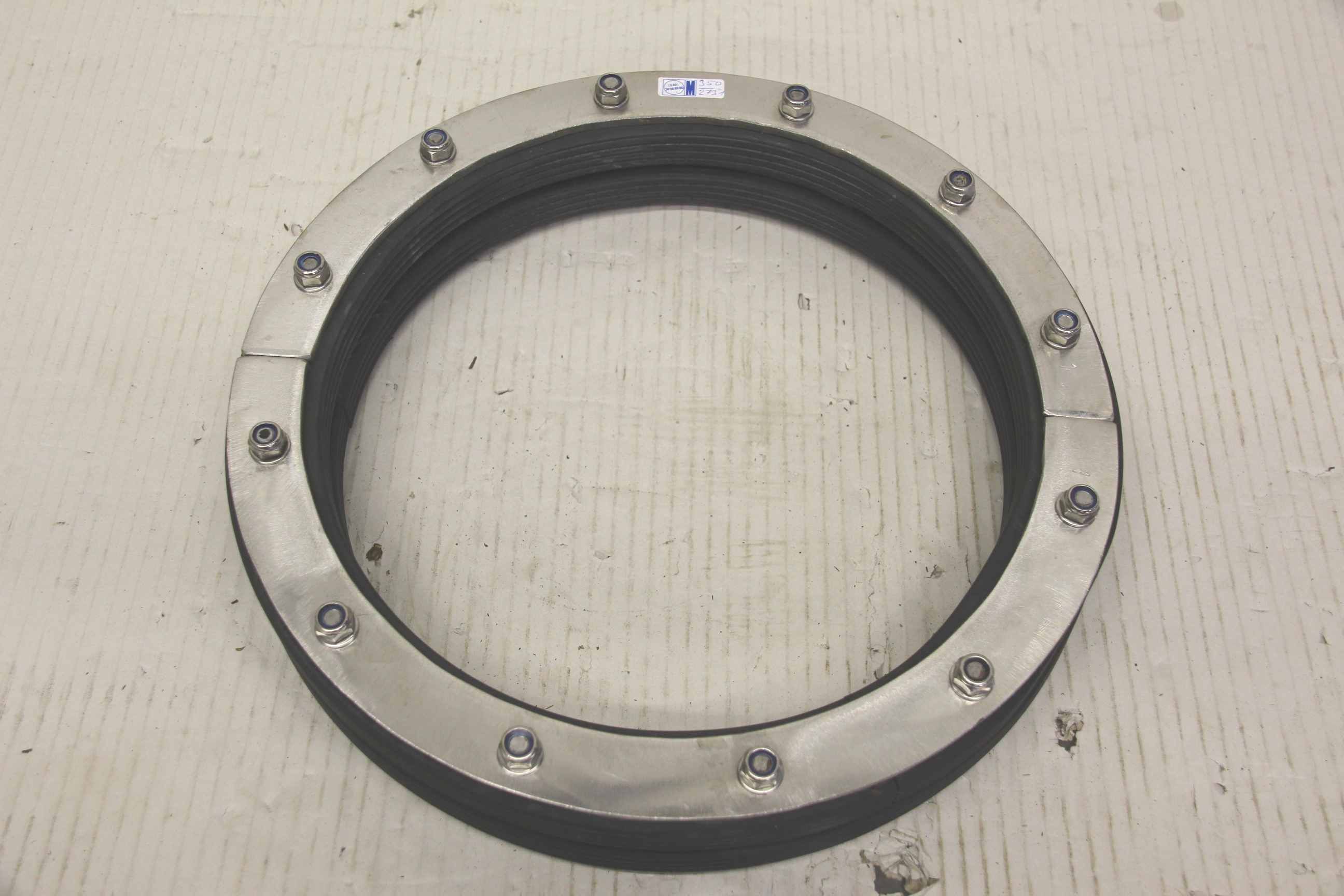 Pipe sealing cushion, leak sealing cushion, sealing plate, pipe sealing, penetration sealing -Pipe sealing cushions -Outer diameter: 325 mm -Height: 21 mm -Supply of: steel/stainless steel cover plates possible -Number: 2 pillows available -Price/Sale: complete -Total weight: 3.6 kg