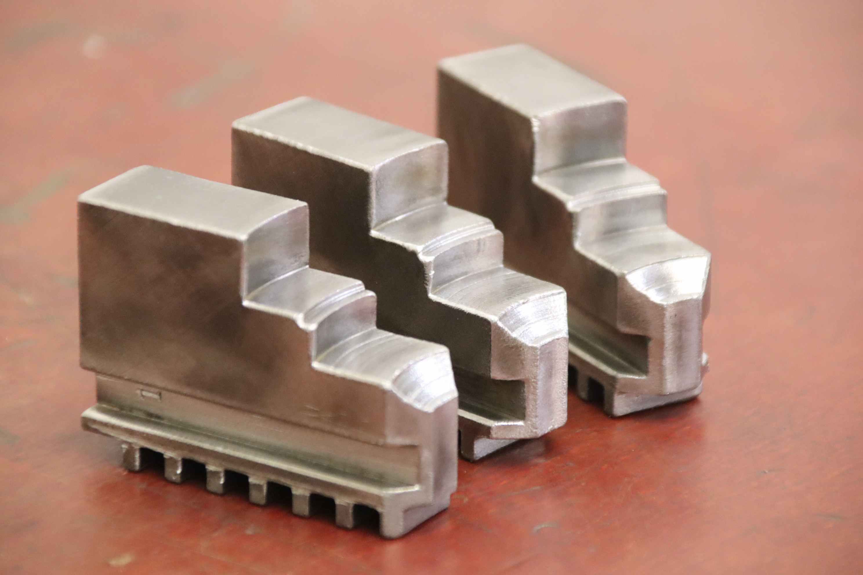 Interchangeable jaws, top jaws, three-jaw chucks, segment jaws, clamping jaws, step block jaws, step top jaws, block jaws, base jaws-Top jaws: Jaw set for three-jaw lathe chuck, soft-Jaw width: 18 mm-Dimensions: see photo technical drawing-Total dimensions: 65/55/H45 mm-Total weight: 0,8 kg