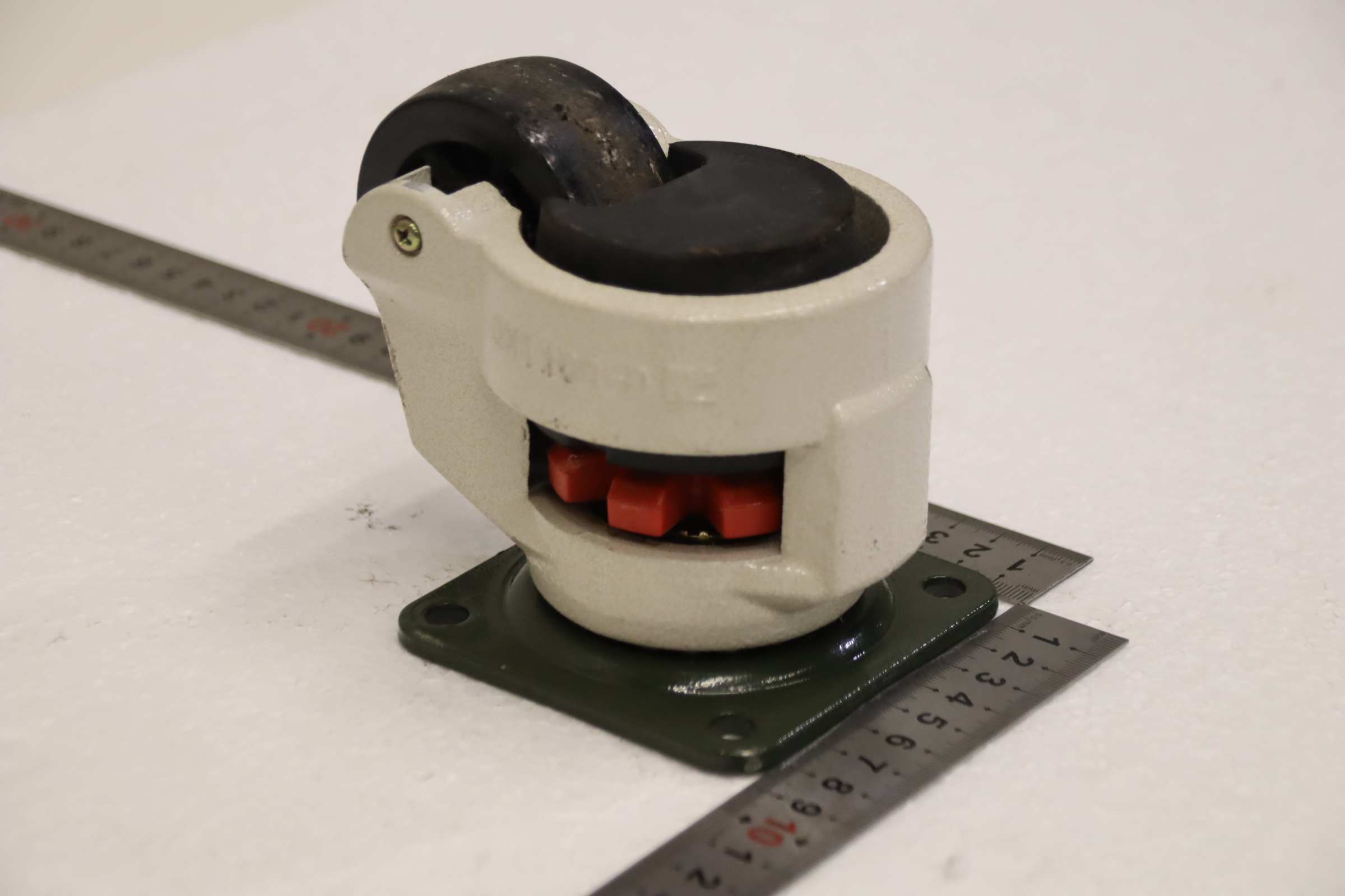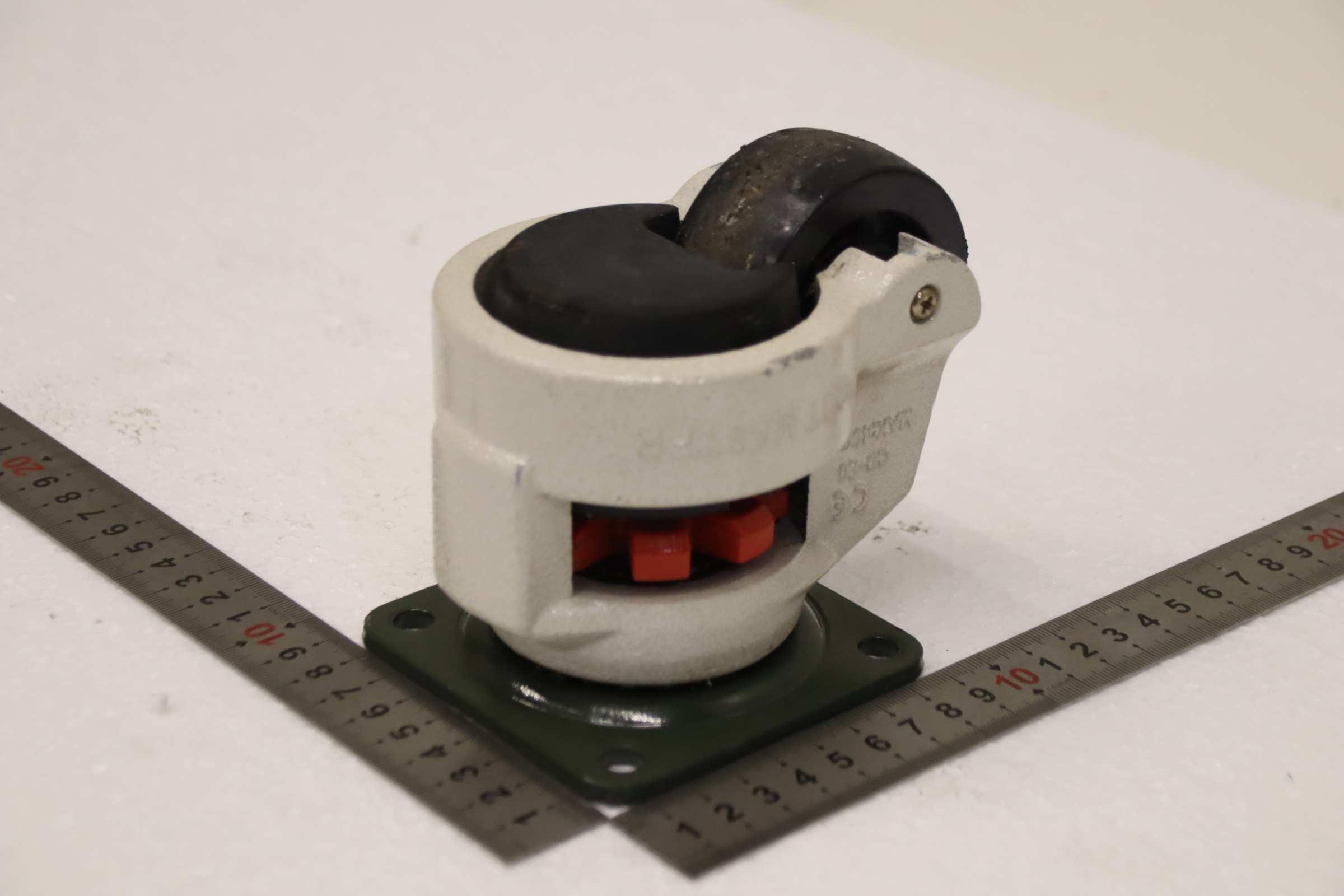 Swivel casters, leveling units, leveling elements, machine feet, machine bases, leveling shoes, machine foundations, leveling shoes, wedge shoes, machine supports, leveling feet, leveling roller feet, lifting casters, heavy-duty casters -Manufacturer: Footmaster, Lifting caster with integrated locking foot, 1 set / 4 pieces -Type: CD-80 -Load capacity: 490 kg -Roller: Ø 64 x 30 mm -Quantity: 1 set of leveling rollers available -Fee/Price: per set -Individual dimensions: 130/90/H105 mm -Weight 1.2 kg/piece