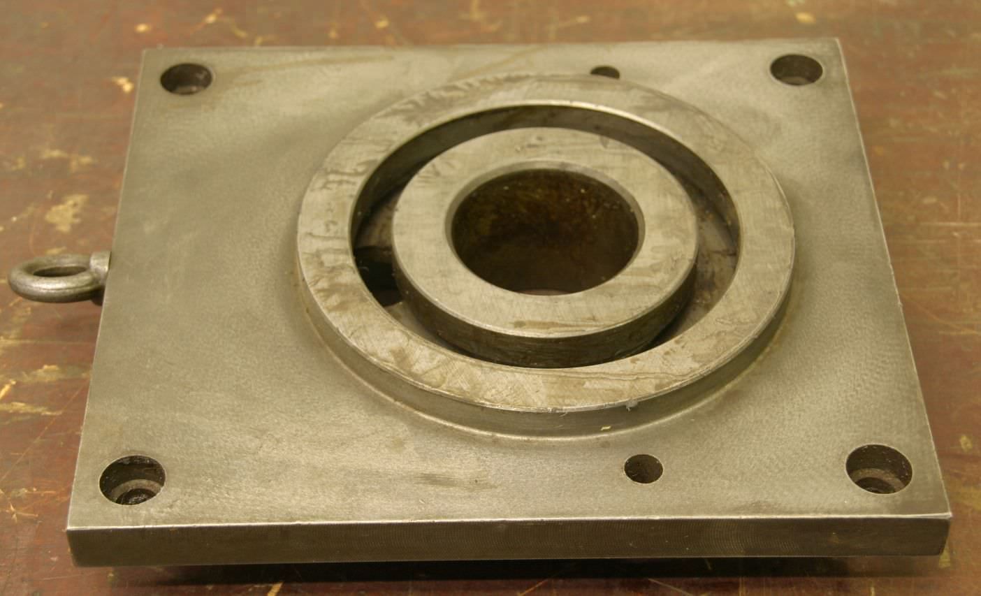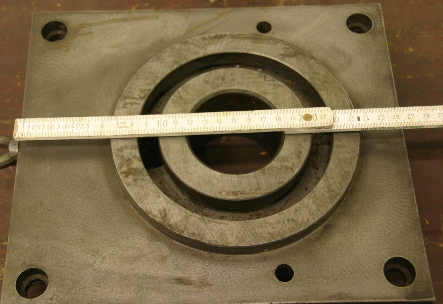 Bezel, stick, lynette -Max. Passage: Ø 107 mm -Tip height: 180 mm -Edition: gray cast iron -technical drawing with the photos -Dimensions: 370/340/H80 mm -Weight: 16 kg