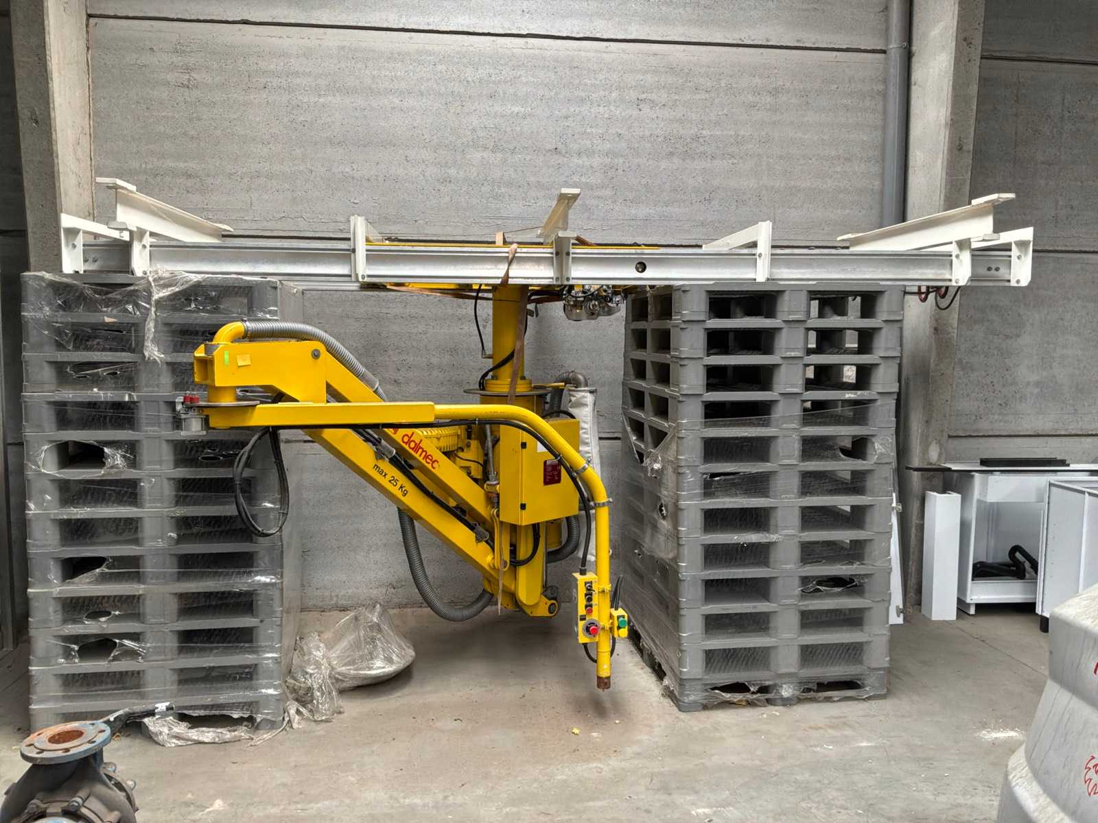 Equipped with ceiling mounting bracket, running rail 4 meters, plastic pallets included