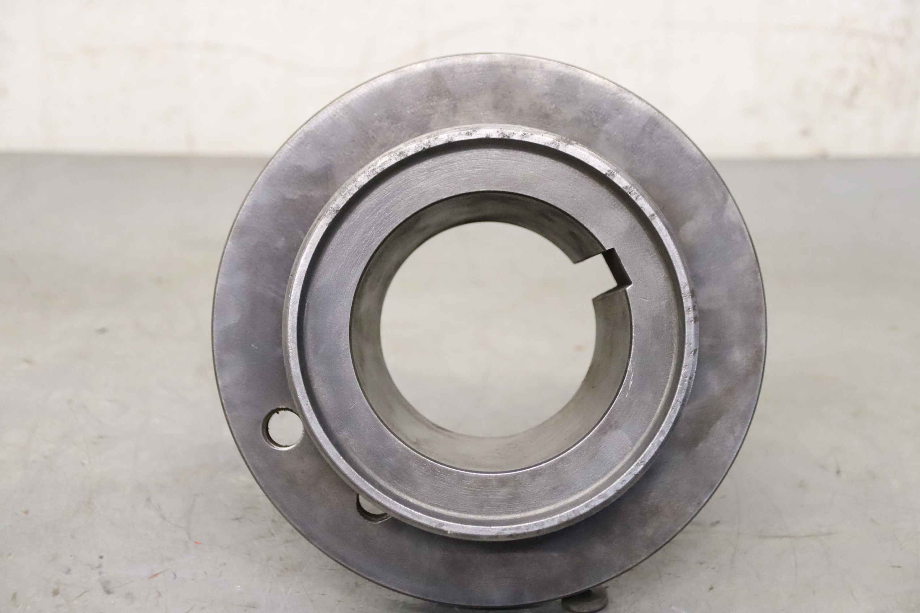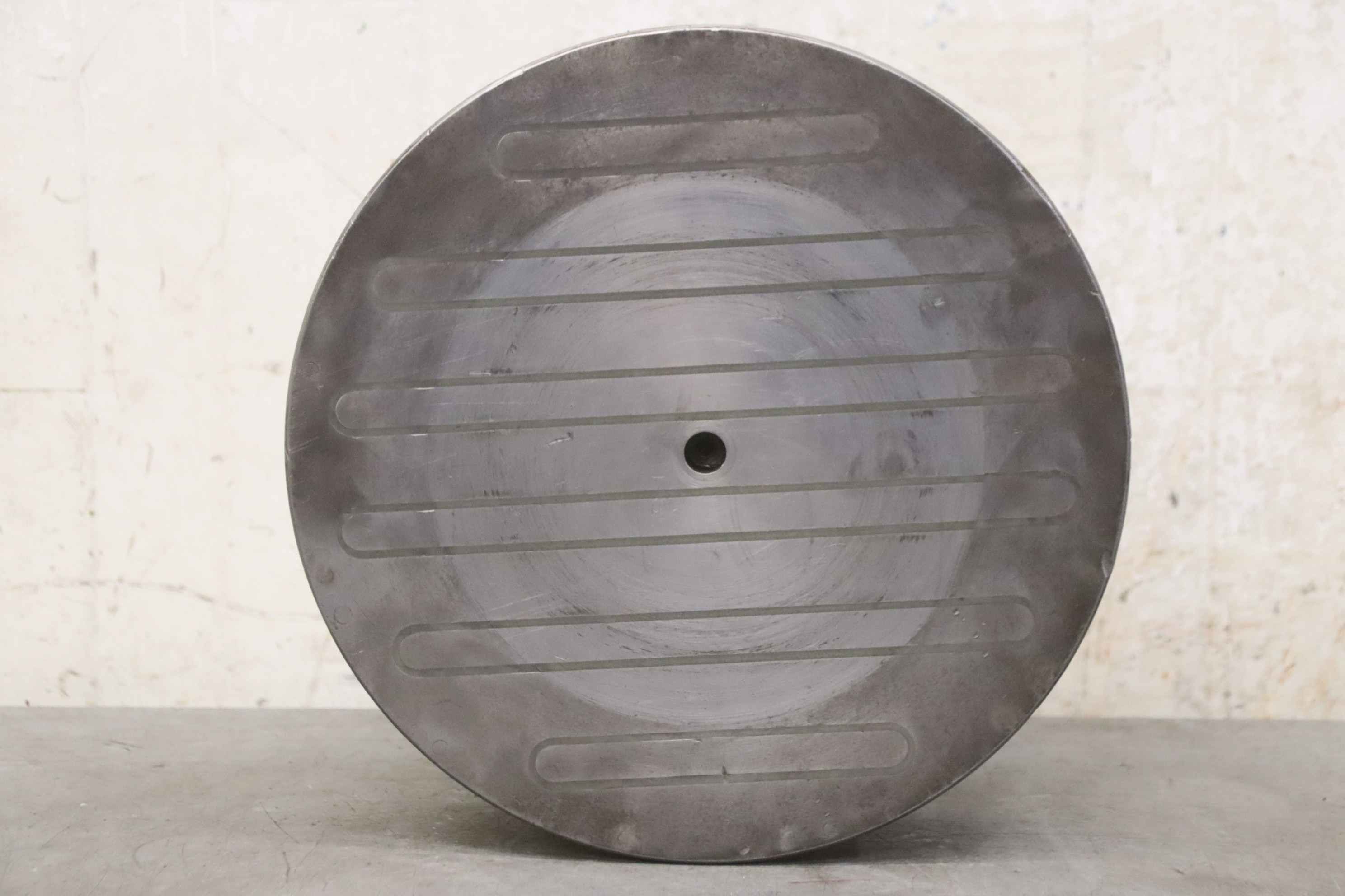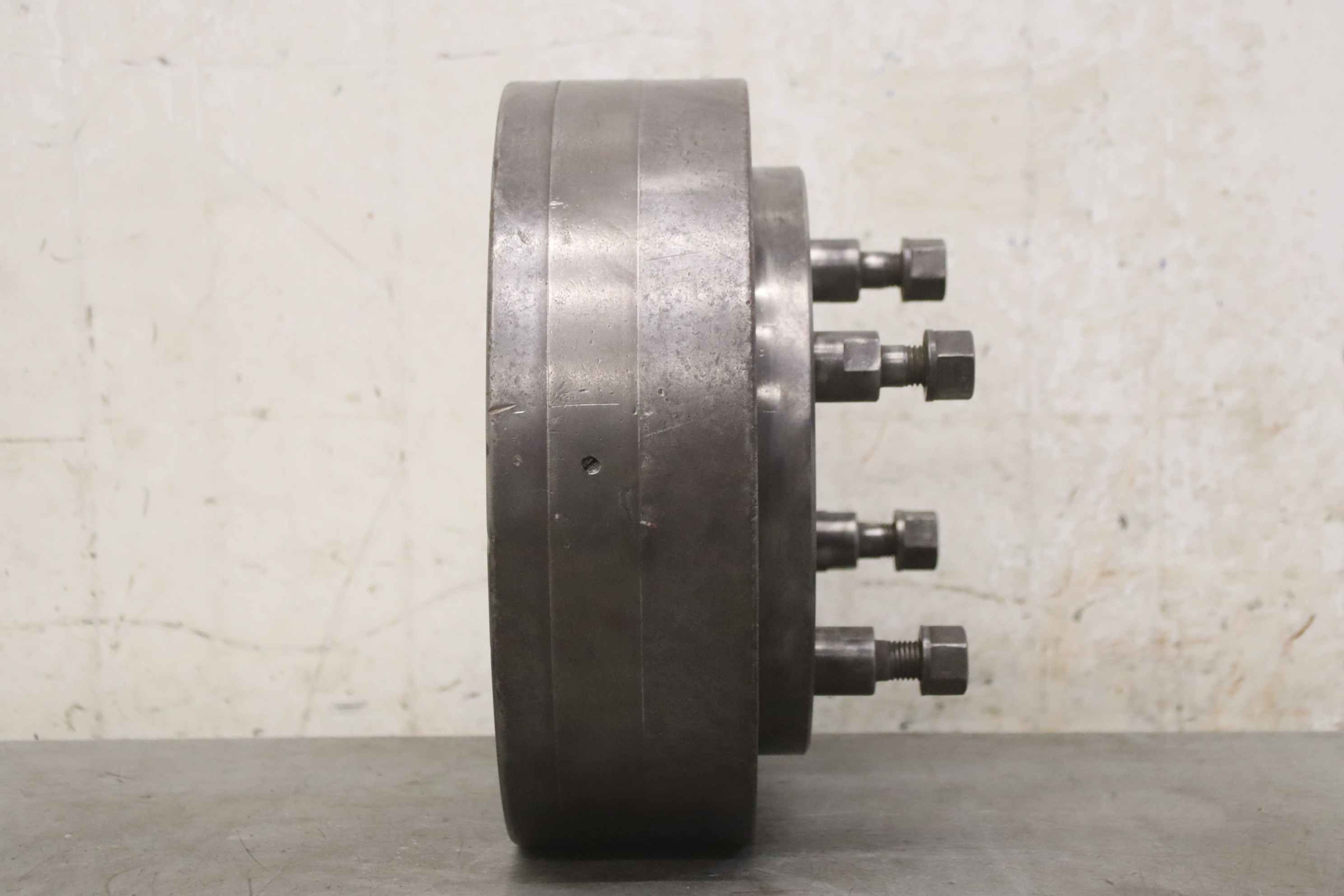 Chuck flange, flange mount, lathe chuck flange, drive flange -Feed flange with drive pin -Outer diameter: 230 mm -Mount: Thread M165 x 3 -Mounting cone: Ø 90 to 110 mm, groove 70 x 16 mm -Dimensions: Ø230 x 160 mm -Weight: 9.4 kg