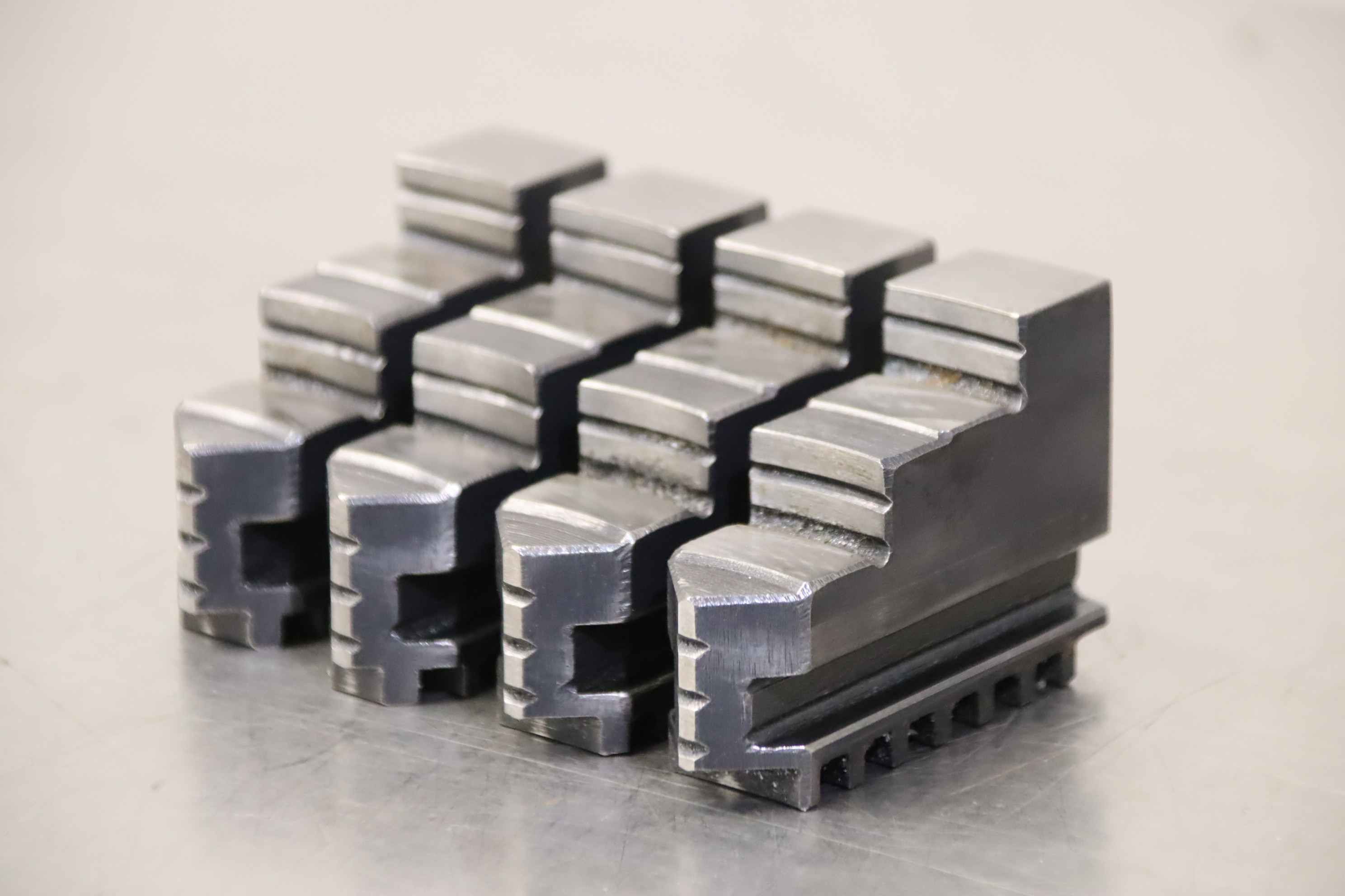 Interchangeable jaws, top jaws, three-jaw chucks, segment jaws, clamping jaws, step block jaws, step top jaws, block jaws, base jaws, 4-jaw set-Top jaws: Rotary jaw set for four-jaw chuck, hard-Jaw width: 20 mm-Dimensions: see photo techn. drawing-Total dimensions: 65/80/H45 mm-Total weight: 1.2 kg