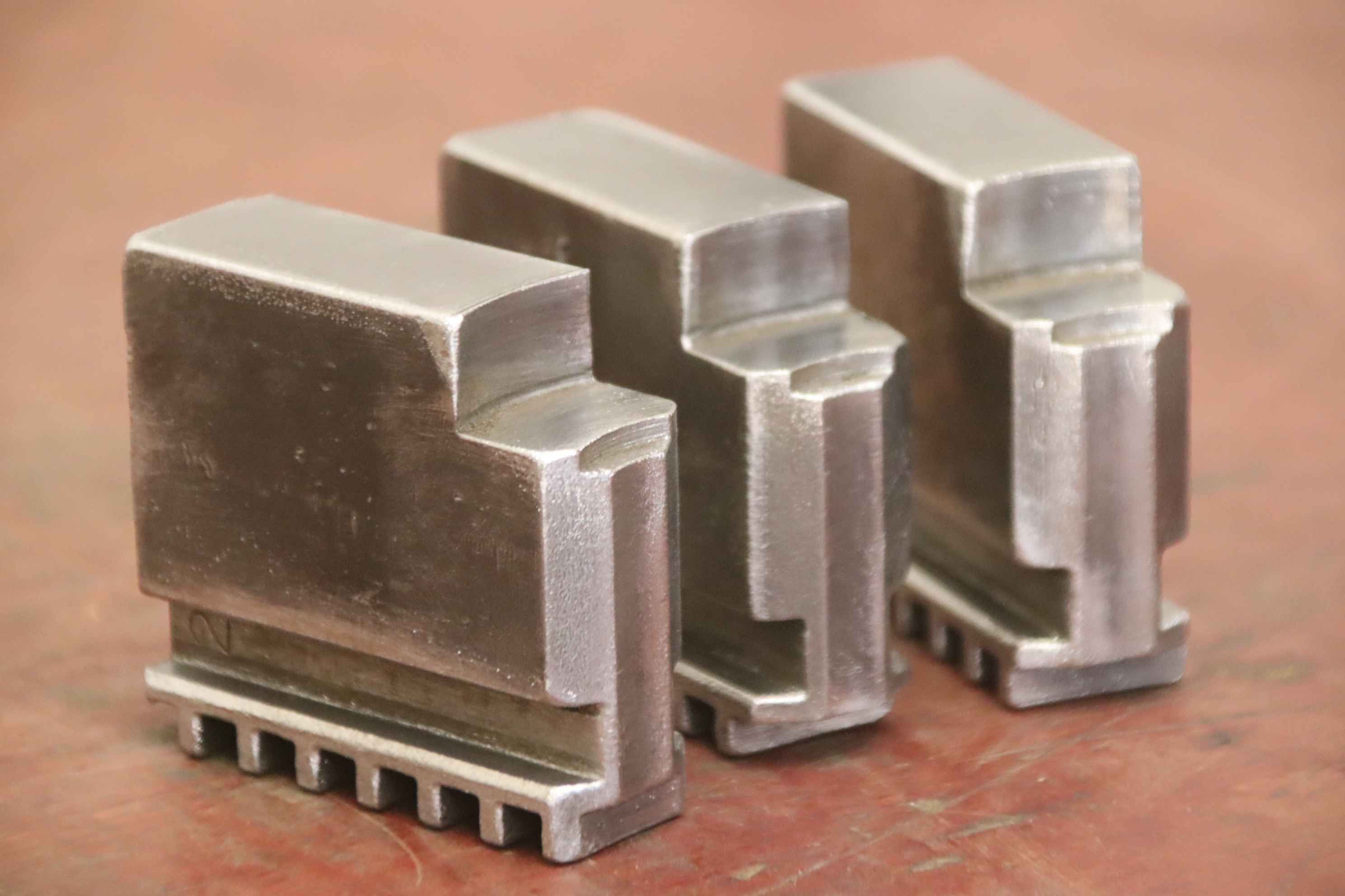 Interchangeable jaws, top jaws, three-jaw chucks, segment jaws, clamping jaws, step block jaws, step top jaws, block jaws, base jaws-Top jaws: Jaw set for three-jaw lathe chuck, soft-Jaw width: 20 mm-Dimensions: see photo technical drawing-Total dimensions: 60/60/H55 mm-Total weight: 1.2 kg
