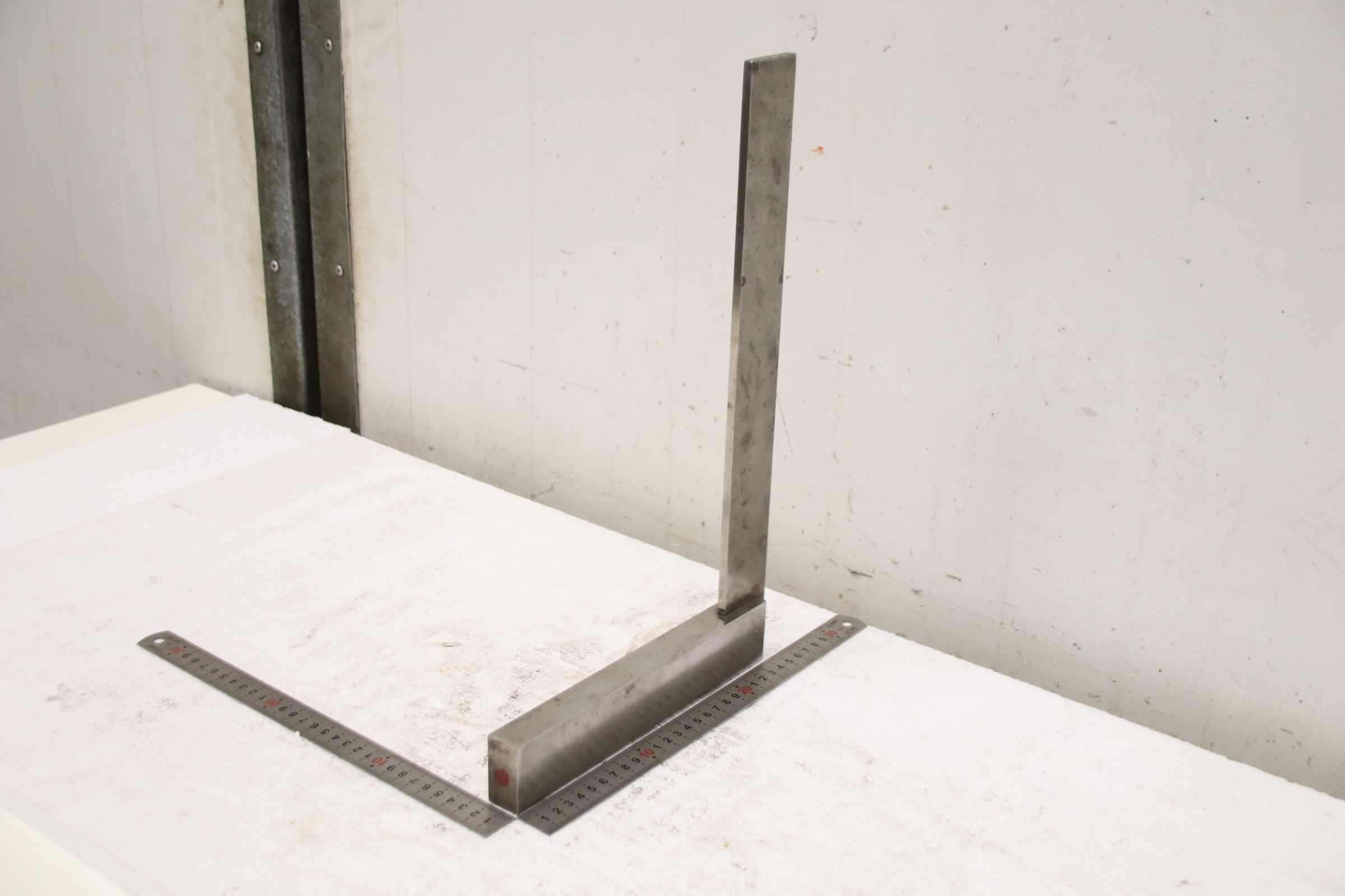 Stop square, locksmith square, control square -Angle stop: Leg length 355 x 250 mm -Quantity: 3x angle brackets available -Price: per piece -Dimensions: 400/250/H25 mm -Weight: 2.7 kg/pc.