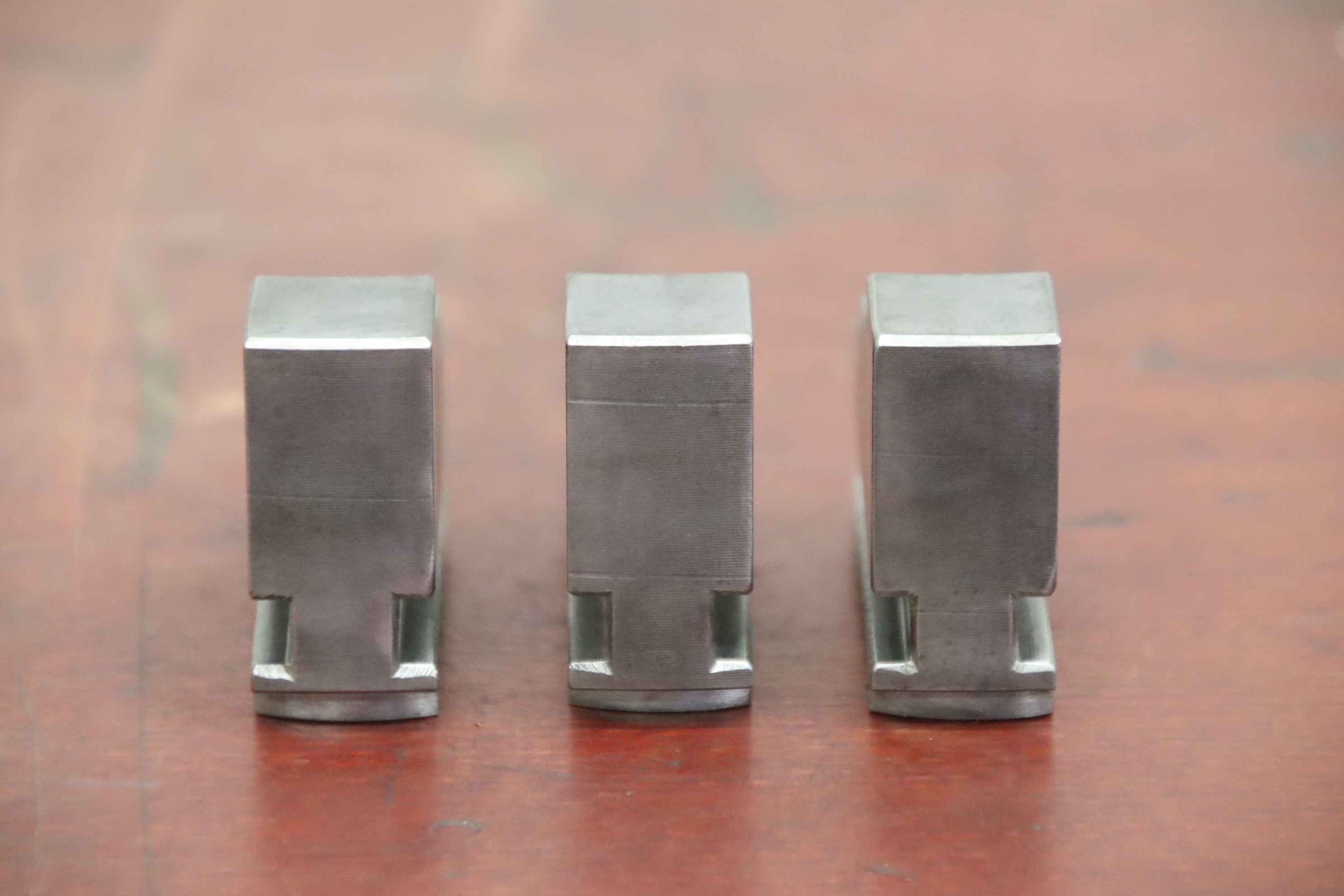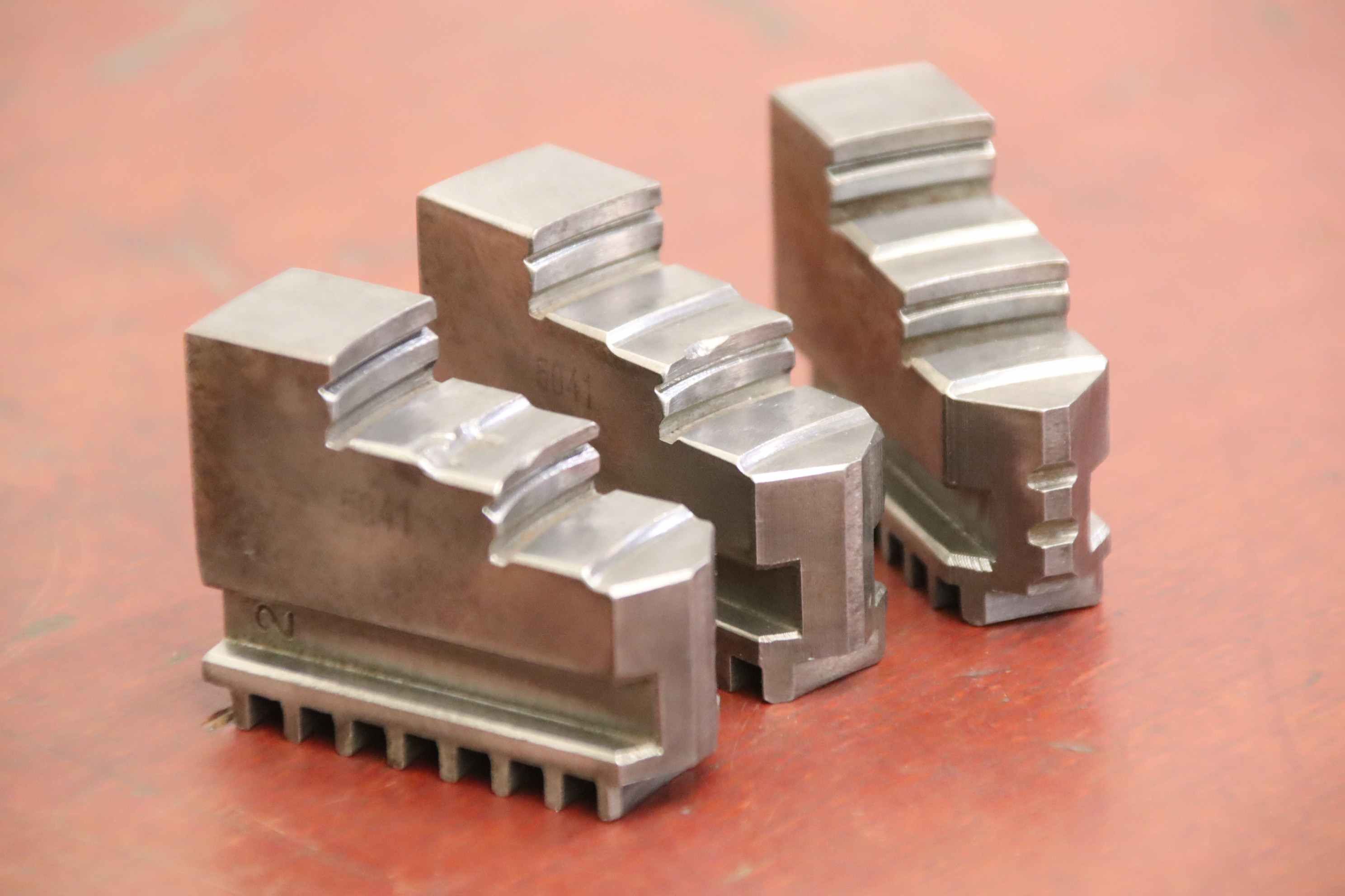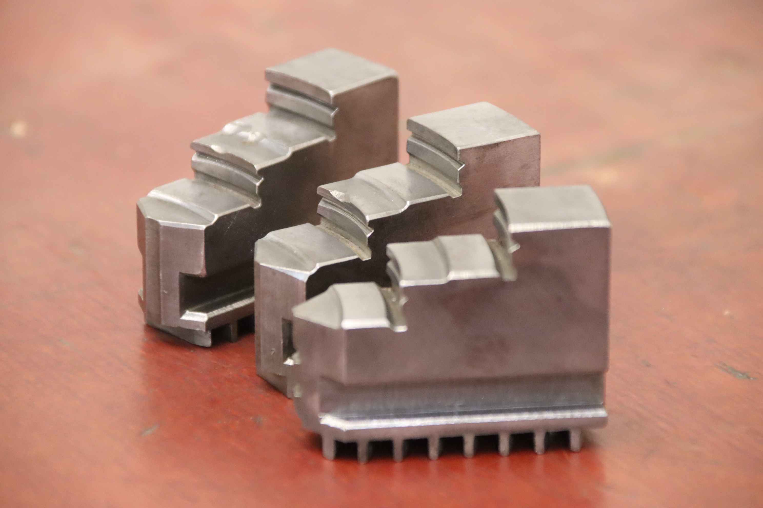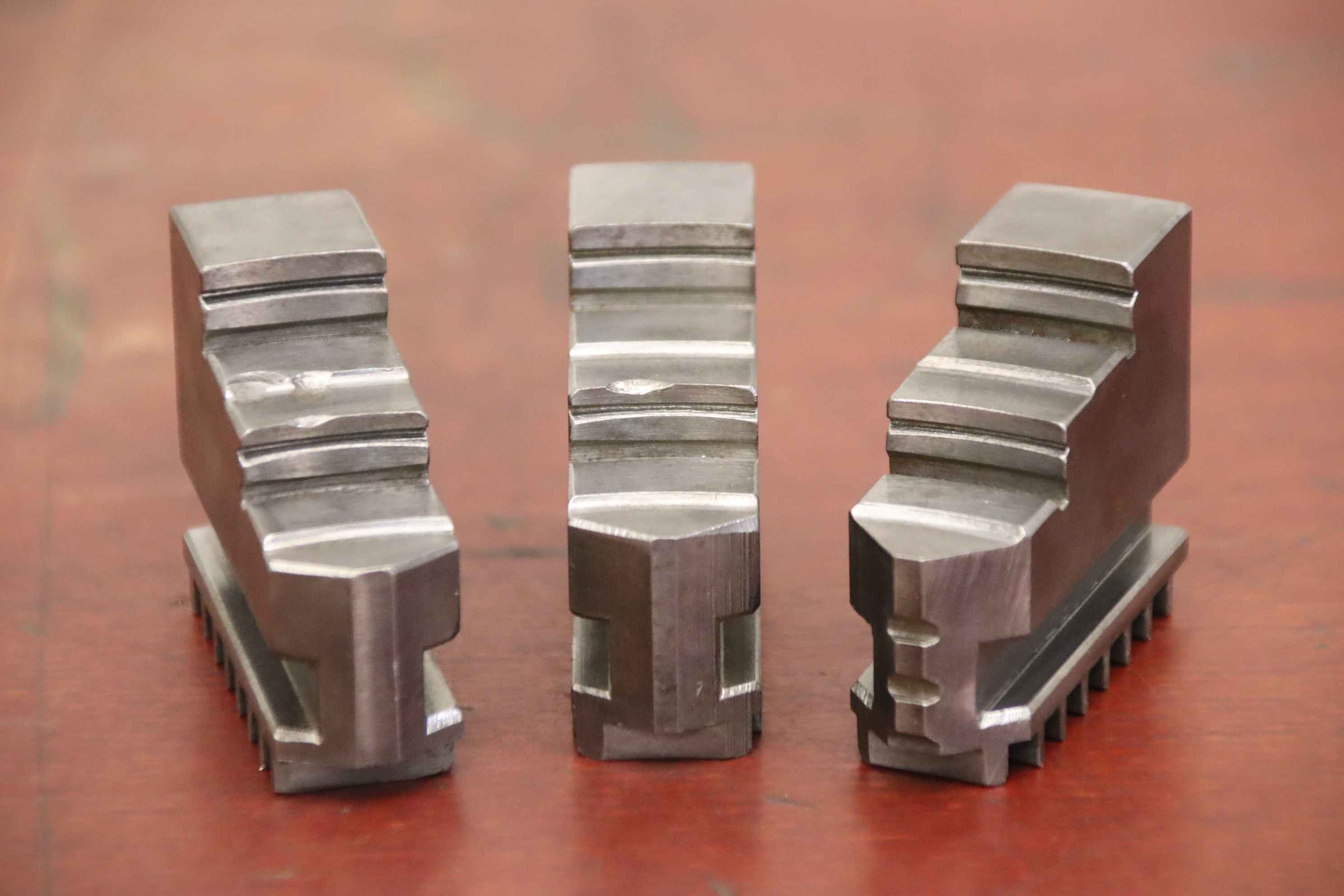 Interchangeable jaws, top jaws, three-jaw chucks, segment jaws, clamping jaws, step block jaws, step top jaws, block jaws, base jaws, interchangeable jaws, wedge bar chucks, interchangeable jaws power chucks-Top jaws: soft top jaws for wedge bar chucks, helical teeth-Jaw width: 22 mm-Dimensions: see photo technical. drawing-Total dimensions: 100/65/H75 mm-Total weight: 2.9 kg
