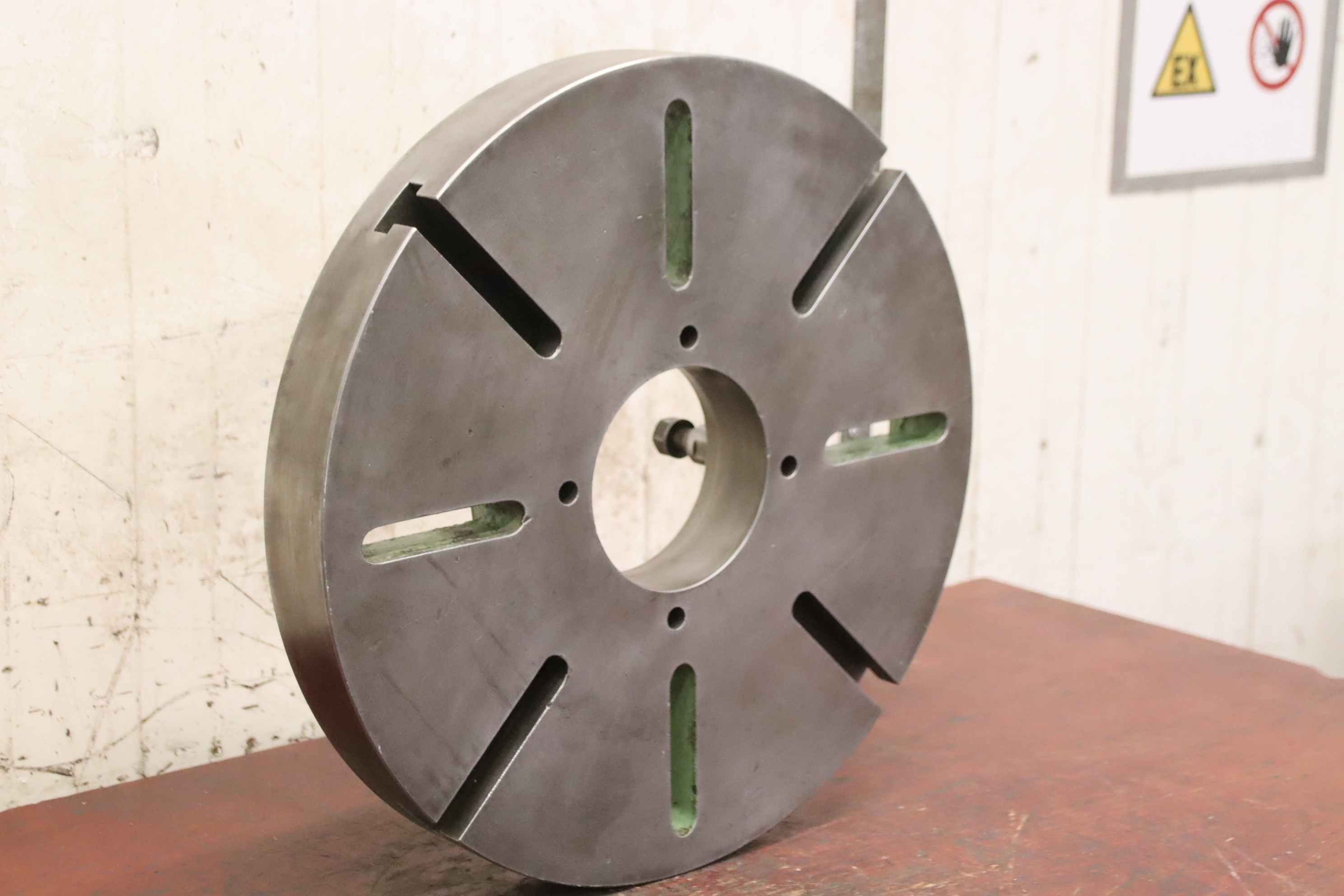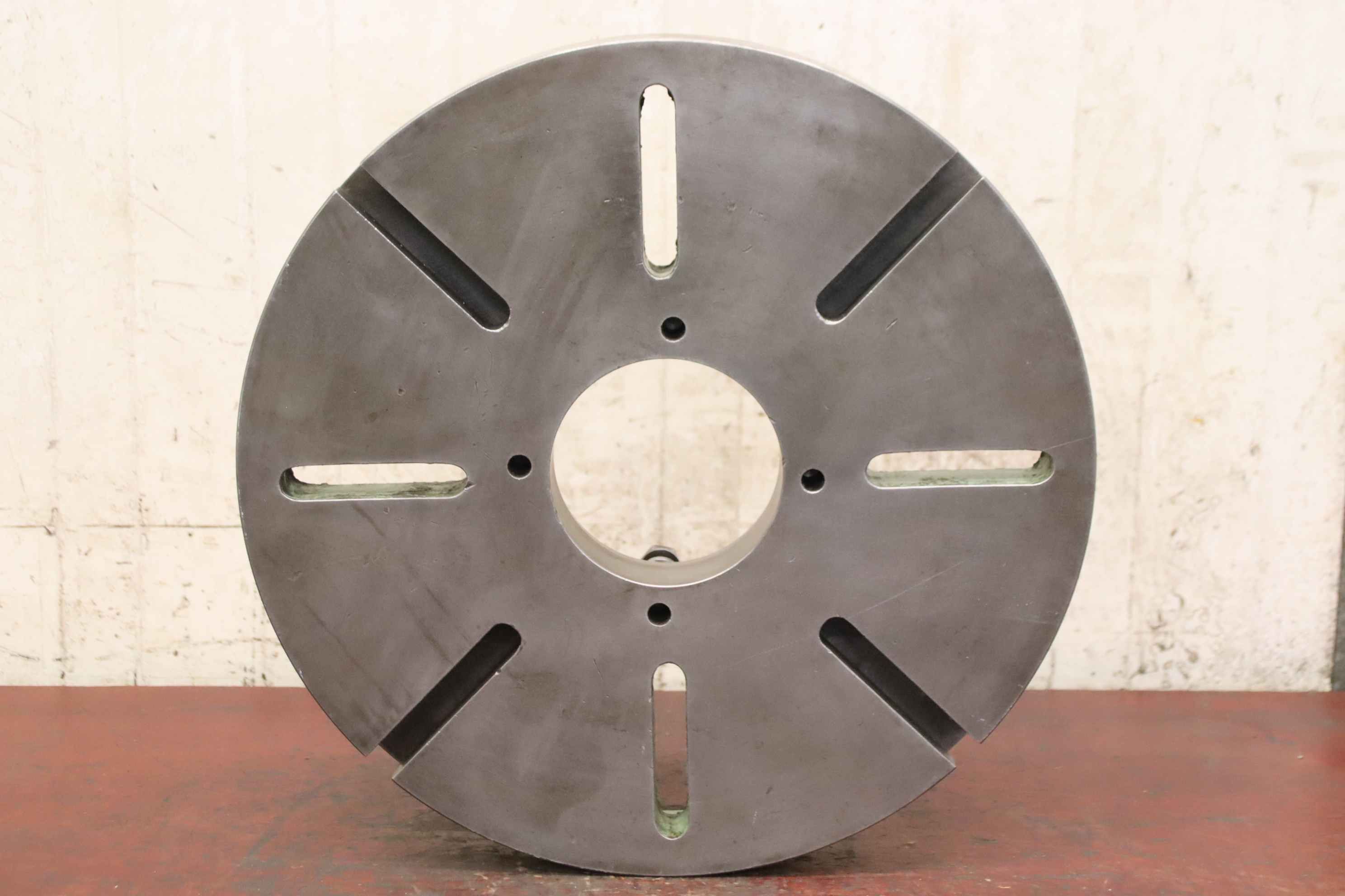 faceplate, faceplate chuck, four-jaw chuck, facing chuck-Faceplate: chuck size Ø 500 mm-Mounting: Short taper 8 (Ø 136-139 mm)-Bolt circle: Ø 173 mm-Through hole: Ø mm-Groove width: 20 mm-Dimensions: Ø 500 x 120 mm-Weight: 58 kg