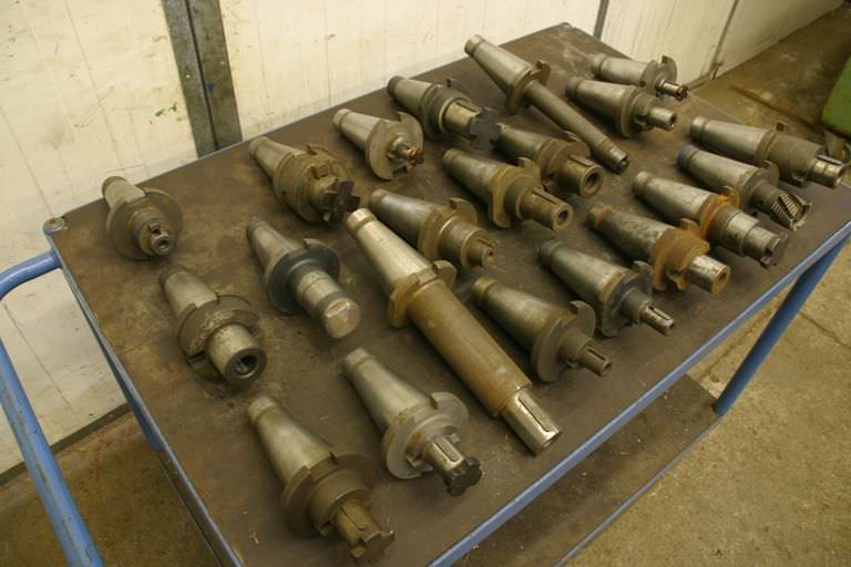 Tool holder, milling tool holder -Number: 21x SK50 recording -Receptacles: Ø 22-50 mm -Drill chucks: Surface clamping chucks, reducing sleeves, cutter heads, end mills -Sale: only complete set -Weight: 88 kg
