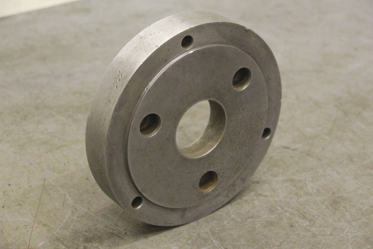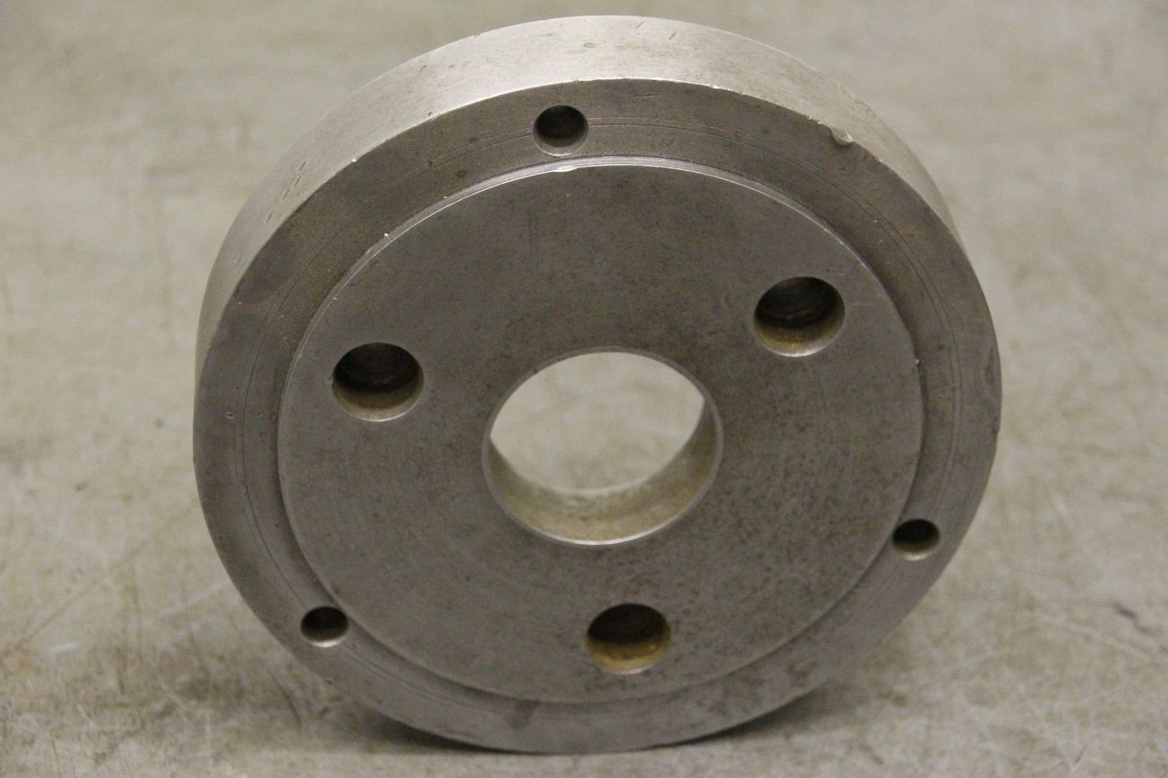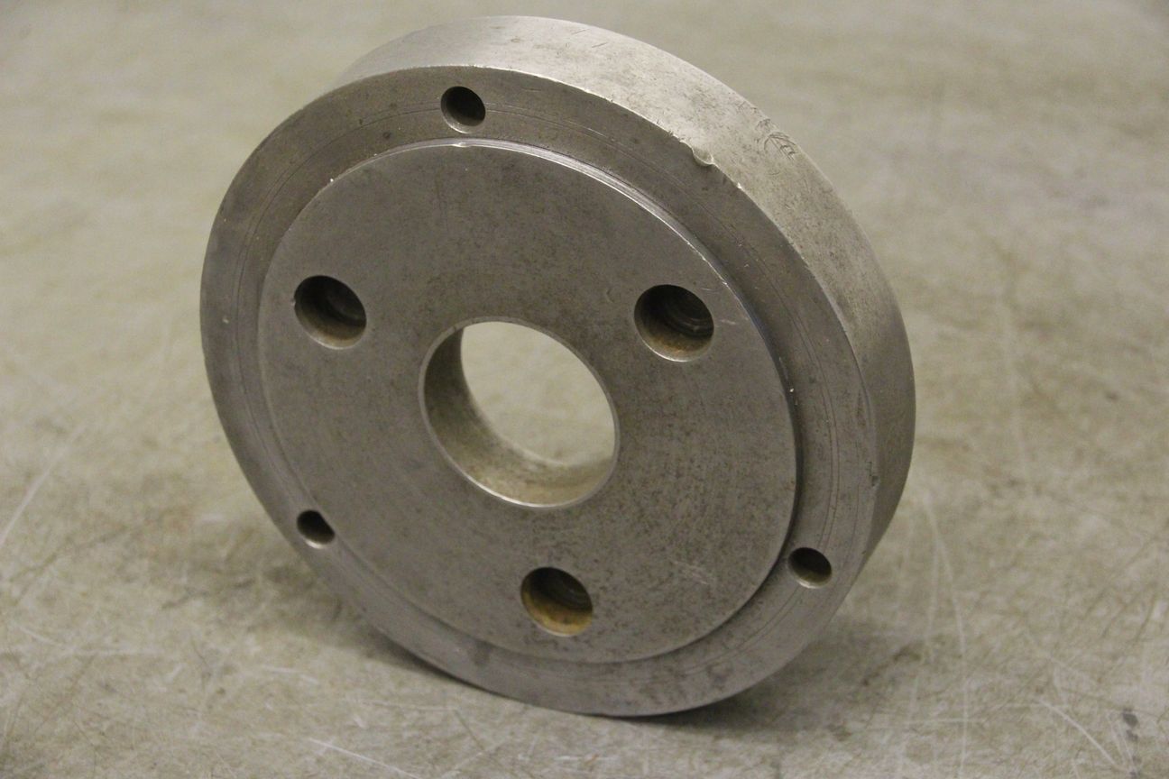 Chuck flange, flange mount, lathe chuck flange, driving flange-Chuck flange for: three-jaw chuck, four-jaw chuck, face plate-Outer diameter: 213 mm-Inside diameter: 39 mm-Dimensions: Ø 213/H 34 mm-Weight: 7.9 kg
