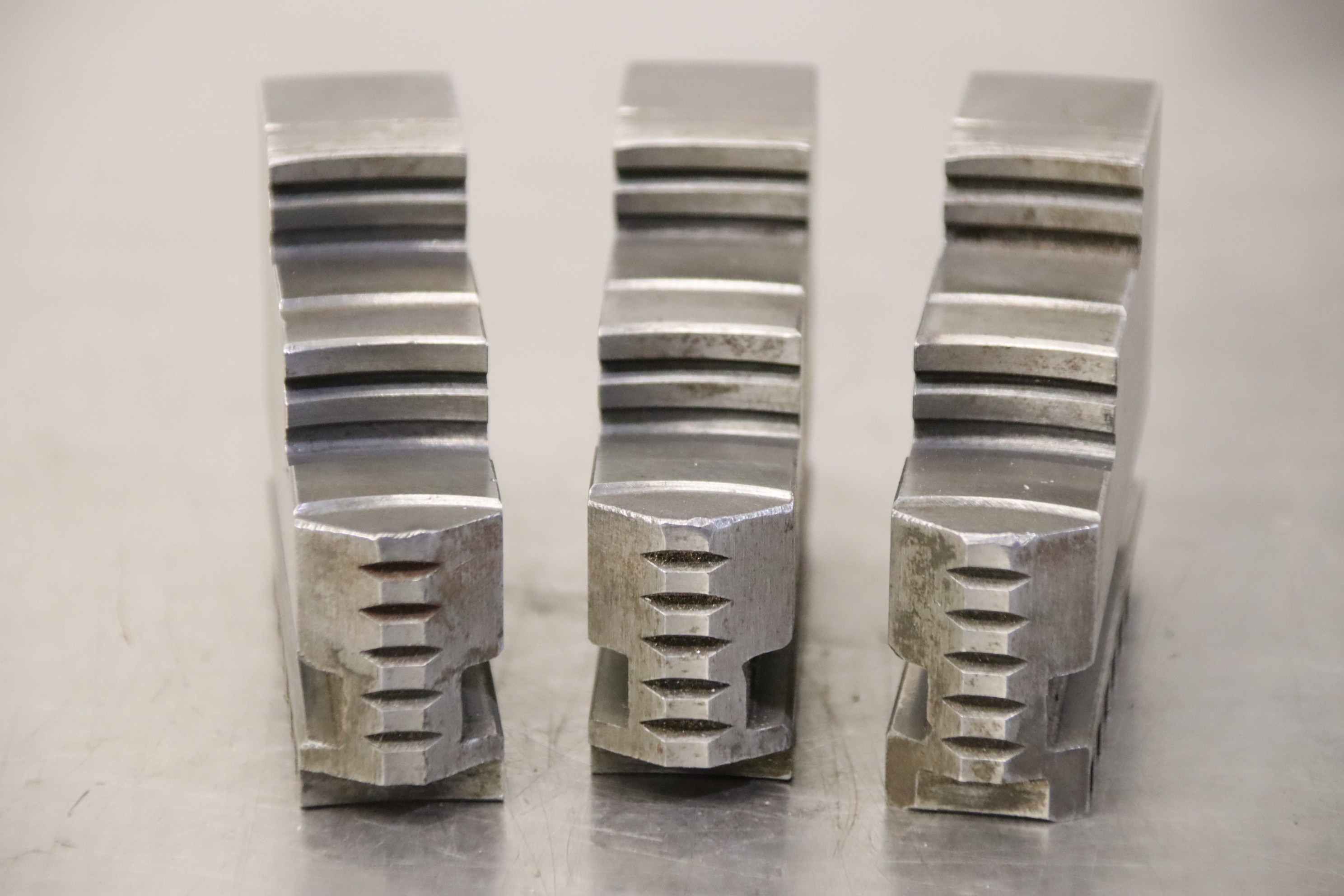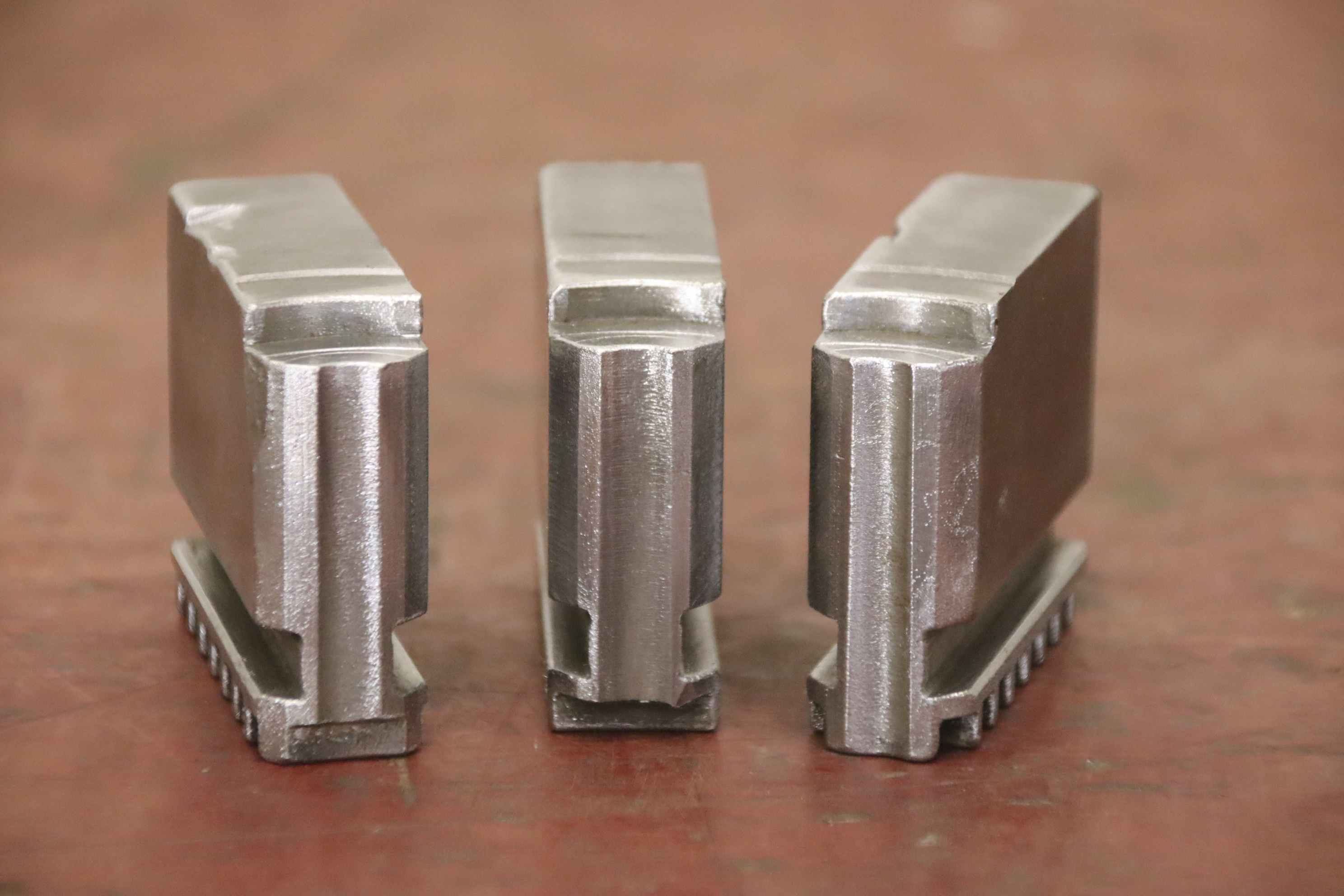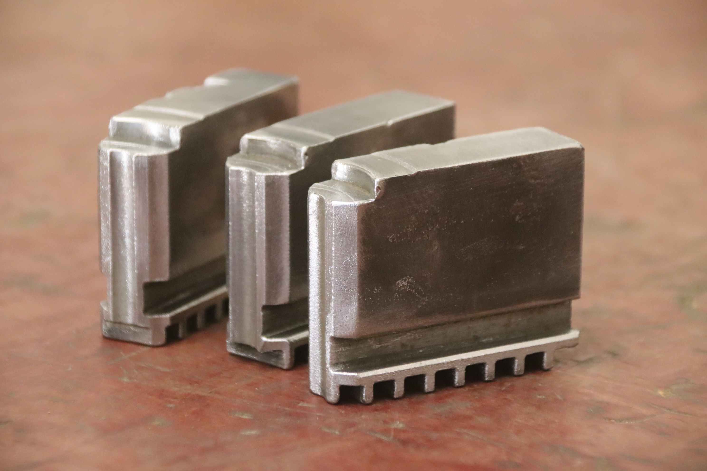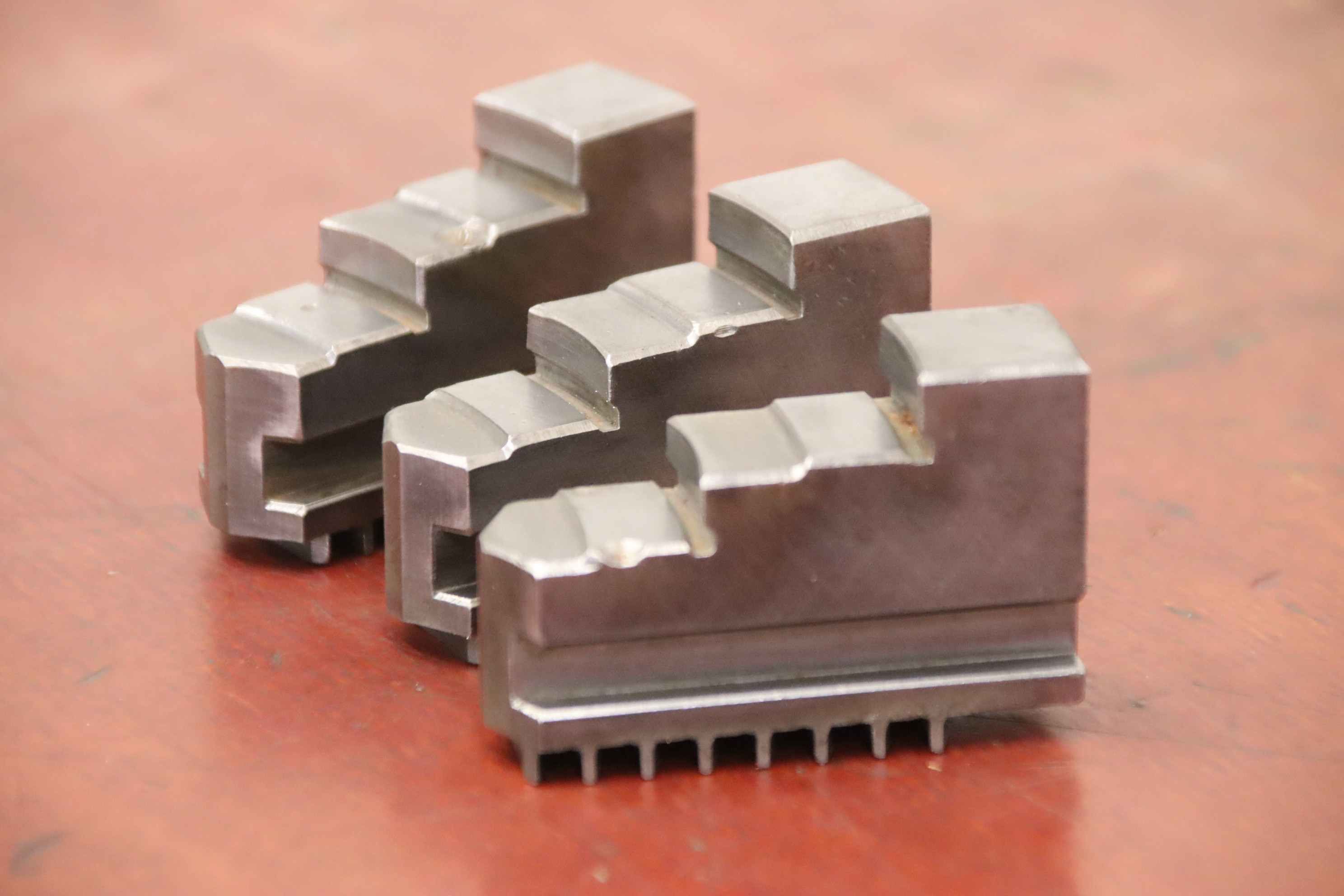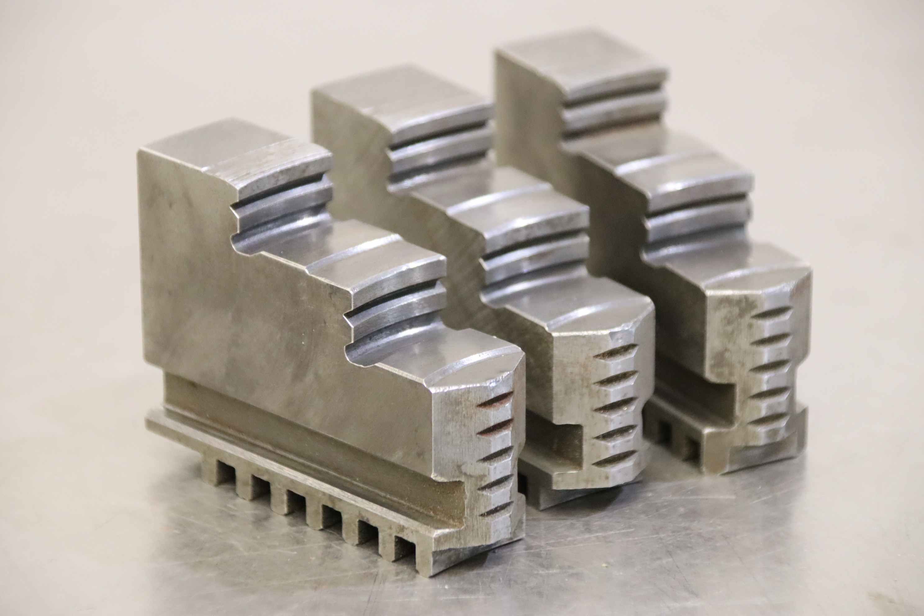 Interchangeable jaws, top jaws, three-jaw chuck, segment jaws, clamping jaws, stepped block jaws, stepped top jaws, block jaws, base jaws, 4-jaw set-Top jaws: Jaw set for three-jaw lathe chucks, hard-Jaw width: 20 mm-Dimensions: see photo techn. drawing-Total dimensions: 70/60/H55 mm-Total weight: 1,2 kg