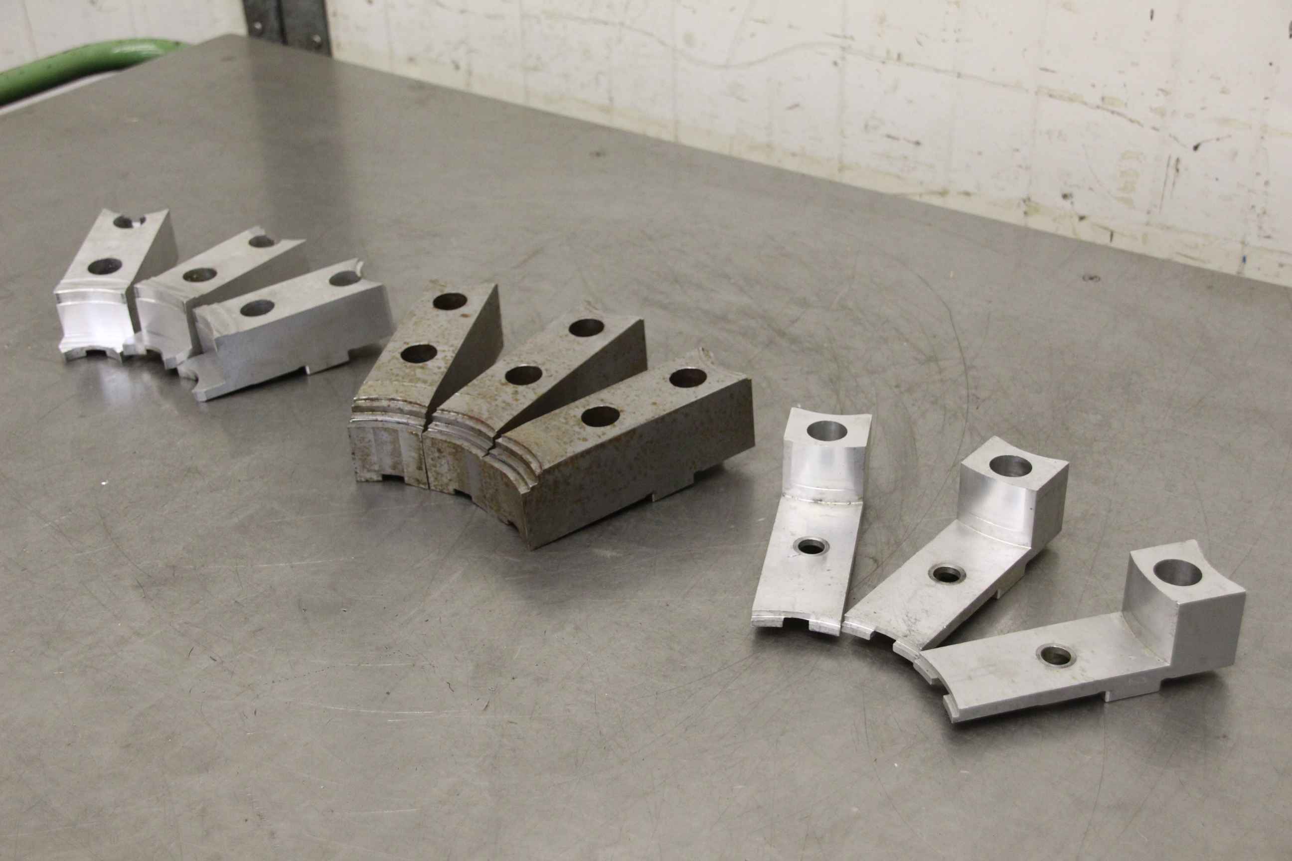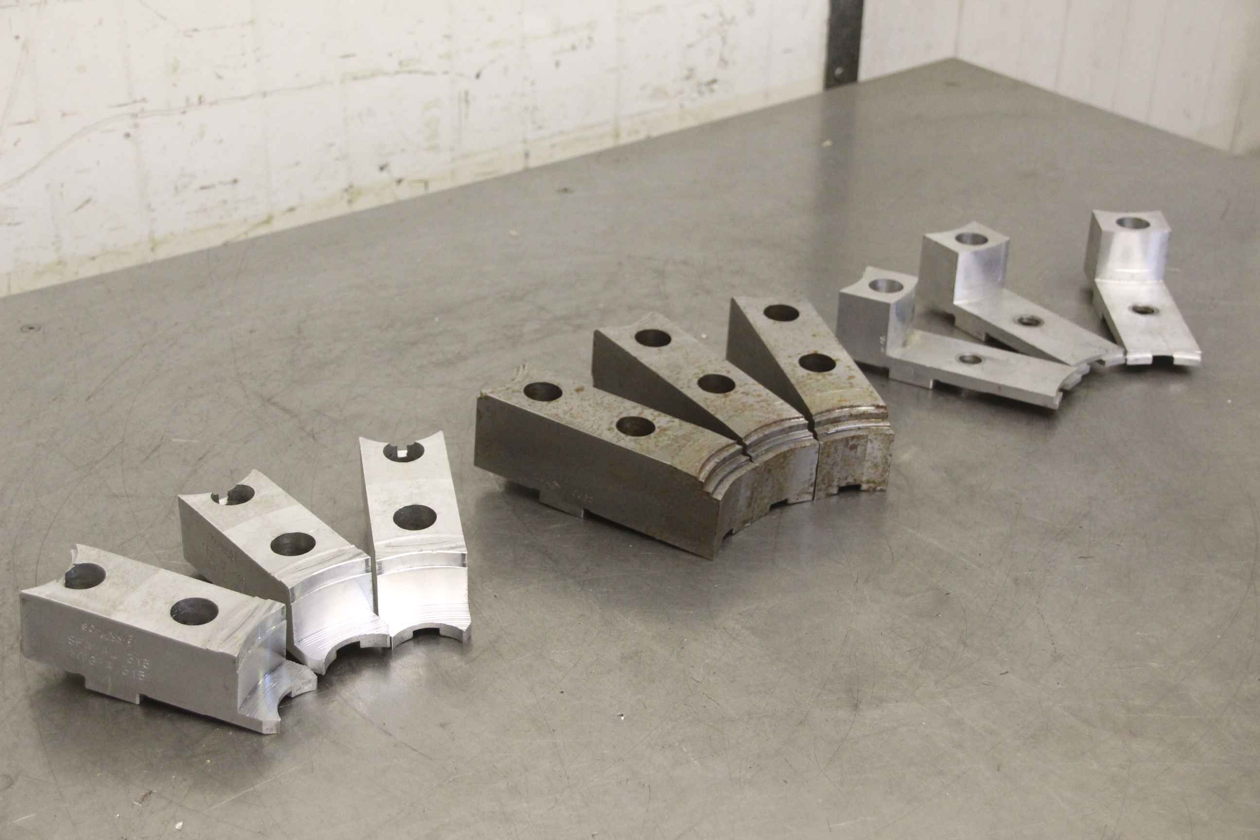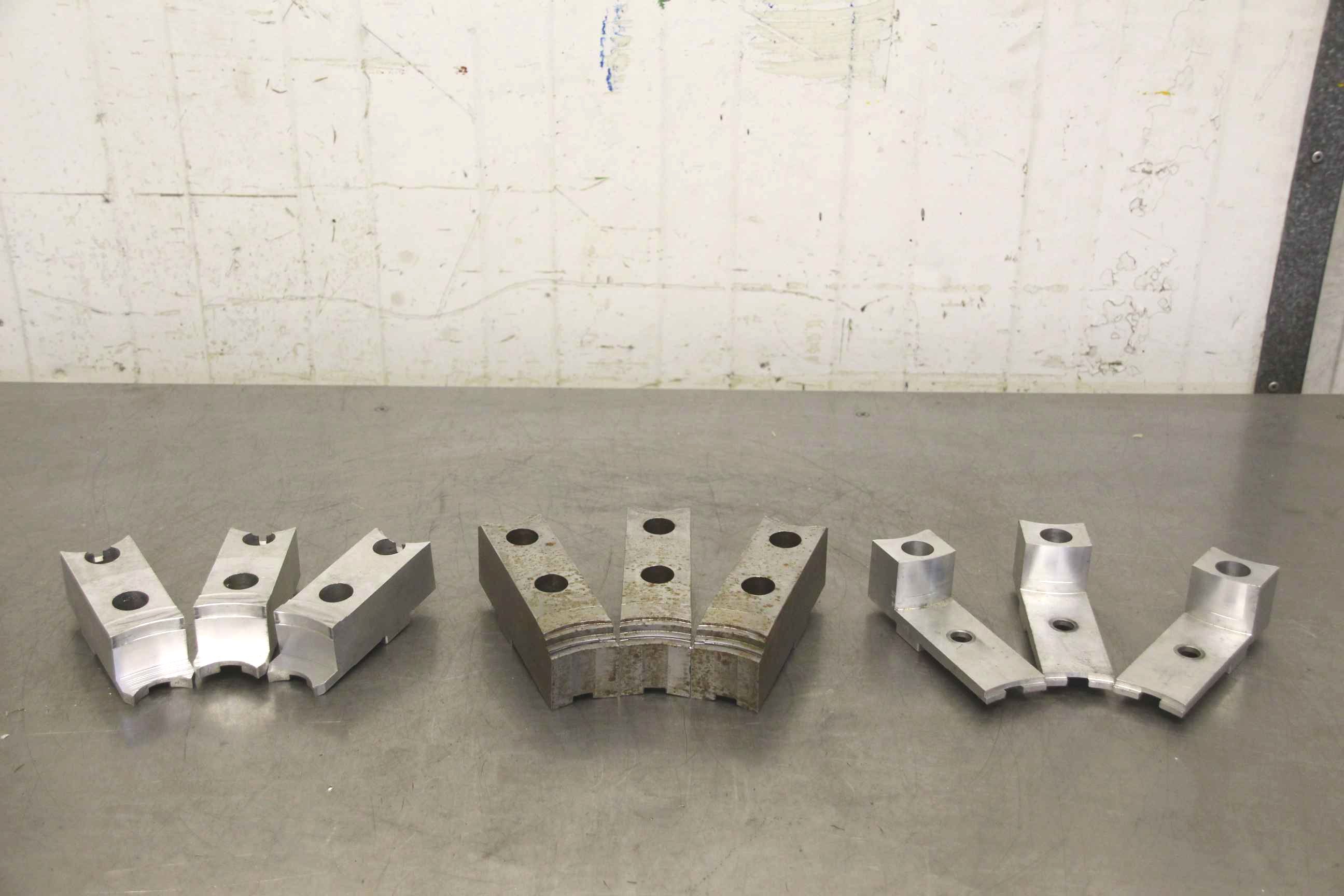 Interchangeable jaws, top jaws, three-jaw chucks, segment jaws -Manufacturer: Schunk, Top jaws for power chucks, 3 sets -Type: SFA-AL 315, see photos -Hole spacing: 54 mm -Price/Sale: only complete set -Overall dimensions: 160/215/H90 mm -Weight: 6.8 kg