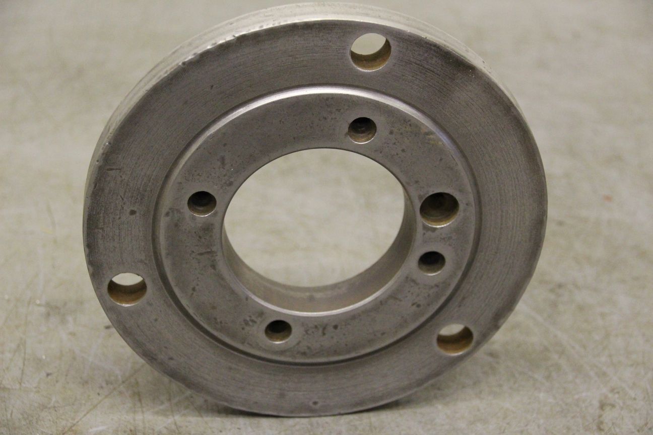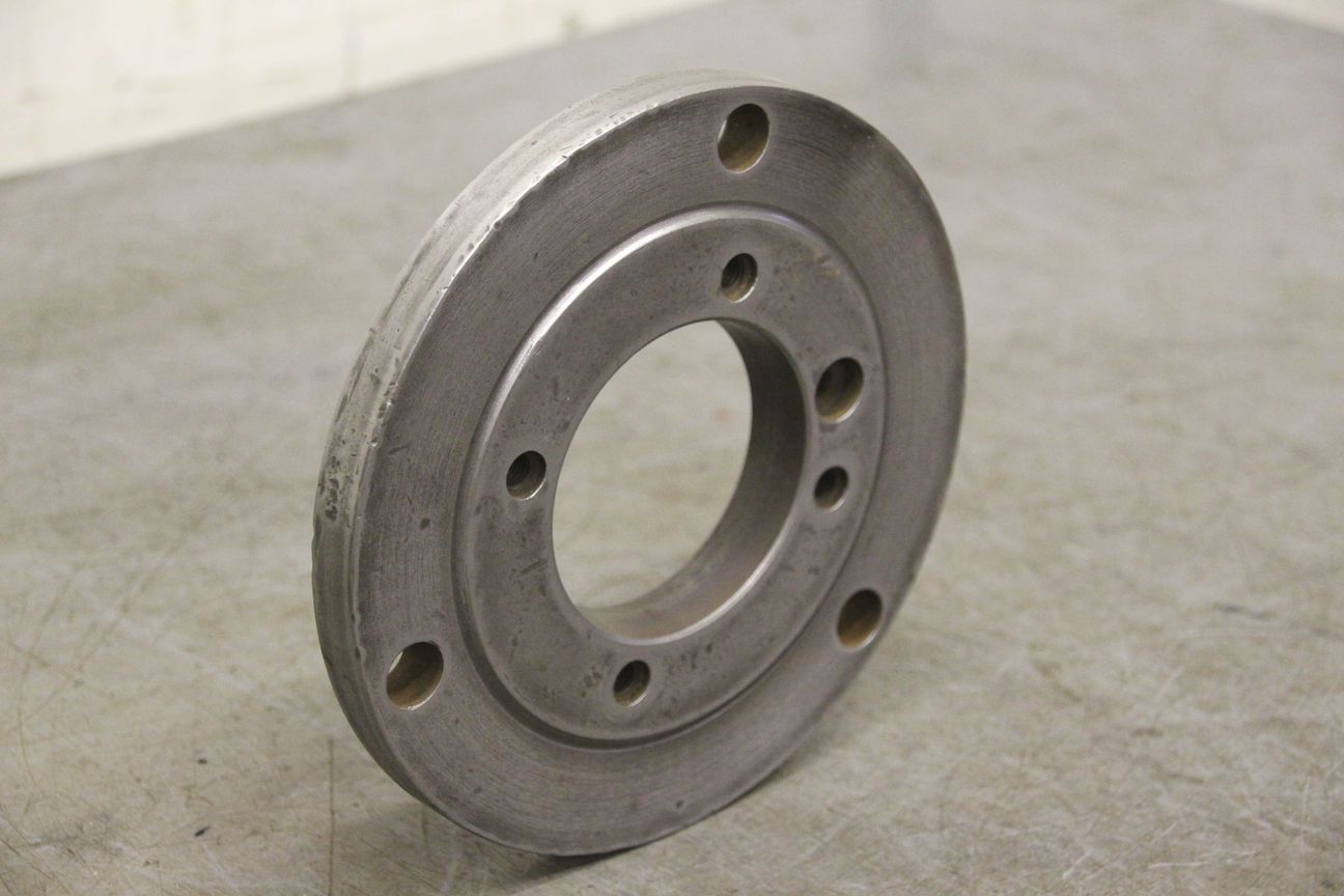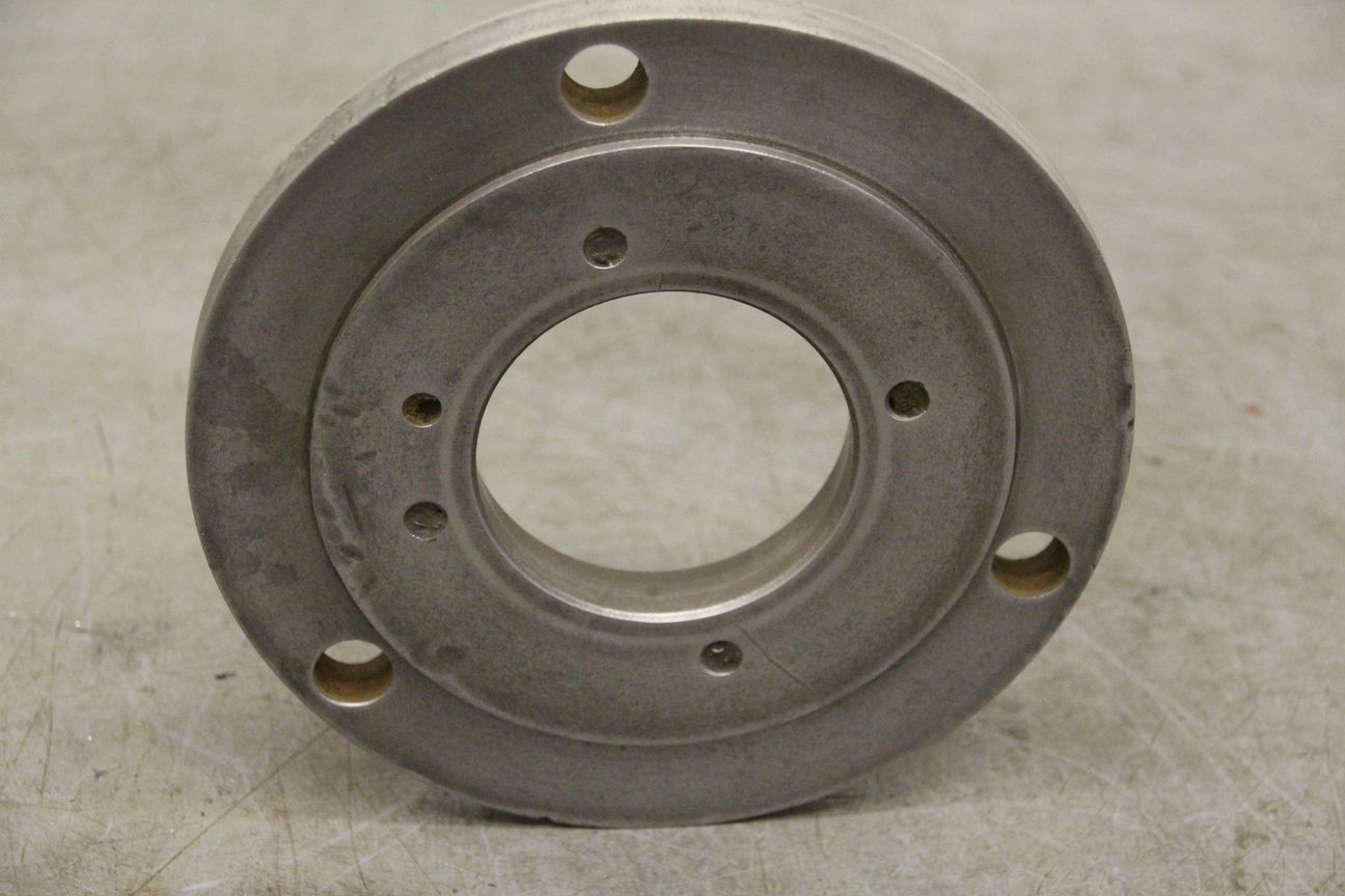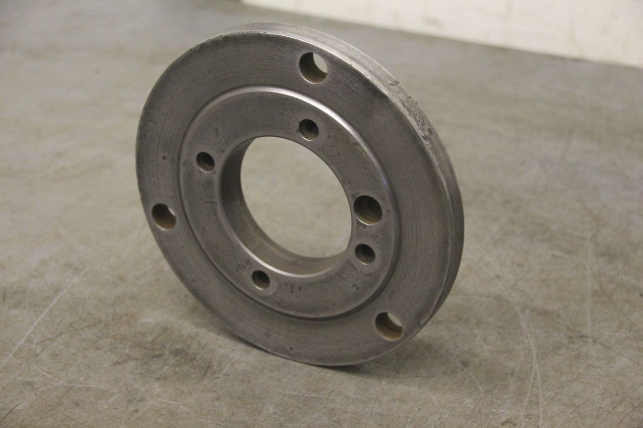 Chuck flange, flange mount, lathe chuck flange, driving flange-Chuck flange for: three-jaw chuck, four-jaw chuck, face plate-Outer diameter: 198 mm-Hole circle: Ø 105/4 x M10-Hole circle: Ø 172/Ø 16 mm-Dimensions: Ø 198/H21 mm-Weight: 3.3 kg