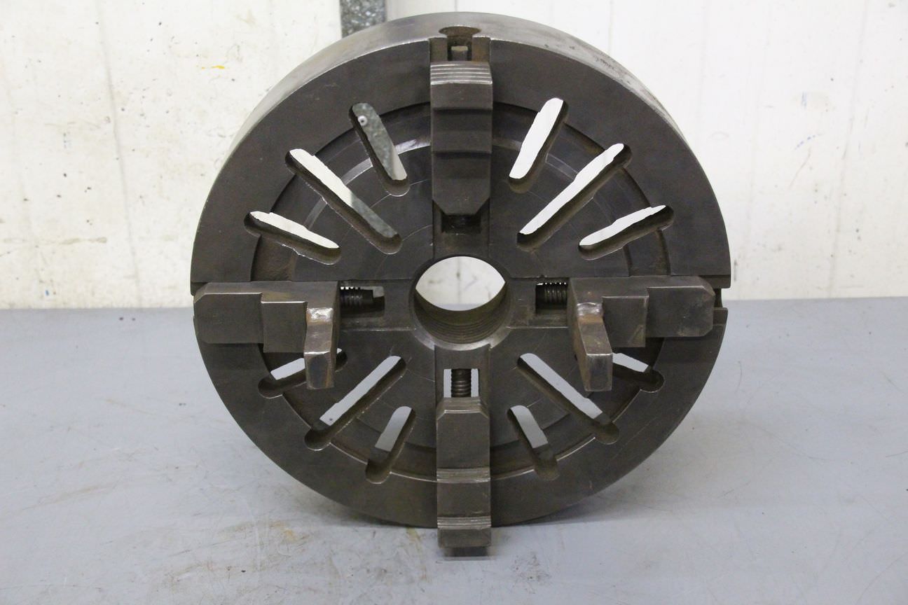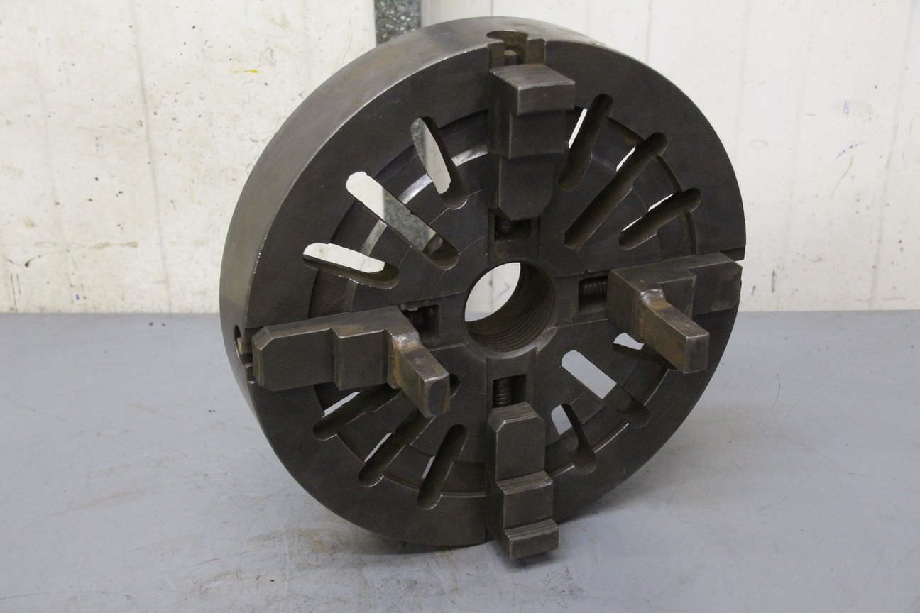 Faceplate, faceplate chuck, four-jaw chuck -Mouth size: Ø 355 mm -Internal thread diameter: 69 mm -Weight: 24 kg