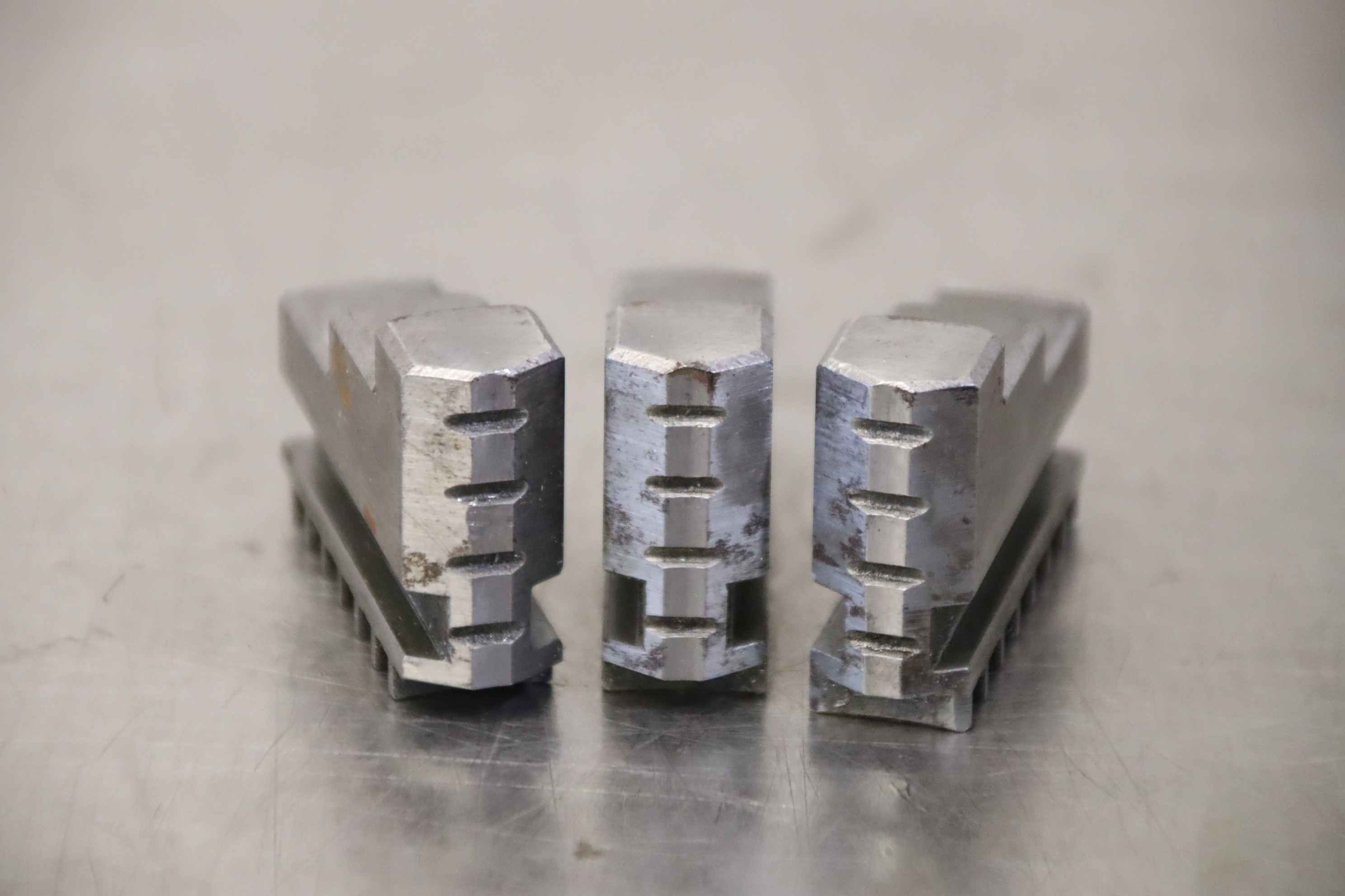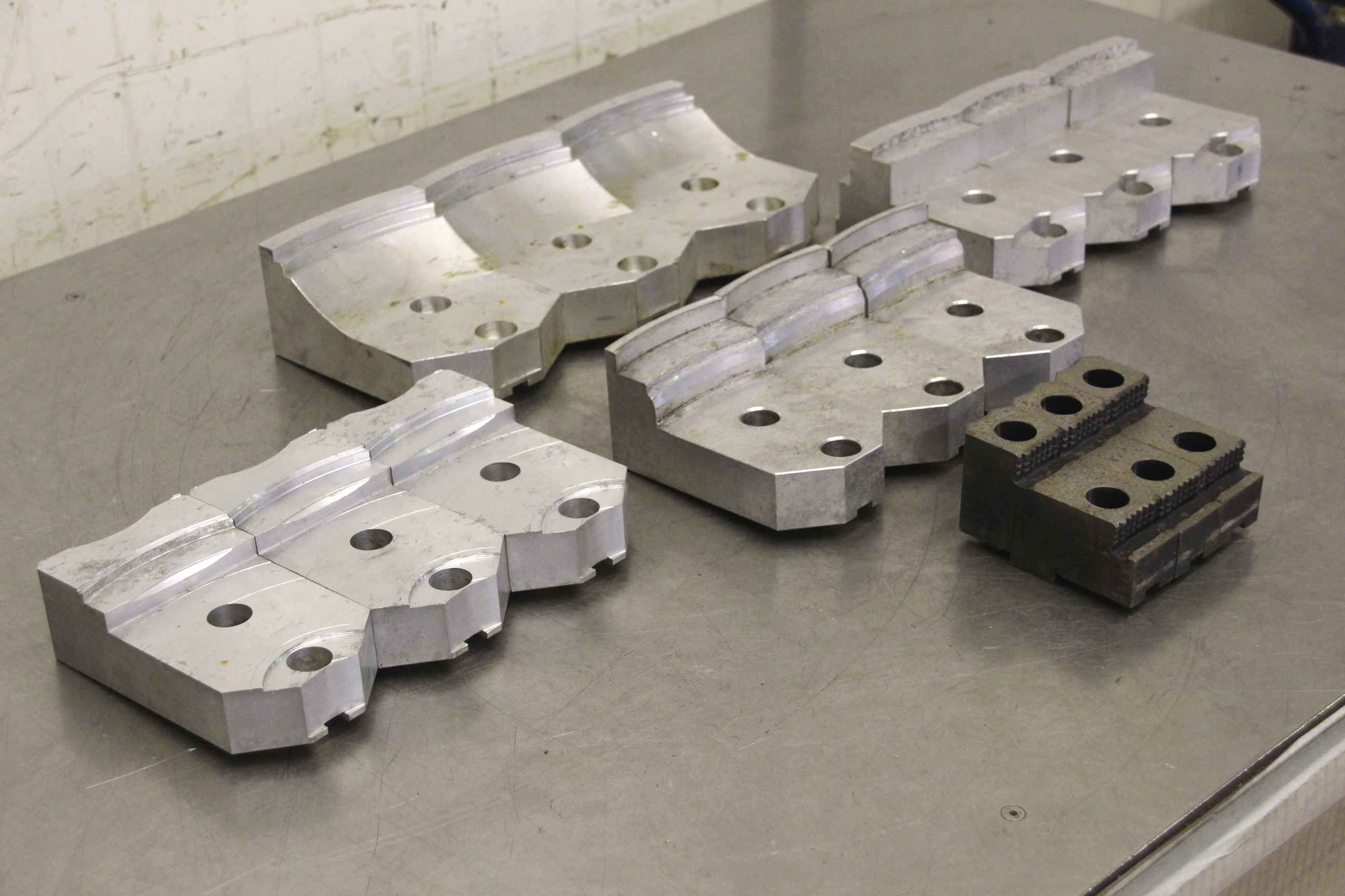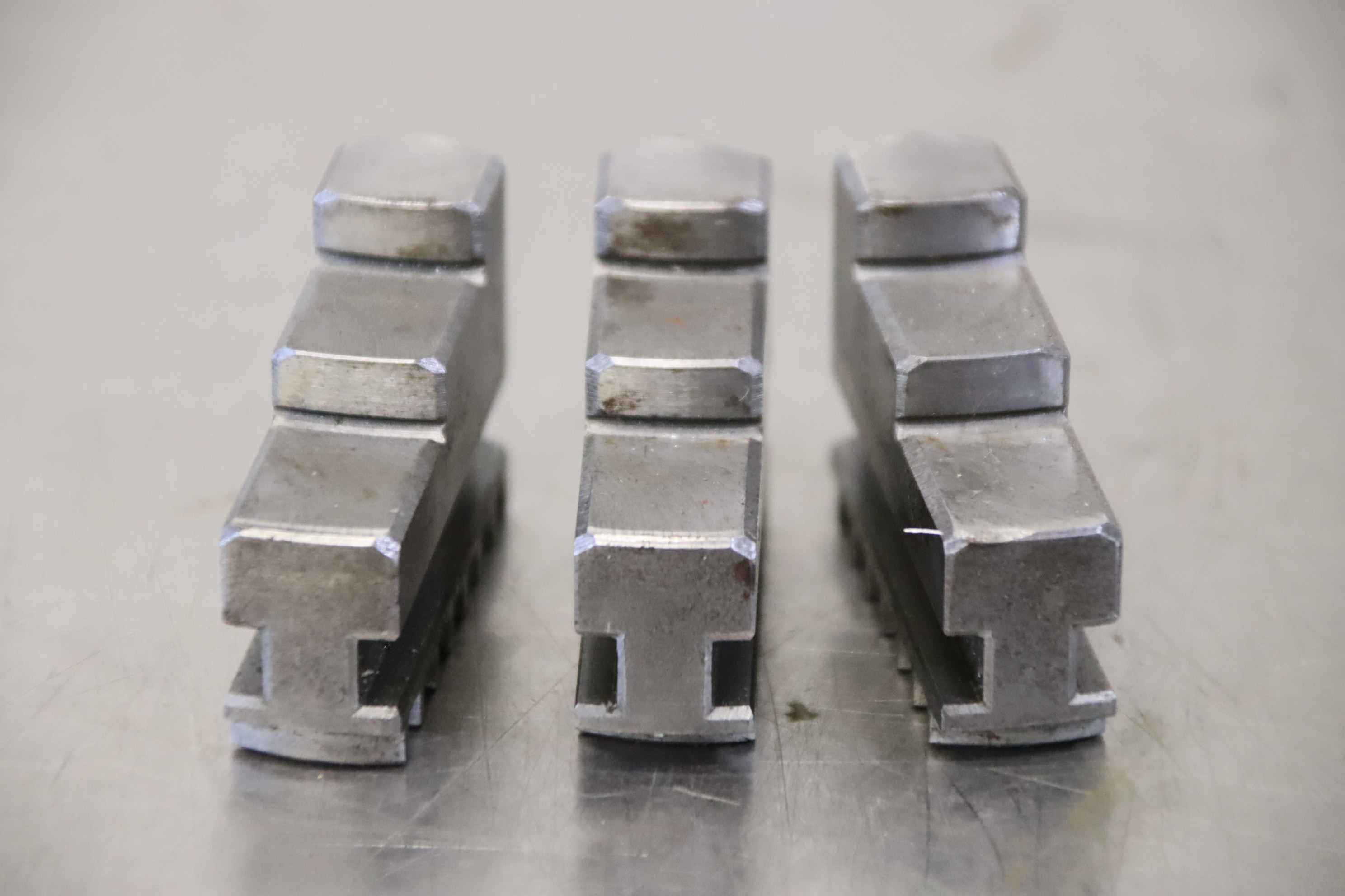 Interchangeable jaws, top jaws, three-jaw chucks, segment jaws-Top jaws: for power chucks-4 set: soft jaws, aluminum-1 movement: hard jaws-Hole spacing: 54 mm-Price/sale: only complete-Dimensions: 310/390/H110 mm-Weight: 18.7 kg